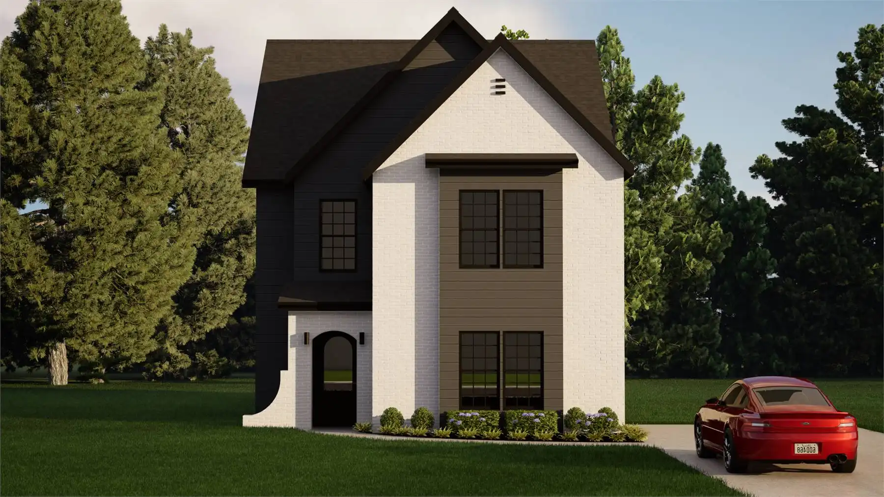 This inviting 1,771 square feet design blends comfort and functionality through a smooth, practical layout perfect for everyday family living. The kitchen features a useful combination of an island, peninsula eating bar, and walk-in pantry, giving plenty of space for meal prep and gathering. The family room sits close by for easy conversation and connection, while the dedicated dining area keeps mealtime simple and enjoyable. A first-floor home office offers flexibility for work or hobbies, and the mud room paired with the laundry room enhances daily efficiency. Upstairs, the primary bedroom includes a walk-in closet and sits separately from the secondary bedrooms for added privacy. A covered front porch welcomes guests and adds charm, and the narrow-lot design ensures the plan fits comfortably in a variety of settings. Warm, thoughtful spaces throughout make this home a wonderful match for comfortable family living.