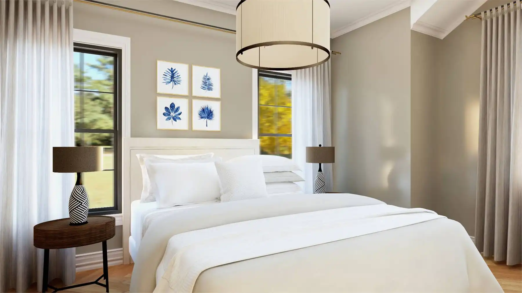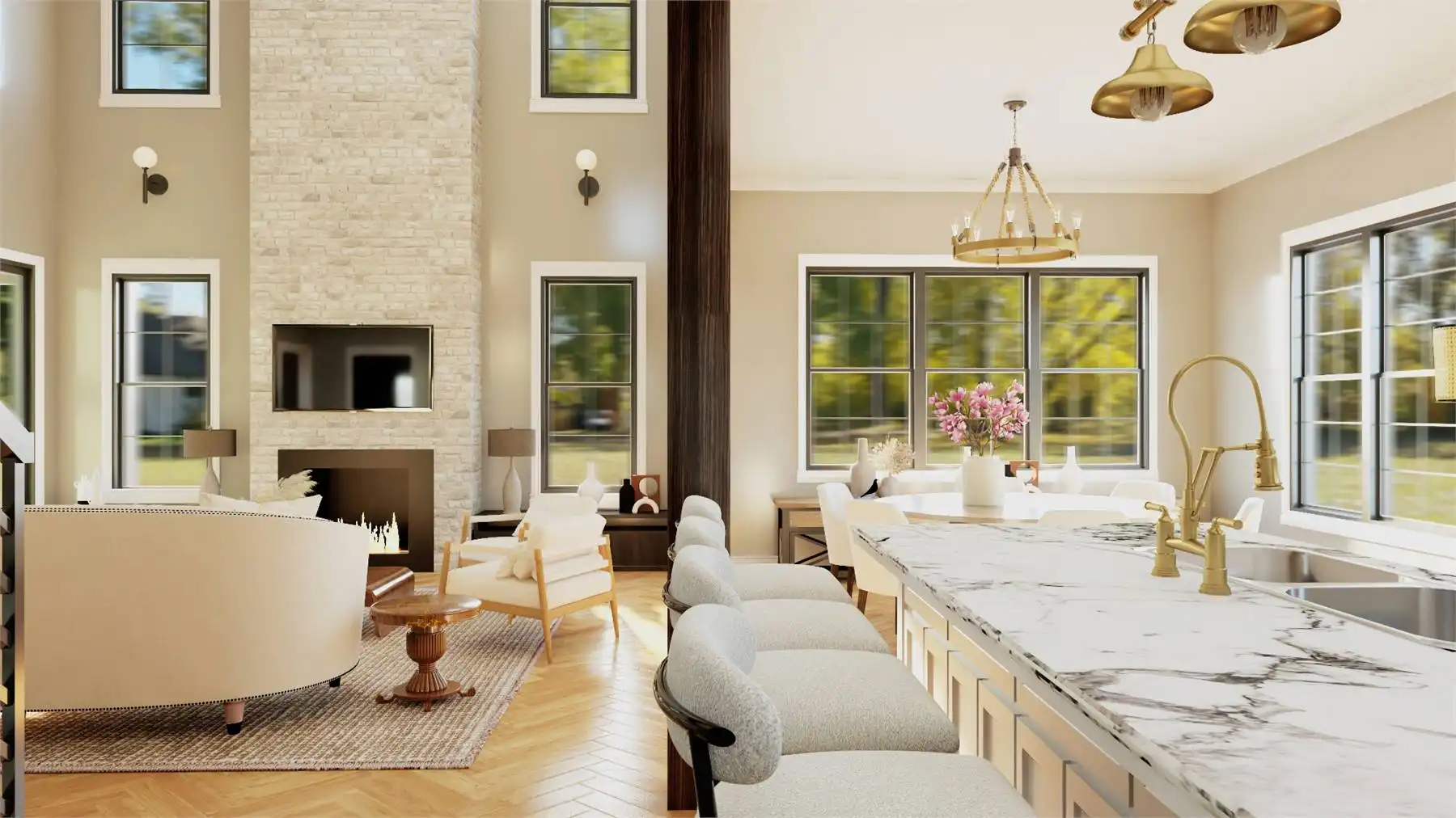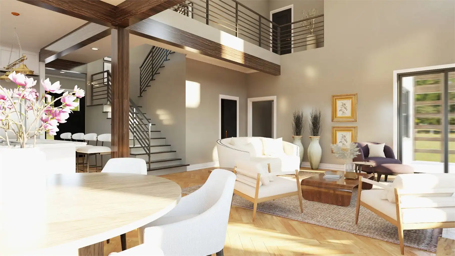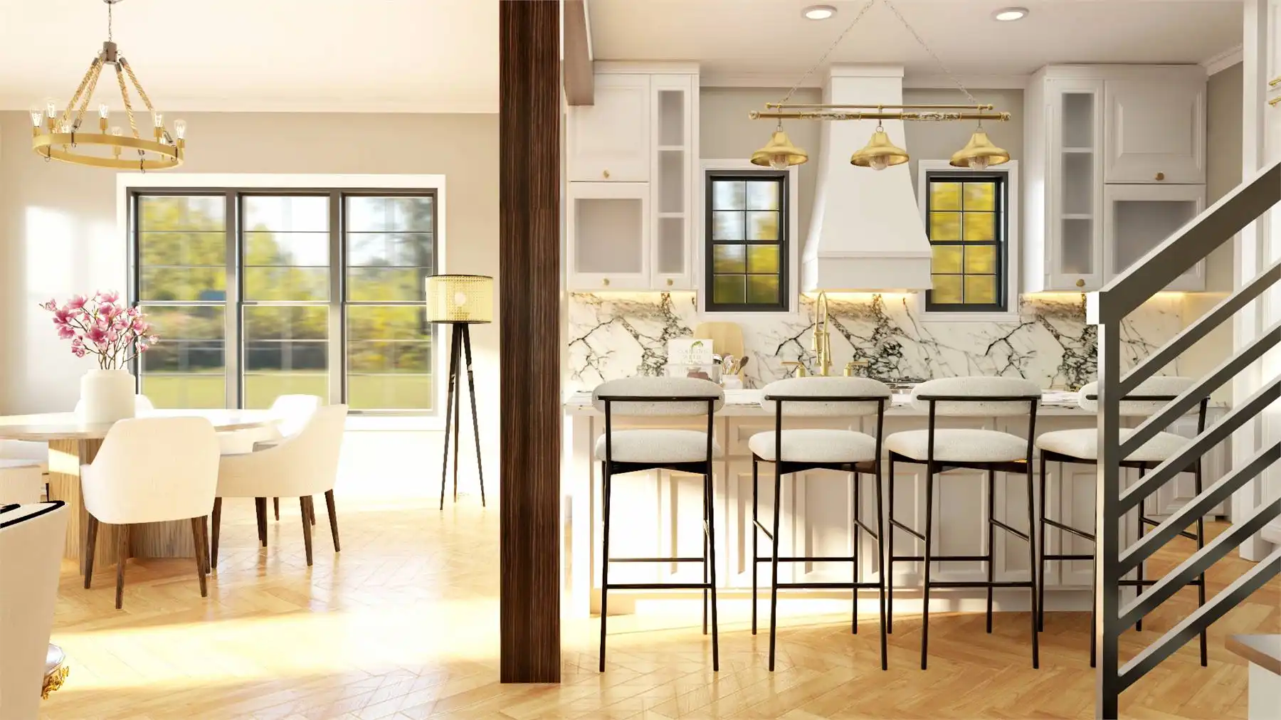 With 3,292 square feet of heated living space, this home delivers a spacious and flexible design across two thoughtfully planned levels. The foyer opens into an open floor plan where the great room and dining space flow naturally for easy entertaining. The kitchen is designed for efficiency with an island, L-shaped counters, walk-in pantry, and a casual breakfast area. Practical features like a home office, mud room, and laundry on both floors support organized daily living. The primary bedroom is located upstairs and includes a generous walk-in closet and a well-appointed bath with a separate tub and shower. Secondary bedrooms are split for privacy and comfort throughout the upper level. Covered porches extend the living space outdoors, offering welcoming areas to enjoy everyday moments.