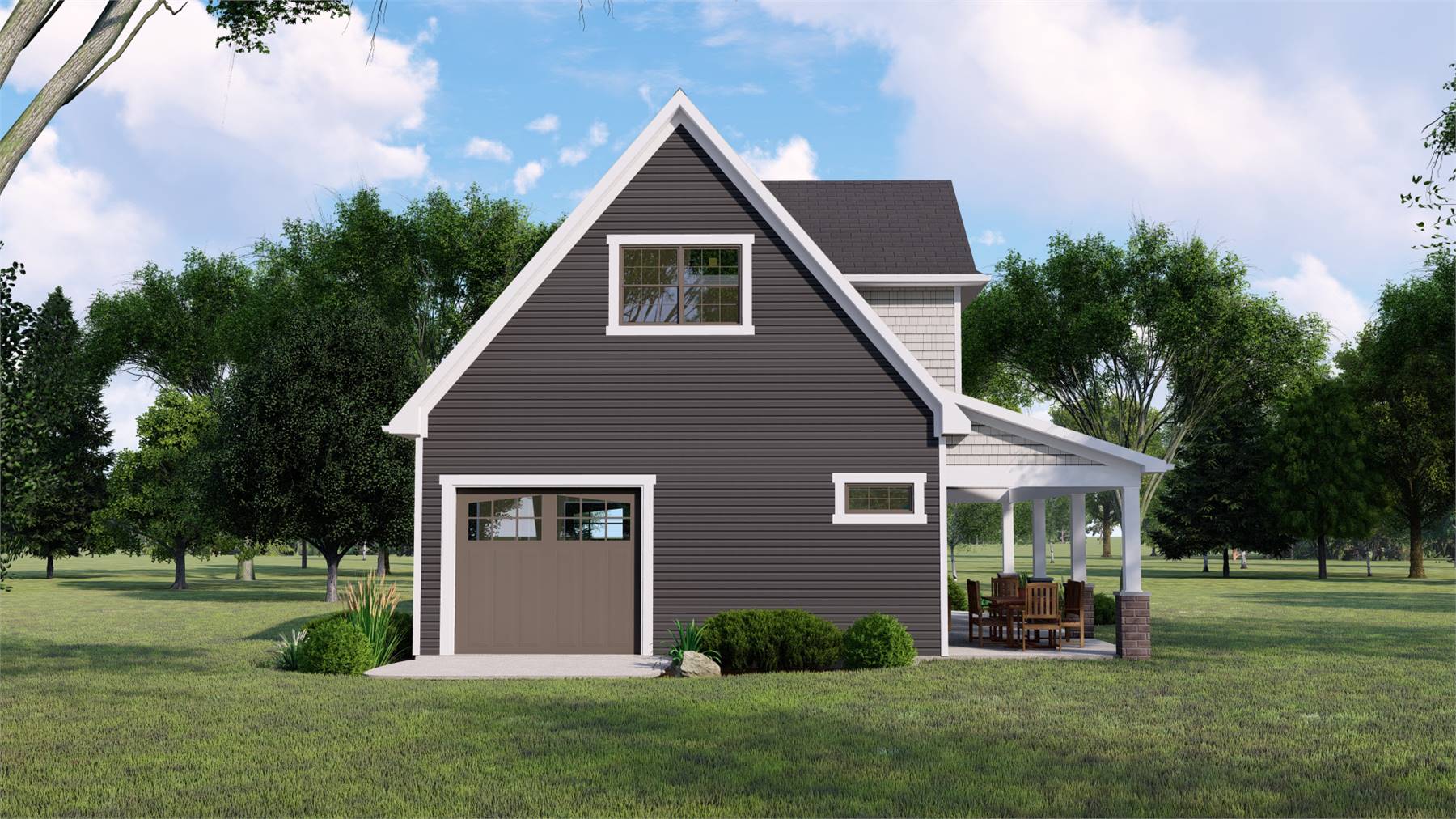 House Plan 11965 delivers smart, flexible design in a compact two-story garage layout with 1,000 square feet of usable space. The main level includes a two-car garage paired with a full bathroom, making it ideal for projects, overflow parking, or outdoor entertaining. A covered porch adds charm and creates a natural extension of the space for relaxing or hosting. The second floor features a generous bonus room that can be tailored to fit your needs, from guest accommodations to a hobby or studio space, or even a private retreat away from the main home. With its adaptable layout and efficient footprint, this plan is a practical solution for homeowners looking to expand usable space without a full home addition.