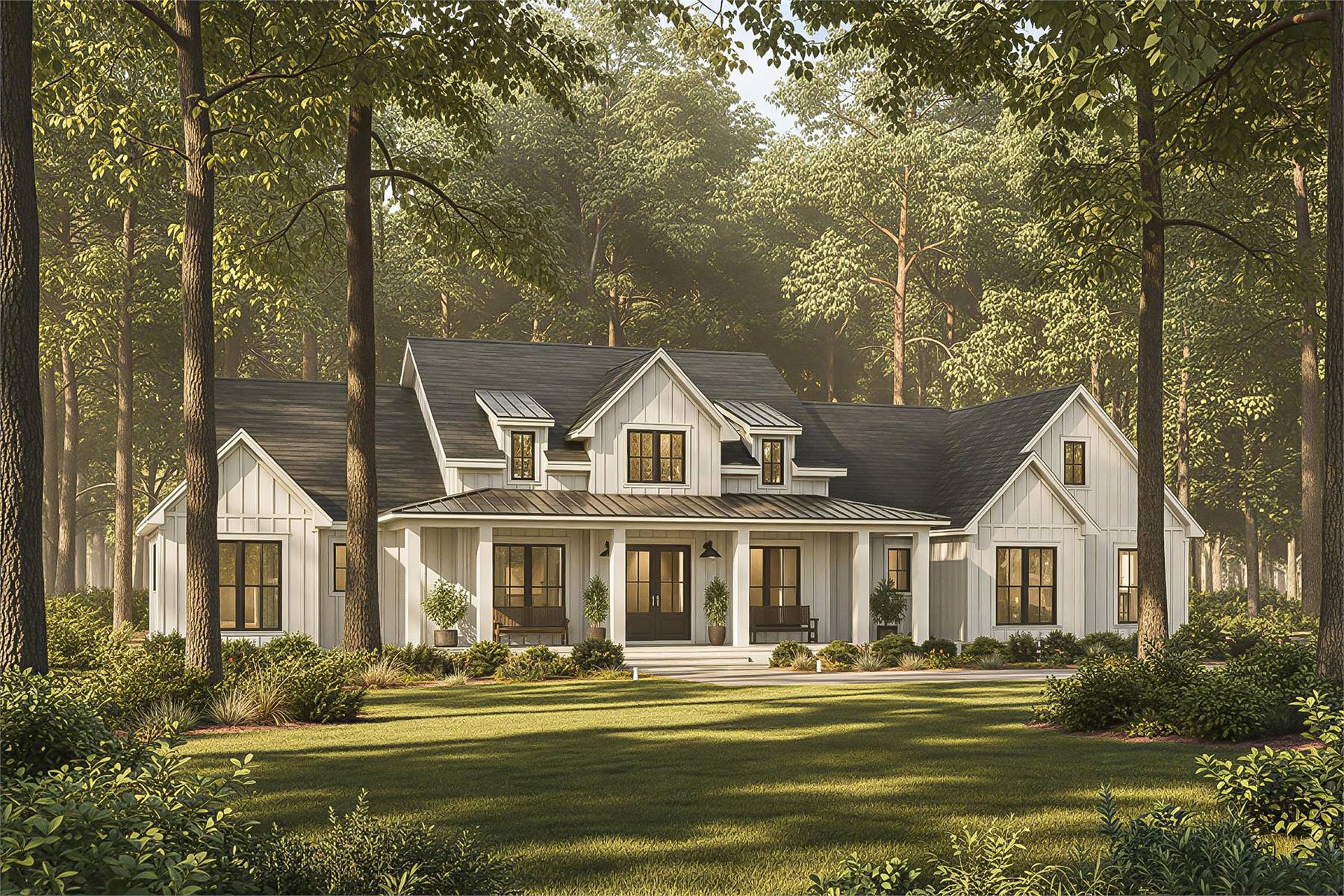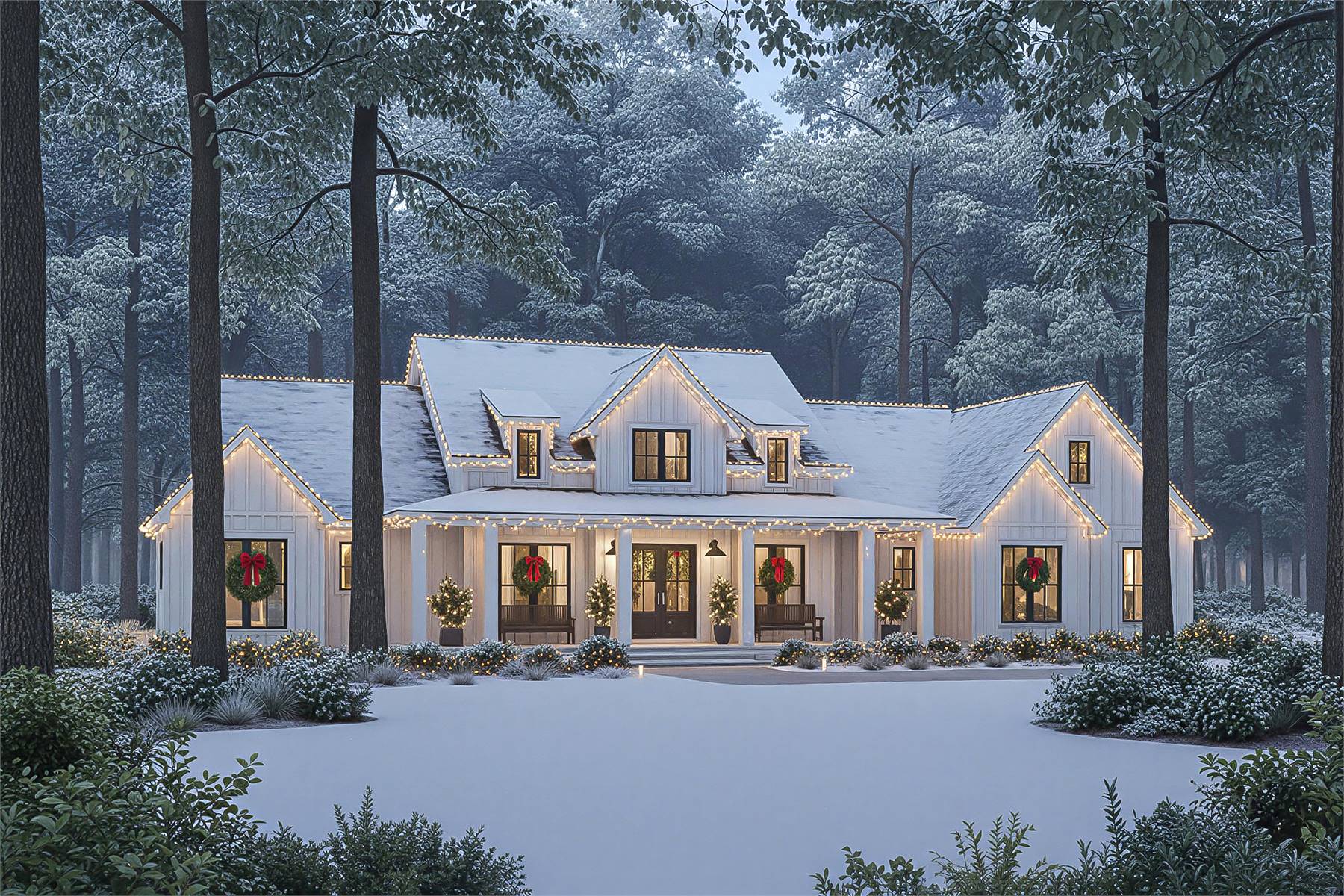 Designed with 2,379 square feet of heated space, this home offers a layout that blends open gathering areas with quiet, restful corners. The vaulted great room creates an impressive central space that connects effortlessly to the dining room and the spacious kitchen, which includes a walk-in pantry, butler’s pantry, and seating at the peninsula. A luxurious main floor primary suite features a vaulted ceiling, double vanity, and generous walk-in closet, giving it a serene retreat-like feel. Split bedrooms ensure everyone has their own comfortable space, while the foyer, mud room, and home office bring extra convenience to the daily routine. Outdoor living areas include a covered front porch, covered rear porch, and a full outdoor kitchen, making the home ideal for year-round enjoyment. With abundant storage and carefully planned features, this plan delivers warmth, flexibility, and lasting comfort.