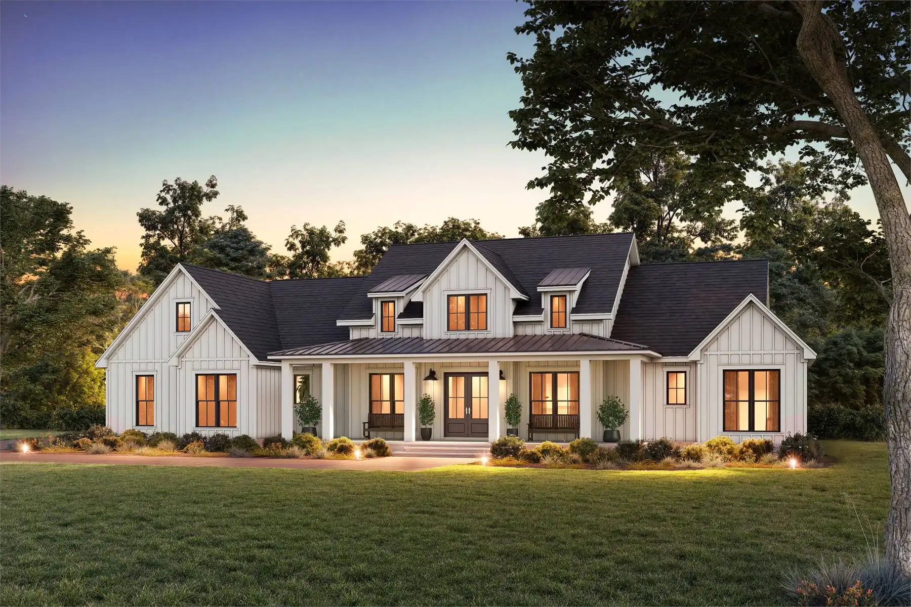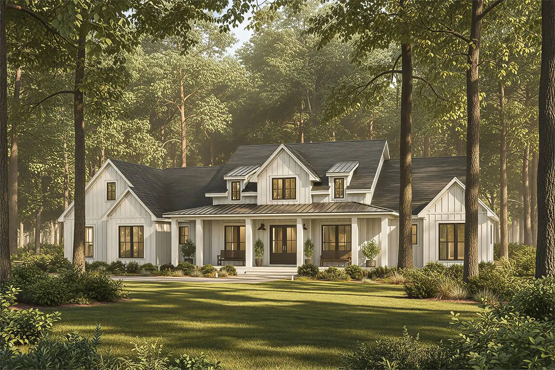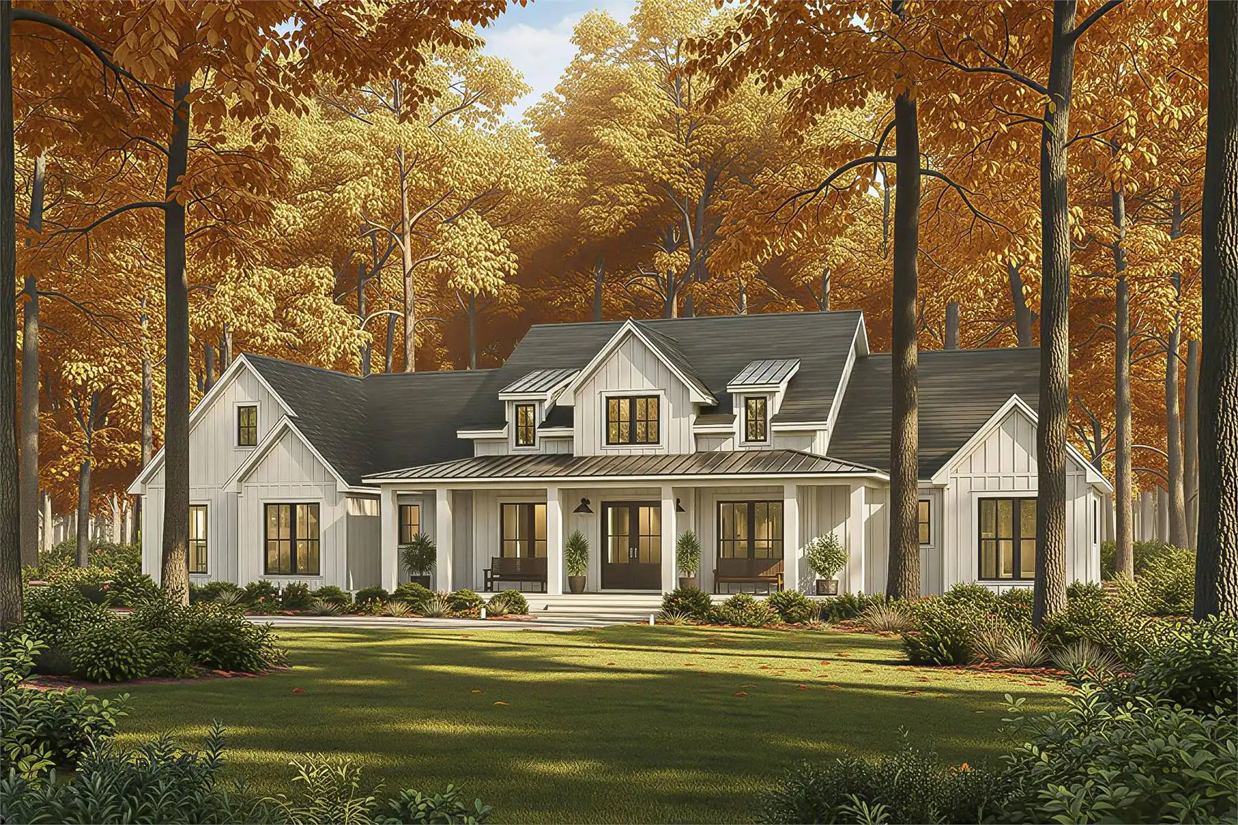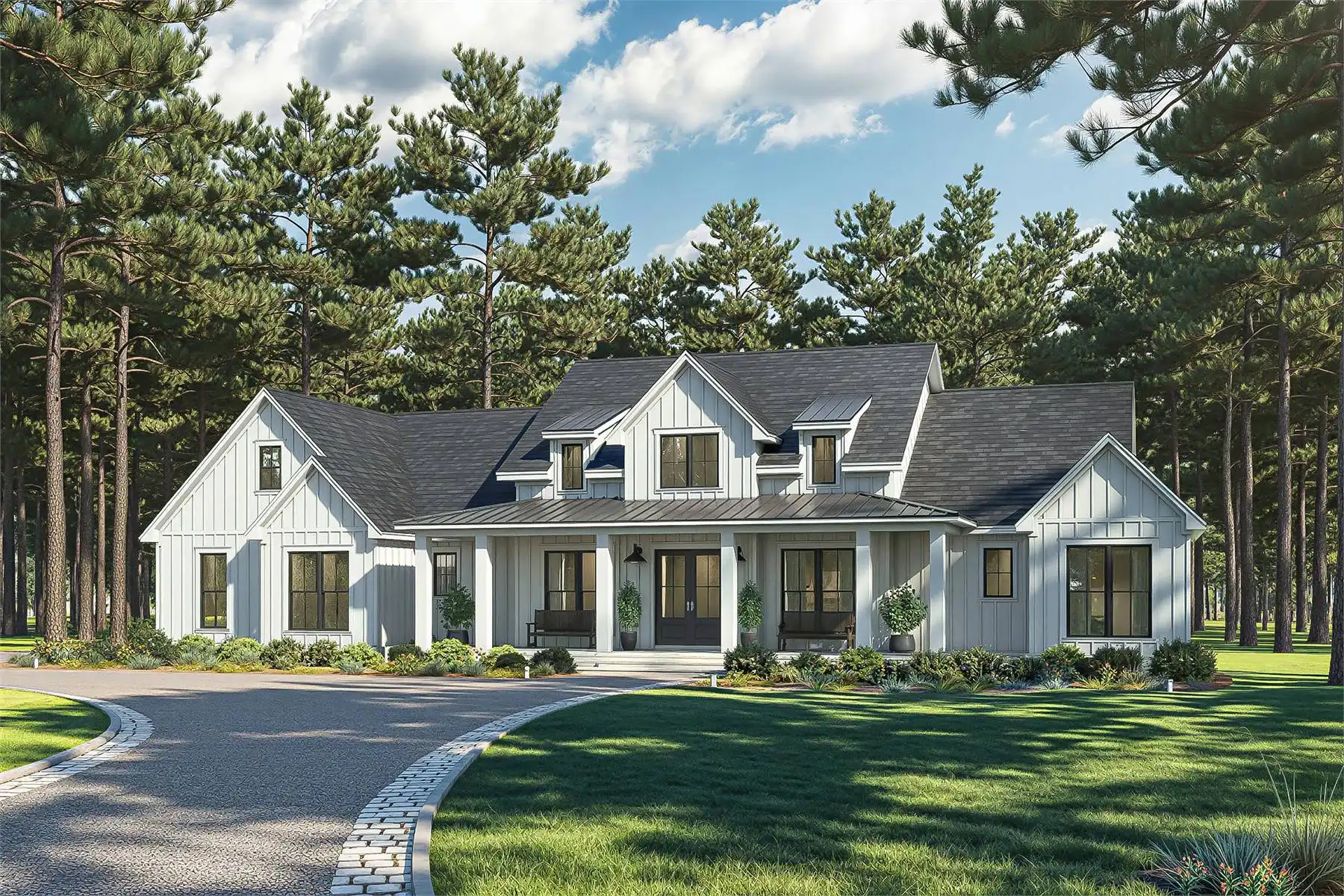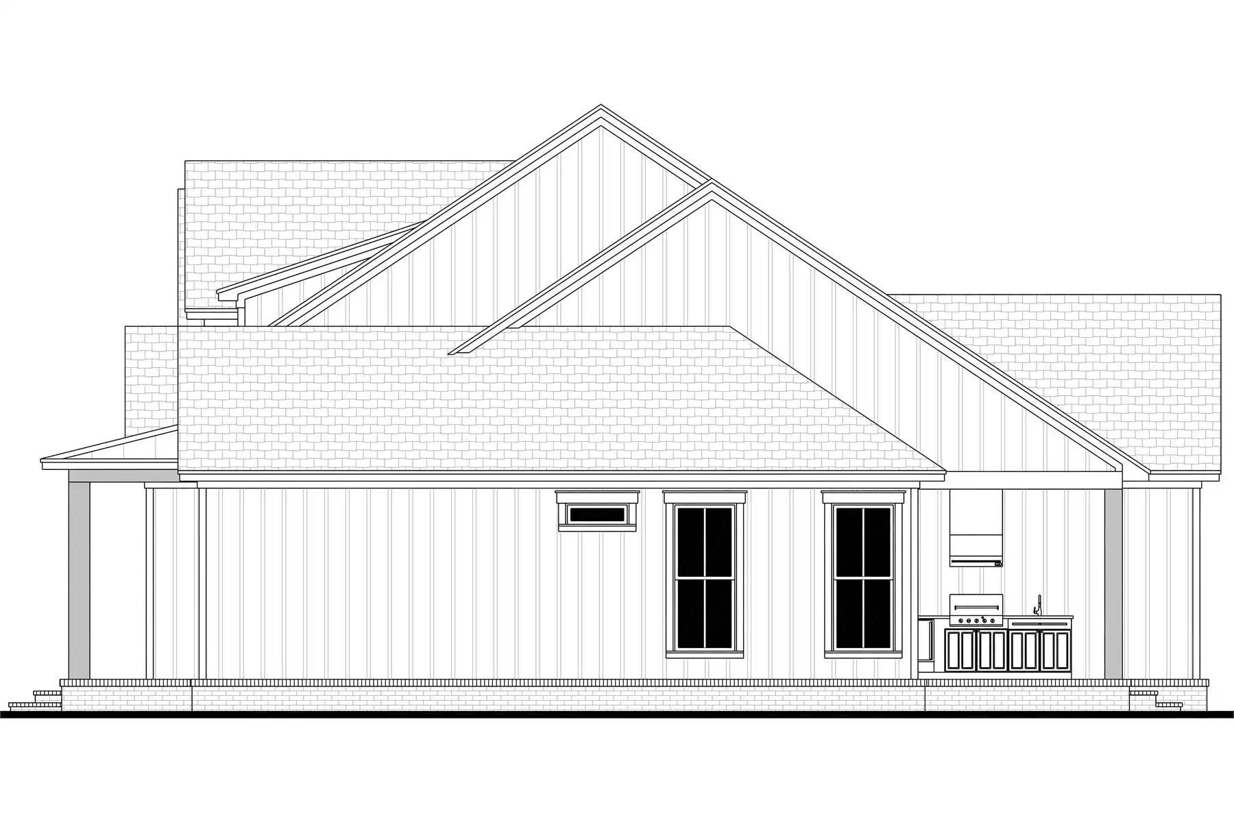 Designed with 2,379 square feet of heated space, this home offers a layout that blends open gathering areas with quiet, restful corners. The vaulted great room creates an impressive central space that connects effortlessly to the dining room and the spacious kitchen, which includes a walk-in pantry, butler’s pantry, and seating at the peninsula. A luxurious main floor primary suite features a vaulted ceiling, double vanity, and generous walk-in closet, giving it a serene retreat-like feel. Split bedrooms ensure everyone has their own comfortable space, while the foyer, mud room, and home office bring extra convenience to the daily routine. Outdoor living areas include a covered front porch, covered rear porch, and a full outdoor kitchen, making the home ideal for year-round enjoyment. With abundant storage and carefully planned features, this plan delivers warmth, flexibility, and lasting comfort.