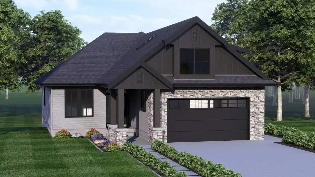 With 2,076 heated square foot, this home balances open gathering spaces with private bedroom areas for both family and guests. The kitchen’s island, L-shaped counters, and peninsula connect naturally to the dining area and great room, creating a welcoming hub. The main-floor primary suite provides a walk-in closet, double vanity, and separate tub and shower. The lower floor accommodates a guest or in-law suite, ensuring comfort and flexibility. Practical living is supported by a home office, laundry, mud room, and ample storage, including unfinished space for future projects. Covered front and rear porches, along with a deck, expand living outdoors. An attached front-entry garage adds convenience, making this plan ideal for family life and entertaining.