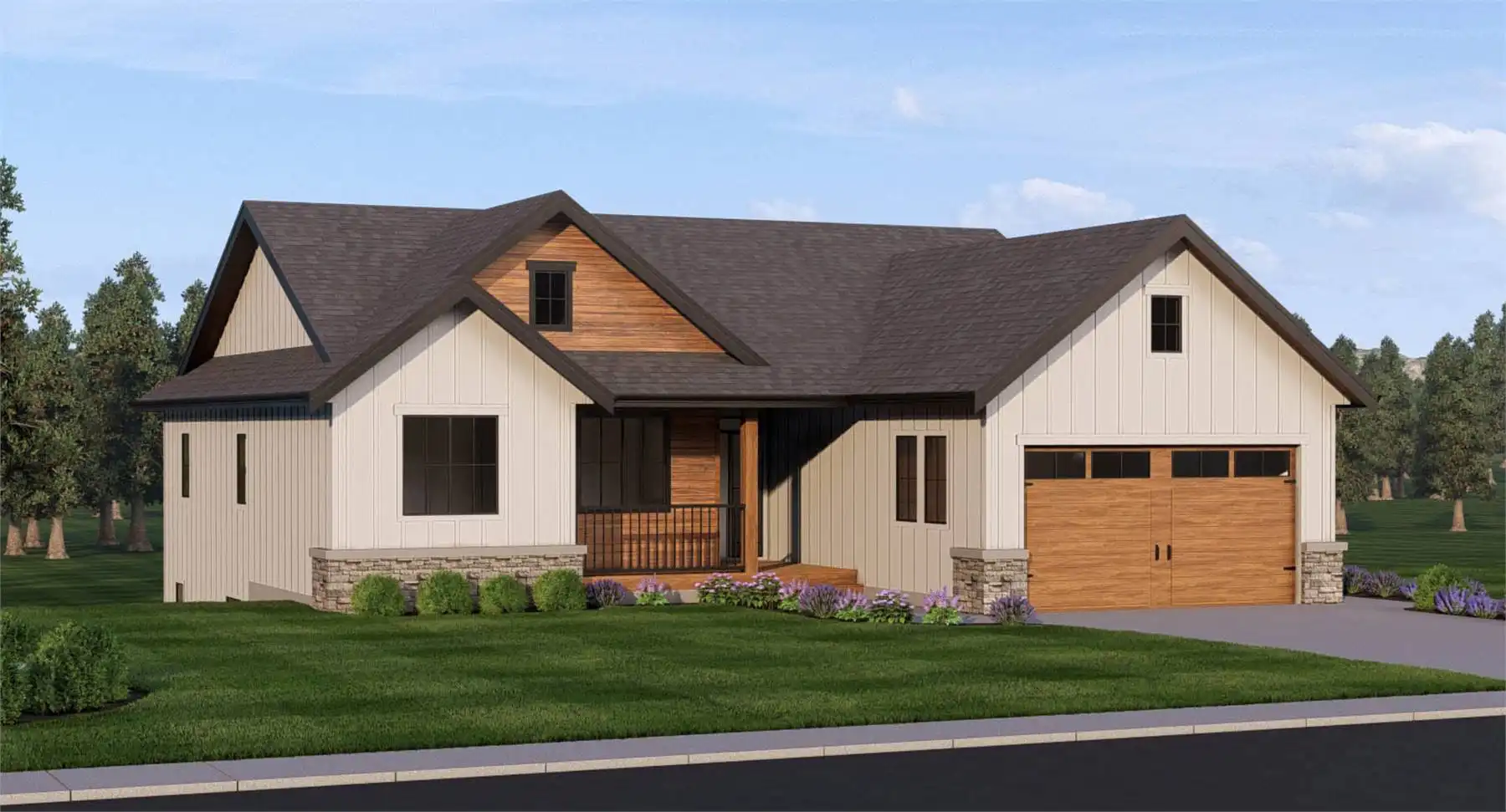 With 1,590 heated square feet, this plan delivers a thoughtful mix of open living spaces and private bedroom zones suited to a variety of lifestyles. The kitchen’s island, walk-in pantry, and L-shaped layout make cooking and gathering simple, especially with the seamless connection to the great room and dining space. A welcoming foyer sets the tone at the entry, while the fireplace adds a cozy focal point for evenings at home. The primary suite on the main floor features a walk-in closet, double vanity, and a separate tub and shower, providing a restful retreat, while the secondary bedrooms sit nearby for a true family-style layout. Practical features like the mud room, first-floor laundry, and multiple storage spaces help support an organized, everyday routine. The covered front porch, covered rear porch, and generous deck extend your living space outdoors and make the most of sloping or scenic lots. Overall, this design blends comfort and function into a warm home that welcomes you in each day.