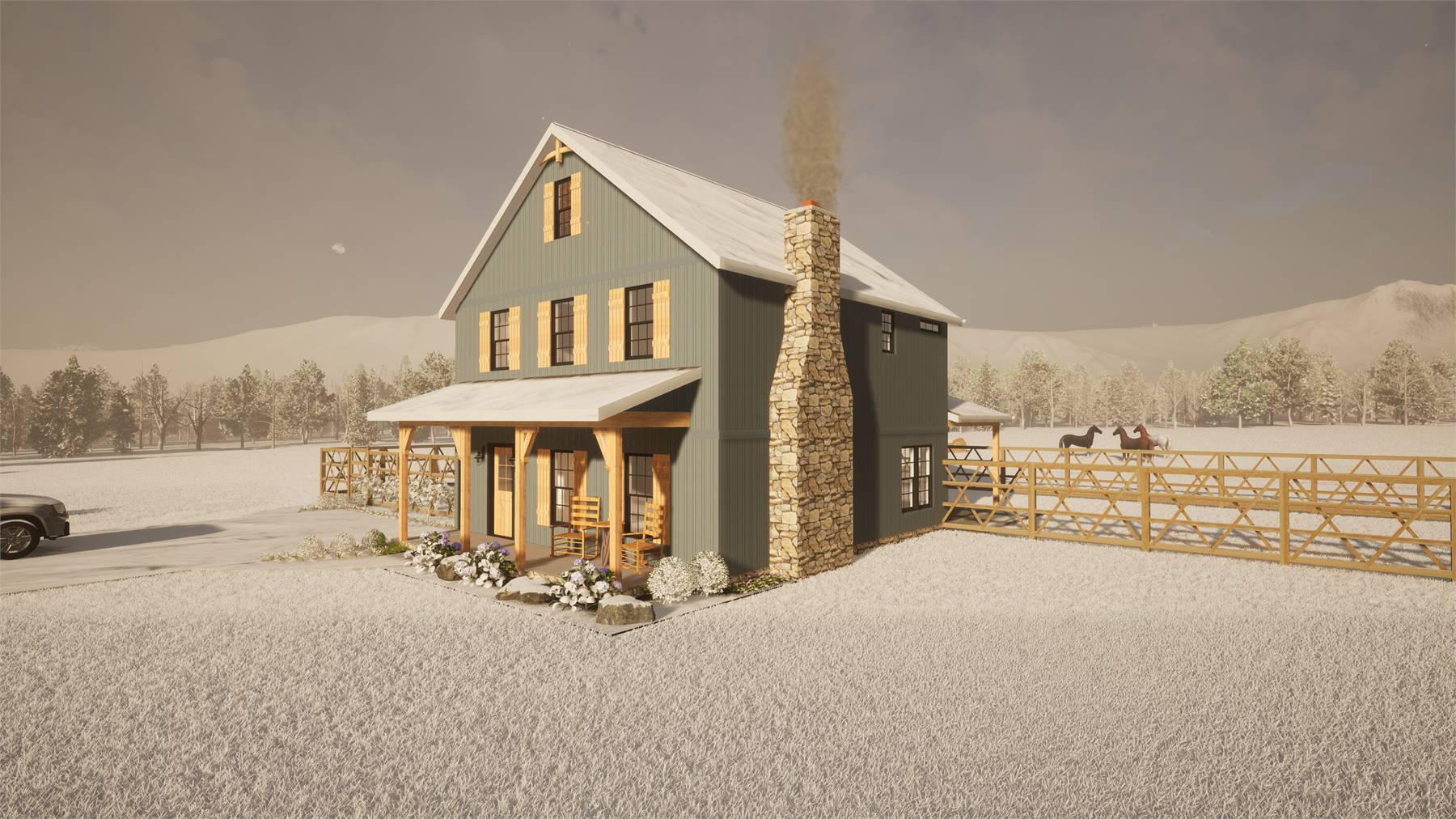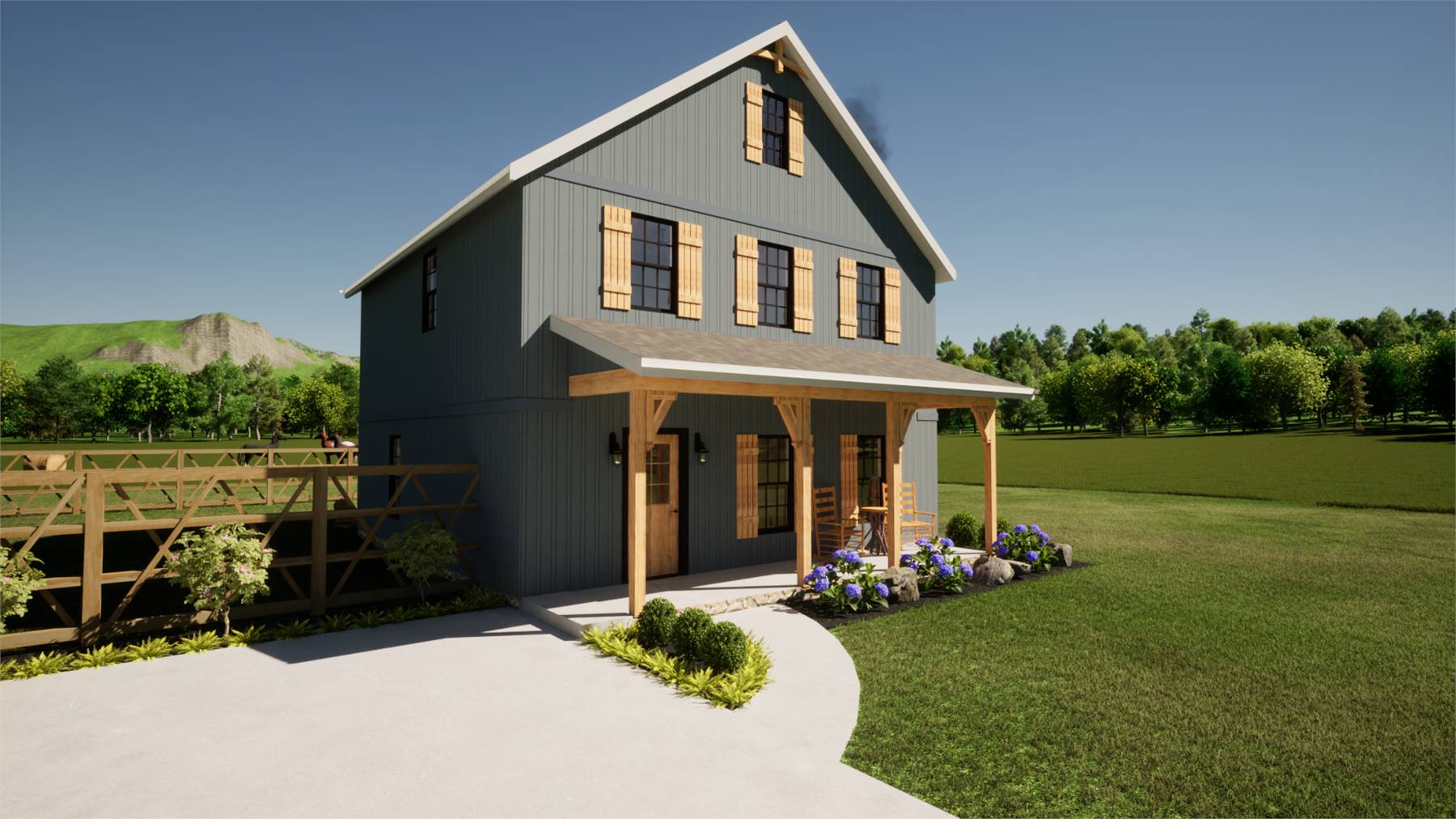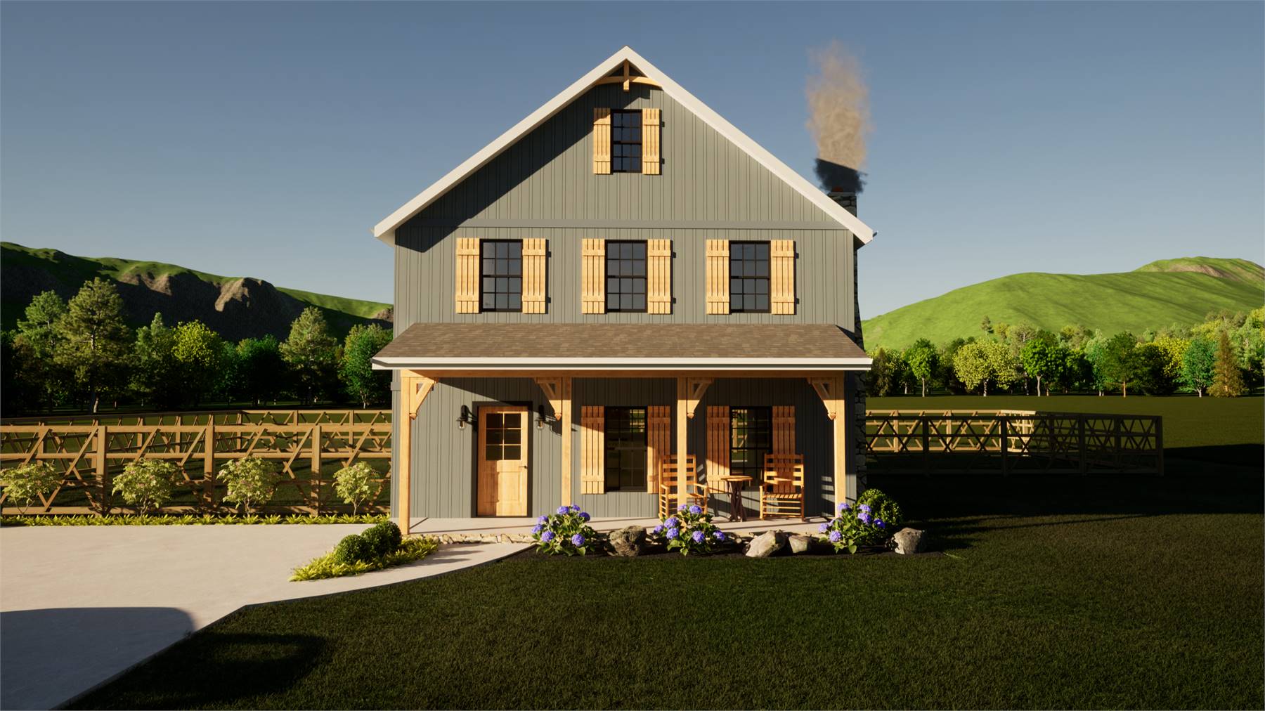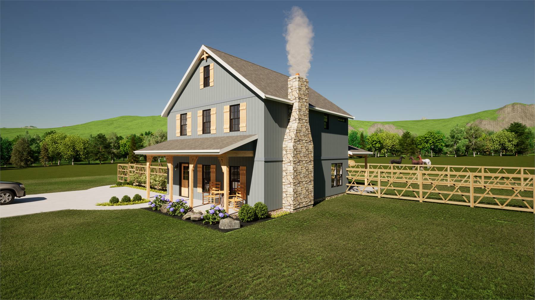 With 1,584 heated square feet, this two-story design blends practical flow with inviting spaces for comfortable living. The main floor offers an open layout that brings together the dining room, living area, and a well-organized U-shaped kitchen supported by a helpful butler’s pantry. Large porches in the front and back encourage effortless indoor-outdoor connection. Upstairs, the primary suite includes a walk-in closet and double-vanity bath, while two additional bedrooms share easy access to a nearby hall bath. The second-floor laundry room adds everyday convenience right where it belongs. Suited for a corner lot and designed without a garage, the plan stays flexible for a variety of property layouts. This well-rounded home delivers comfort, simplicity, and a welcoming feel that suits modern family life.