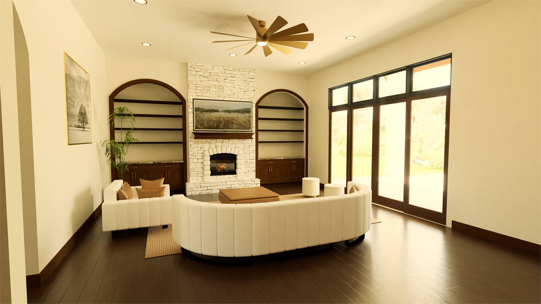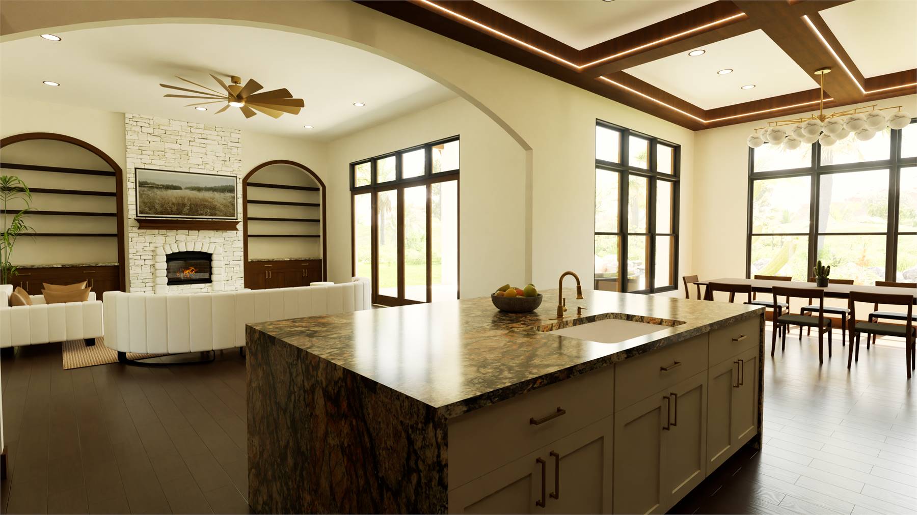 Offering 3,542 heated square feet, this one-story layout blends spacious gathering areas with well-designed private rooms for an easygoing living experience. The kitchen features a large island, a peninsula bar, and a butler’s pantry that keeps everything organized and within reach, making it a welcoming hub for cooking and conversation. The family room and dining space open nearby, centered around a cozy fireplace that anchors the heart of the home. The primary bedroom sits on the main floor and includes a roomy bath with a separate tub and shower along with a walk-in closet, while split bedrooms on the opposite side provide comfort and privacy for family or guests. A covered rear porch encourages outdoor enjoyment throughout the year, and the home office, storage areas, and mud room enhance everyday practicality. This inviting design offers the kind of comfortable, thoughtful layout that makes daily life feel easy and enjoyable.