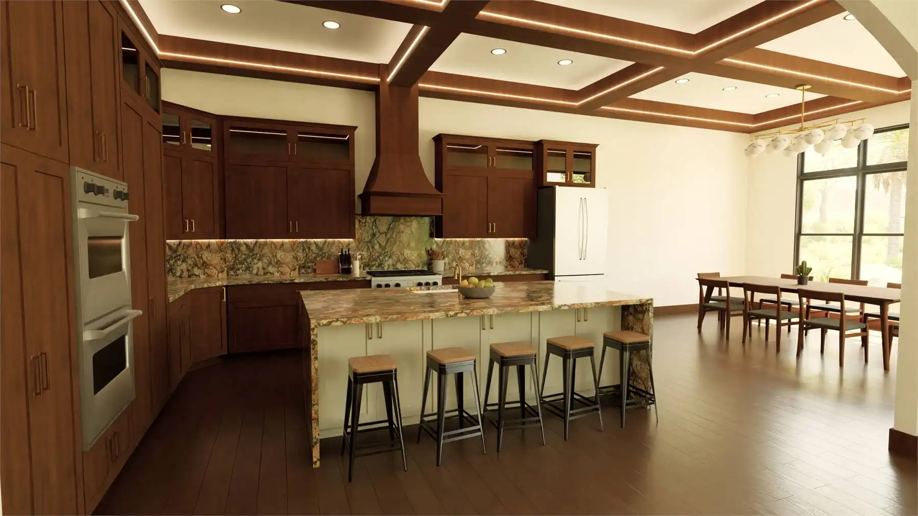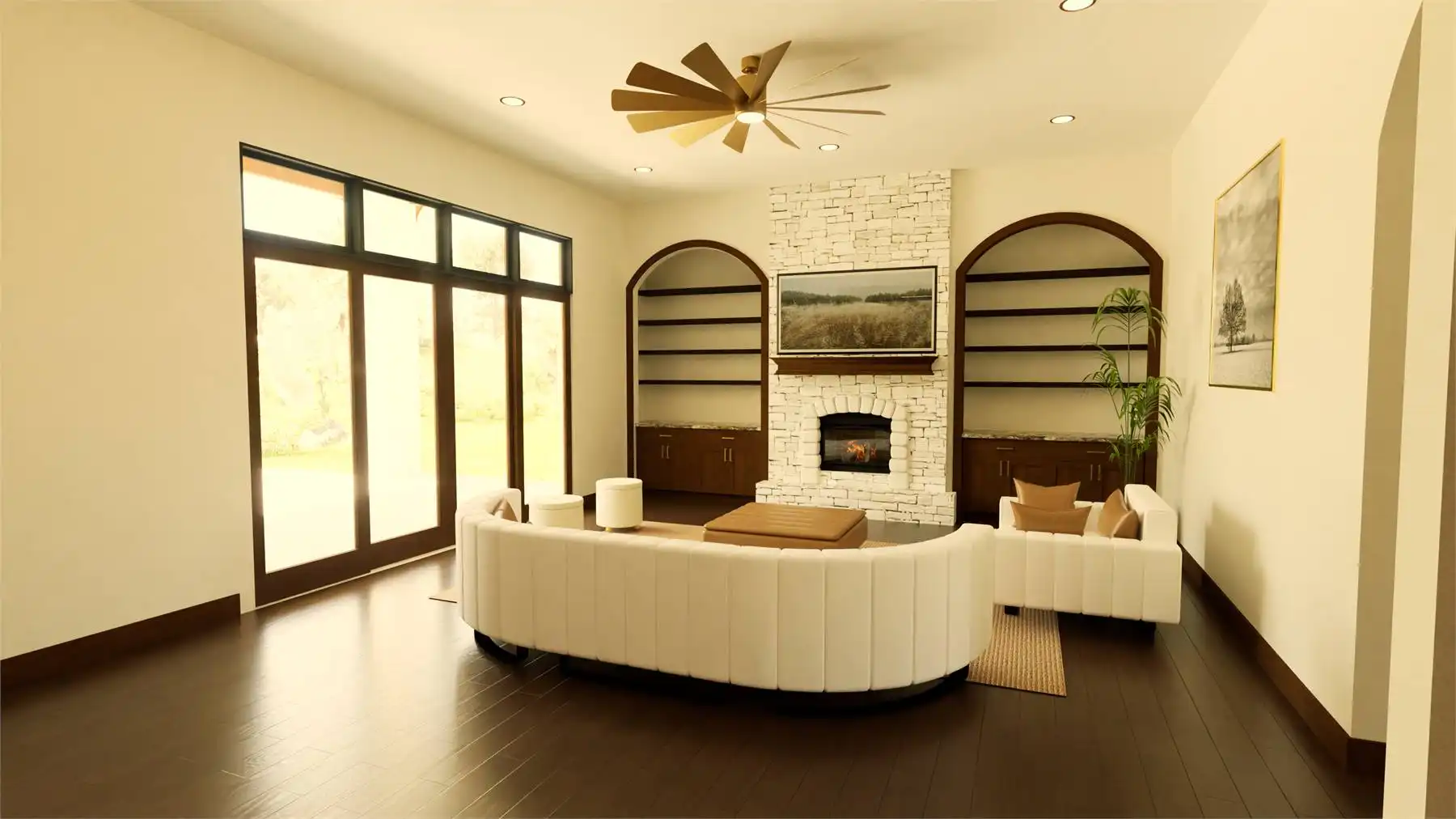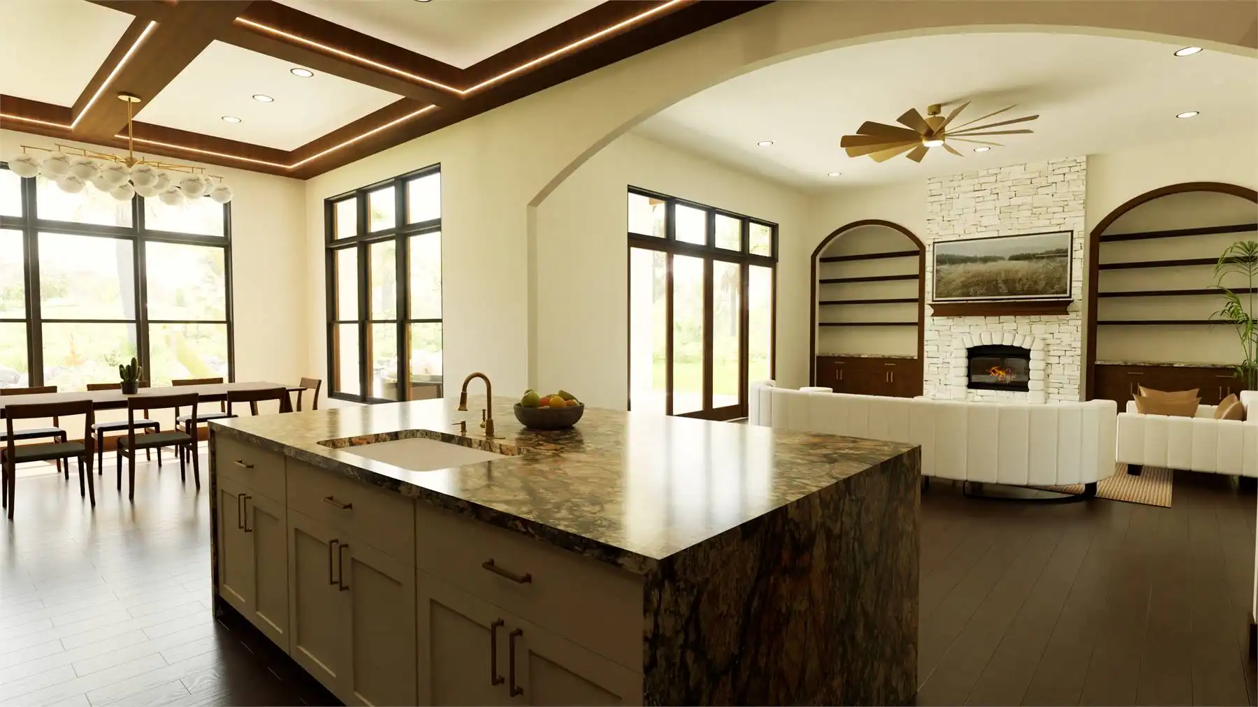 Offering 3,542 heated square feet, this one-story layout blends spacious gathering areas with well-designed private rooms for an easygoing living experience. The kitchen features a large island, a peninsula bar, and a butler’s pantry that keeps everything organized and within reach, making it a welcoming hub for cooking and conversation. The family room and dining space open nearby, centered around a cozy fireplace that anchors the heart of the home. The primary bedroom sits on the main floor and includes a roomy bath with a separate tub and shower along with a walk-in closet, while split bedrooms on the opposite side provide comfort and privacy for family or guests. A covered rear porch encourages outdoor enjoyment throughout the year, and the home office, storage areas, and mud room enhance everyday practicality. This inviting design offers the kind of comfortable, thoughtful layout that makes daily life feel easy and enjoyable.