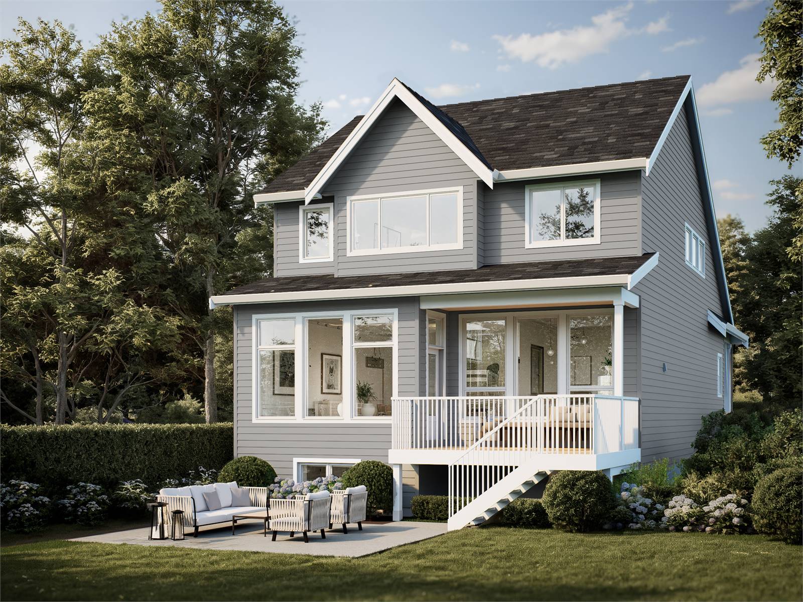 With 1,981 square feet of bright and flexible living space, this home blends comfort with thoughtful family-friendly design. The L-shaped kitchen offers an island and eating bar, connecting seamlessly to the great room for effortless mealtime gatherings. Upstairs, the spacious primary suite includes double vanity sinks, dual closets, and a cozy sitting area, giving you a peaceful and private space to recharge. Two additional bedrooms accompany a nearby laundry room, making everyday routines simple and efficient. A rec room adds versatility for games, entertainment, or creative projects, while the home office provides a quiet place to work when needed. Outdoor living is easy with a covered front porch and a deck that expands the home’s social spaces. Designed to support both busy days and relaxing evenings, this plan offers a warm and comfortable setting for modern family life.