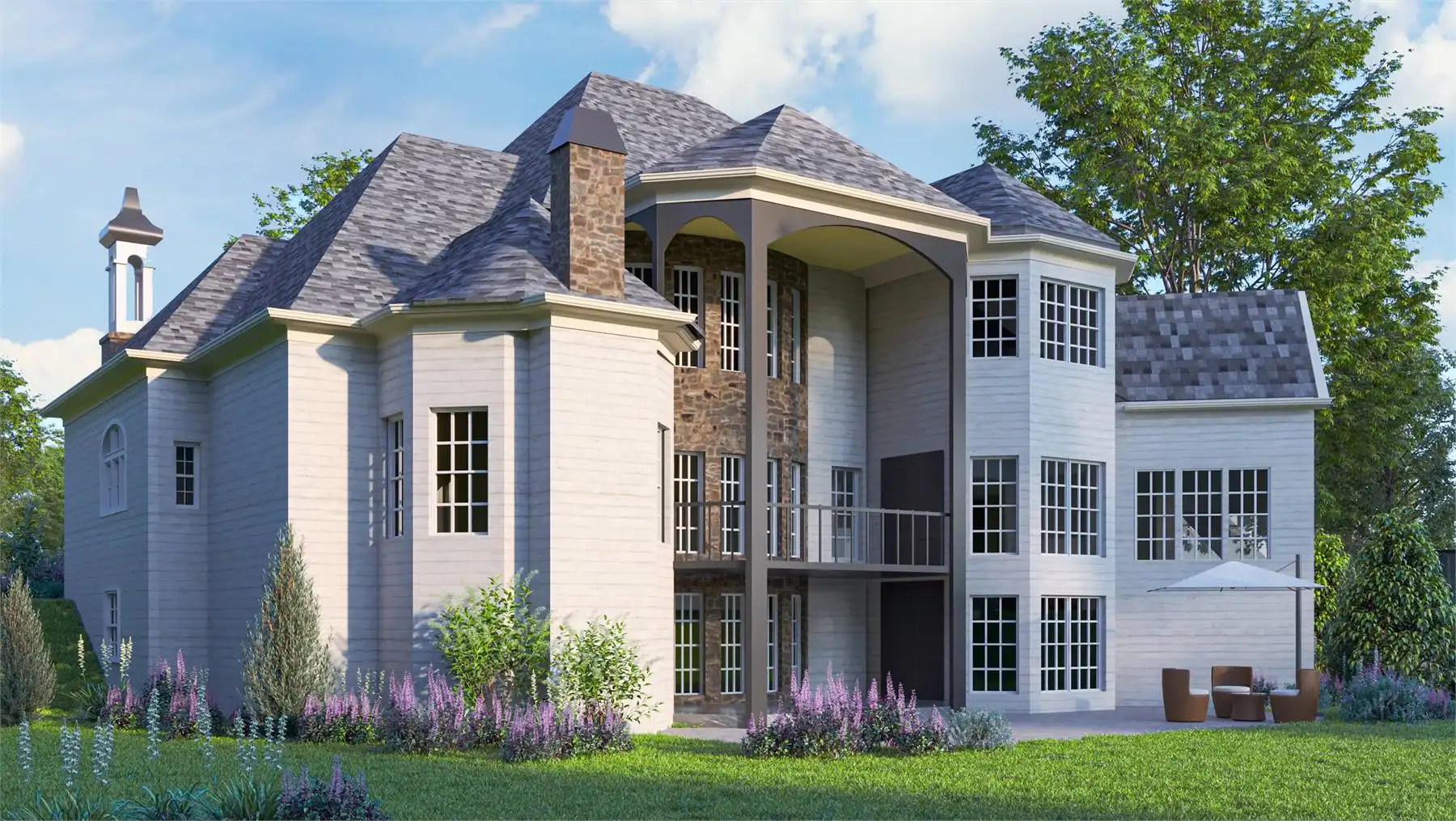 This 4,944 square foot home with 5 bedrooms is arranged to support busy households that value both openness and privacy. The main-floor primary suite features a sitting area, separate tub and shower, and his and hers closets, making it a true retreat. Split bedrooms help create peaceful separation, while the great room’s tall volume ceiling brings in natural light and a sense of spaciousness. The kitchen is designed for everyday convenience with an island, L-shaped layout, peninsula, and multiple pantry options for easy organization. Upstairs, the loft and bonus room add flexibility for recreation, study, or relaxation, and the media/library space gives even more room for hobbies. Covered porches make outdoor living simple and enjoyable throughout the seasons. With thoughtful features and warm gathering areas, this plan delivers a comfortable and inviting place to call home.