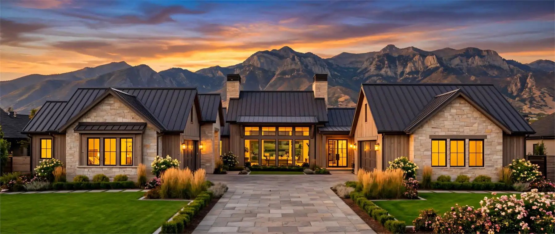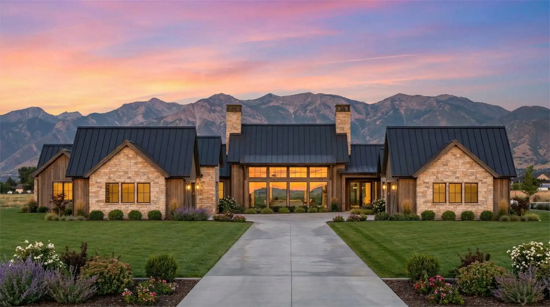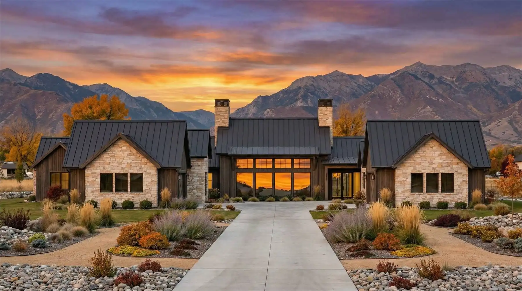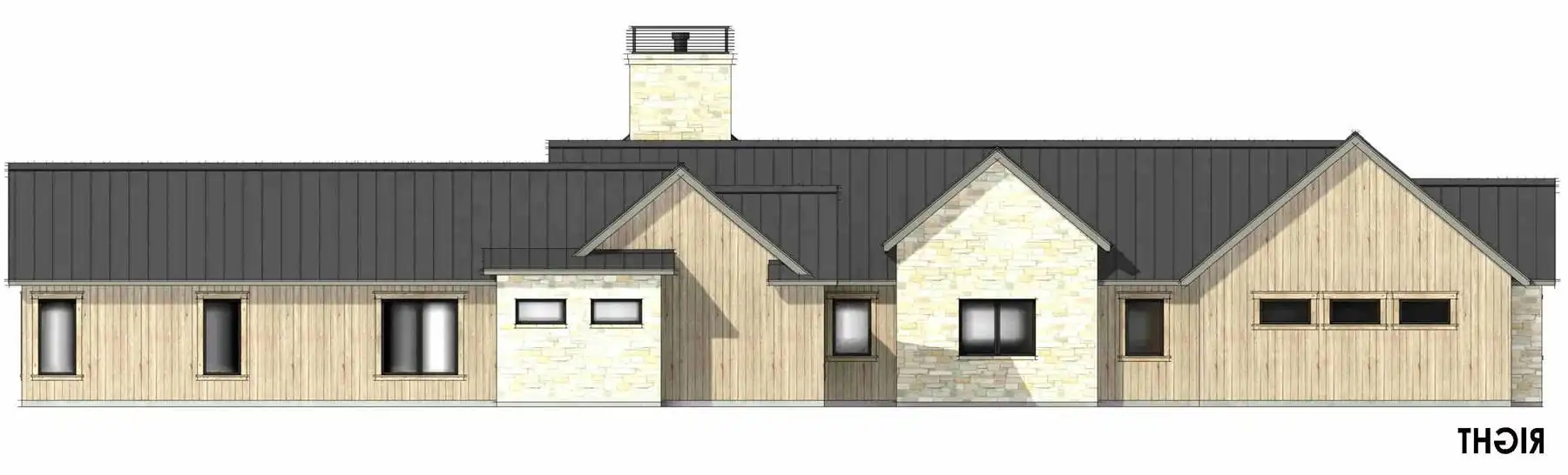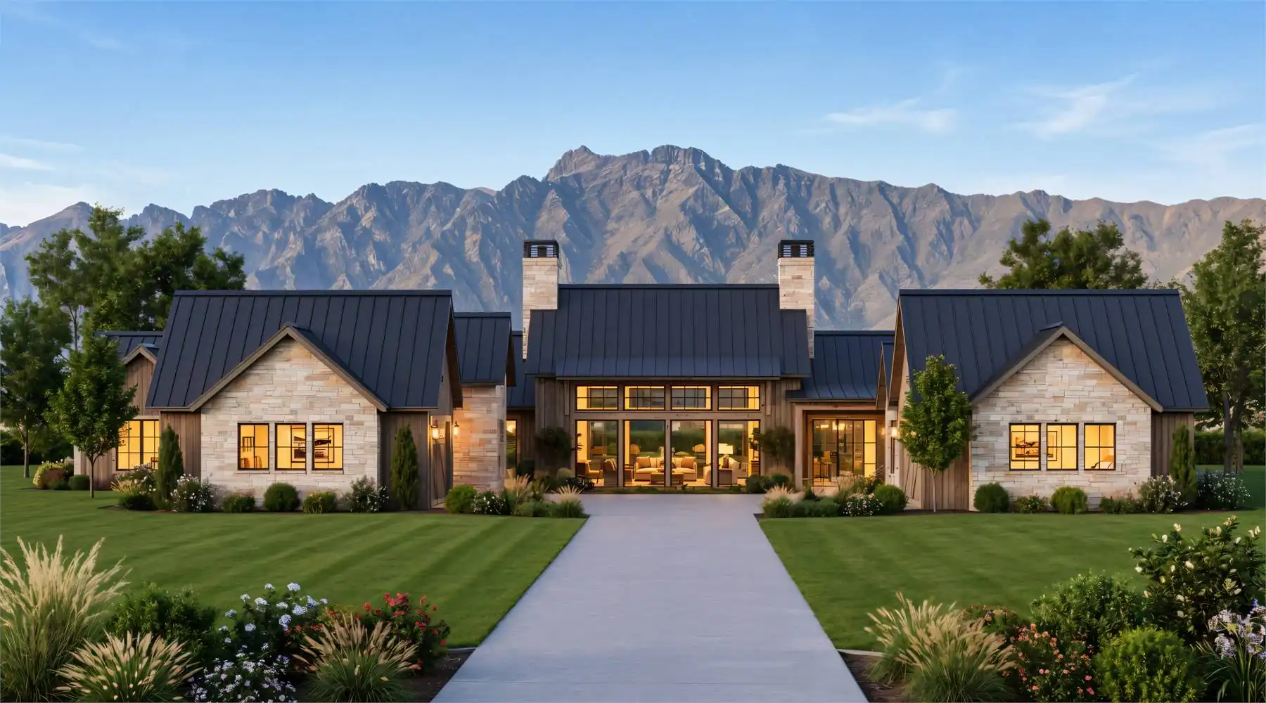 House Plan 12014 offers a refined one story modern design built around a serene courtyard and a split 4 car garage, with two garage bays on each side for a balanced and functional layout. Guests step from the welcoming front porch into a grand entry hall that flows into a vaulted great room highlighted by two double-sided fireplaces, creating striking focal points on both sides of the space. The open floor plan includes an expansive outdoor living area, a formal dining room, and a showstopping L-shaped kitchen with a generous central island, oversized pantry, and a dedicated bar room. The right wing provides a family entrance tucked away from the main living areas, a large utility room, and a private office, along with a game room with a half bath and two secondary bedrooms with full baths. The left wing is reserved for the luxurious primary suite with vaulted ceilings and a spa-style ensuite, plus a fourth bedroom with a private bathroom.