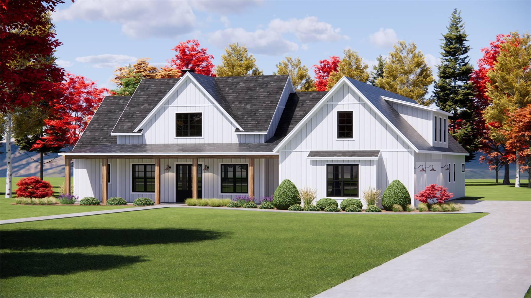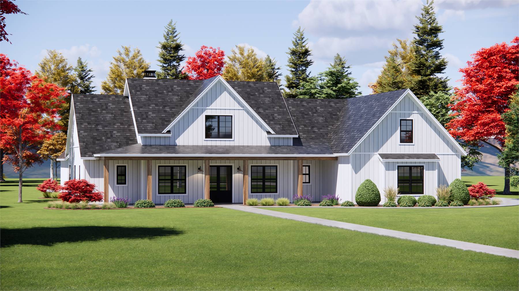 With 3,052 heated square feet, this home offers five bedrooms and an open layout designed for family comfort and practical living. The U-shaped kitchen features a butler’s pantry, kitchen island, and walk-in pantry, connecting directly to the vaulted great room for bright, airy family gatherings. The main-floor primary suite includes a walk-in closet, double vanity sink, and separate tub and shower for a private retreat. Bonus spaces, including a dining room, family room, and bonus room, accommodate flexible living needs, while a mud room and first-floor laundry add convenience. The covered front porch, rear porch, and outdoor living space make enjoying the yard effortless, especially on corner, view, or sloping lots. With a side-entry attached garage and thoughtful storage throughout, this home offers a combination of open, vaulted design and practical comfort. Every element is tailored for warm, family-focused living.