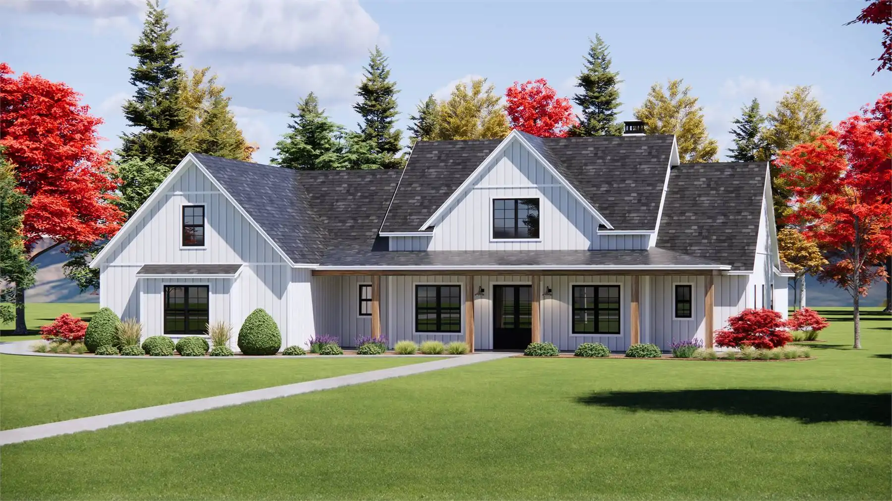 With 3,052 heated square feet, this home offers five bedrooms and an open layout designed for family comfort and practical living. The U-shaped kitchen features a butler’s pantry, kitchen island, and walk-in pantry, connecting directly to the vaulted great room for bright, airy family gatherings. The main-floor primary suite includes a walk-in closet, double vanity sink, and separate tub and shower for a private retreat. Bonus spaces, including a dining room, family room, and bonus room, accommodate flexible living needs, while a mud room and first-floor laundry add convenience. The covered front porch, rear porch, and outdoor living space make enjoying the yard effortless, especially on corner, view, or sloping lots. With a side-entry attached garage and thoughtful storage throughout, this home offers a combination of open, vaulted design and practical comfort. Every element is tailored for warm, family-focused living.