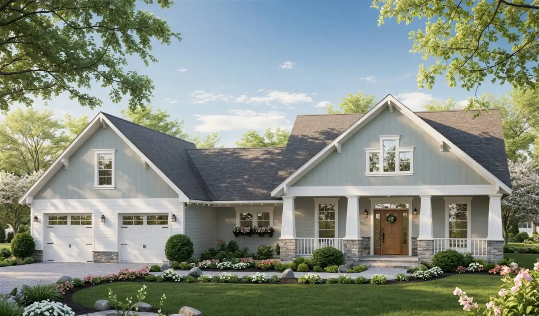 Offering 2,108 square feet of comfortable living space, this home is designed to support family life with warm, open gathering spaces and well-planned private rooms. The vaulted great room creates a central hub that connects easily to the kitchen, breakfast nook, and dining area, making everyday routines and shared moments feel natural. The kitchen features an island, peninsula, pantry, and plenty of workspace to keep cooking organized and enjoyable. The primary bedroom on the main floor includes two walk-in closets and a spacious bath with a separate tub and shower, while split bedrooms provide peace and privacy. A home office, library/media room, and bonus room introduce flexibility for hobbies, work, or future needs. The covered front porch and large rear porch offer inviting outdoor spaces for relaxing in the shade. With its thoughtful flow and warm character, this home feels ready to welcome meaningful memories.