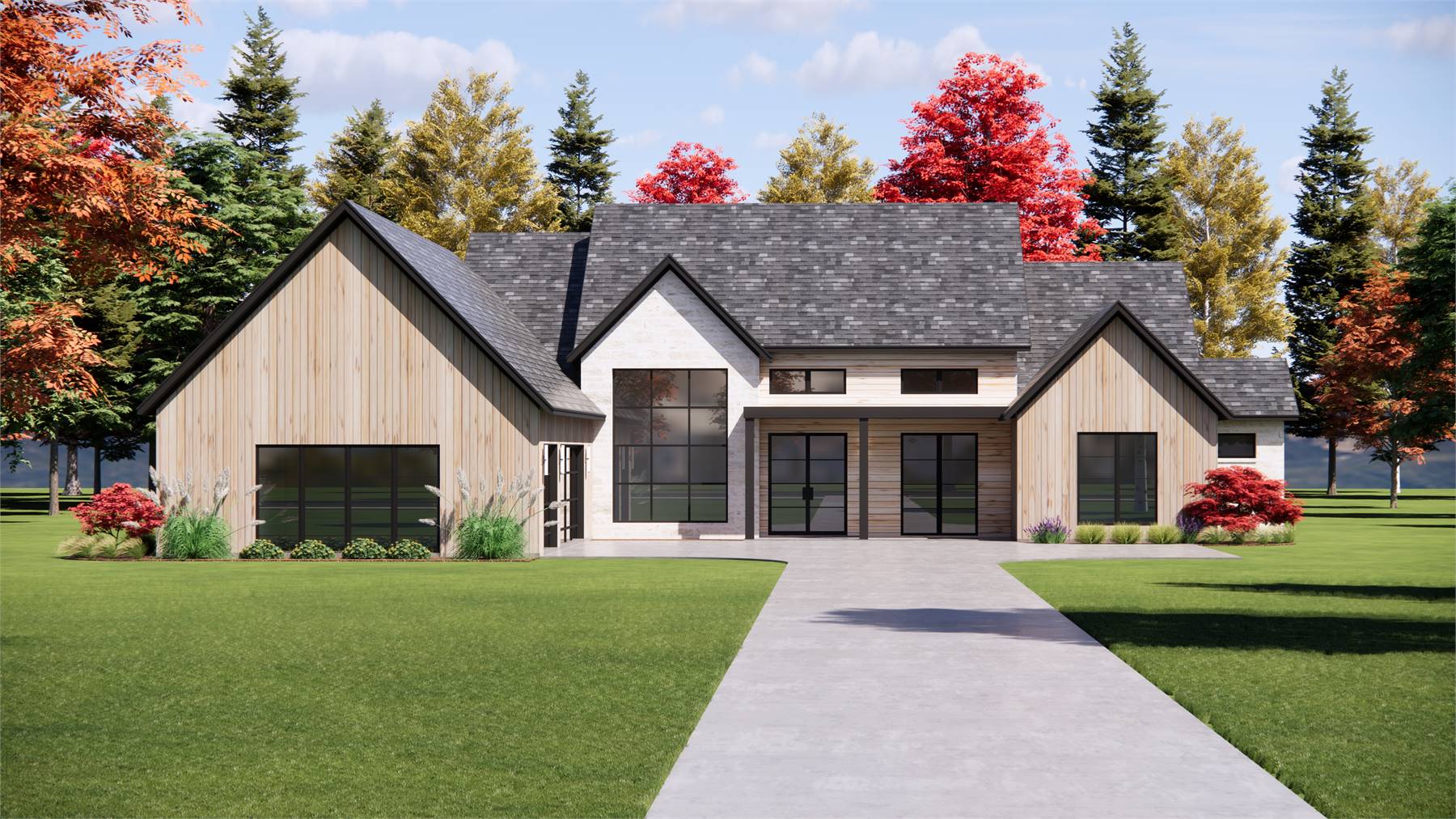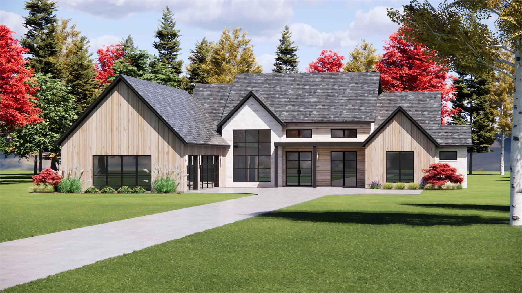 This 5-bedroom home offers 5,310 heated square feet designed for flexible family living across both levels. The kitchen includes a butler’s pantry, island, and peninsula, creating a seamless connection to the dining room and vaulted great room. The main-floor primary suite features a vaulted ceiling, walk-in closet, and a relaxing bath with a separate tub and shower. The lower level adds a spacious rec room and storage areas that can adapt to changing needs over time. A front-entry garage with courtyard-style access enhances convenience while keeping the exterior tidy and accessible. Vaulted ceilings and an open floor plan help natural light fill the central living areas. Both covered porches and a rear deck invite outdoor living throughout the year. Blending large, open spaces with cozy private rooms, this home offers comfort and versatility for everyday living.