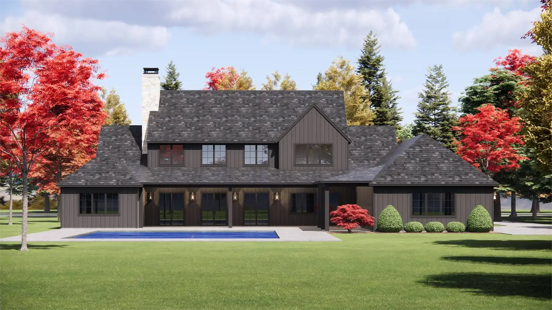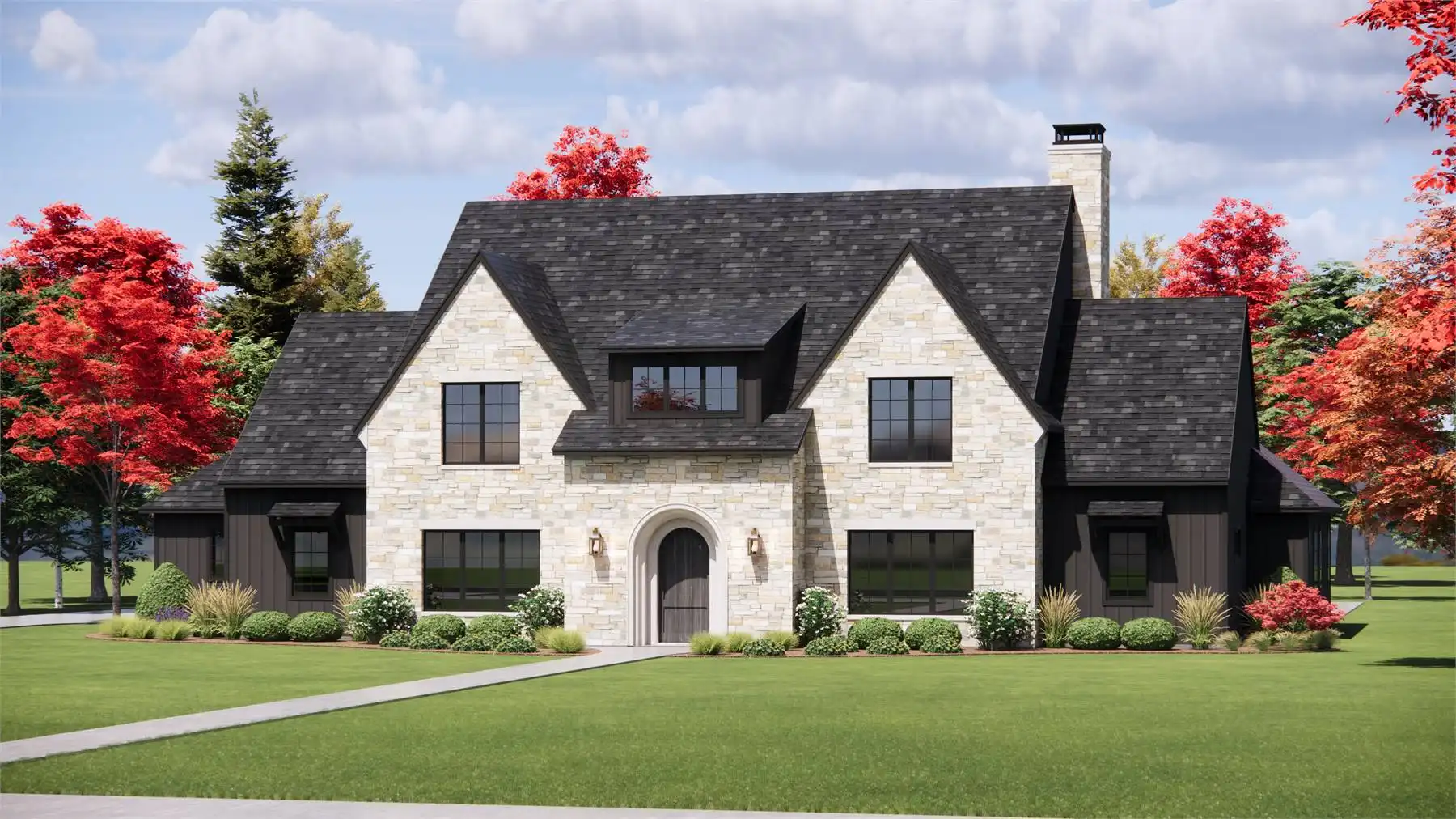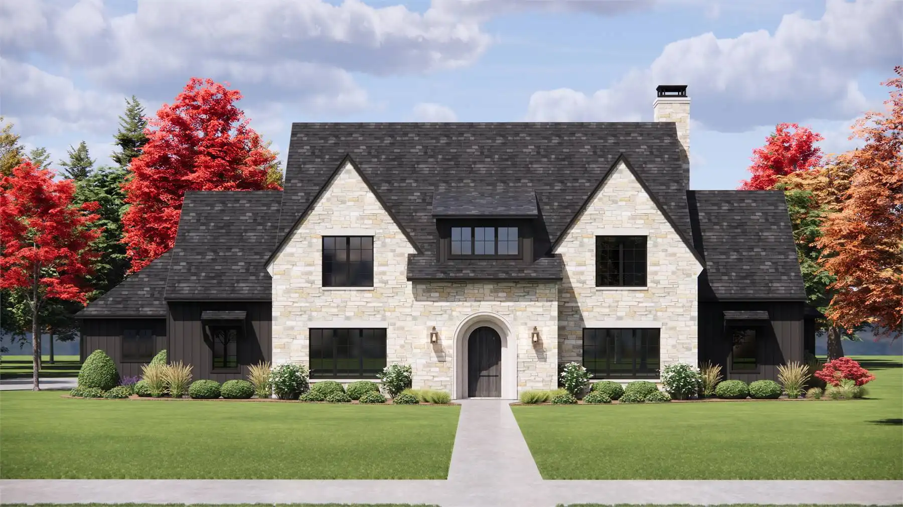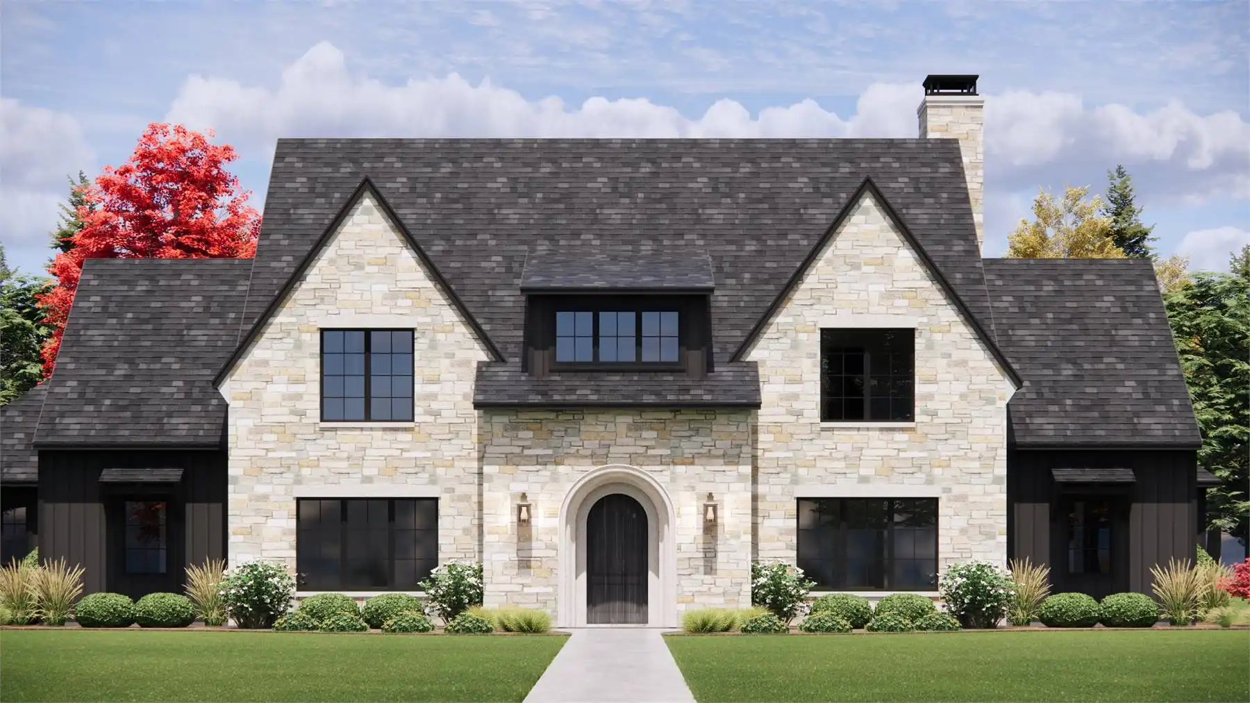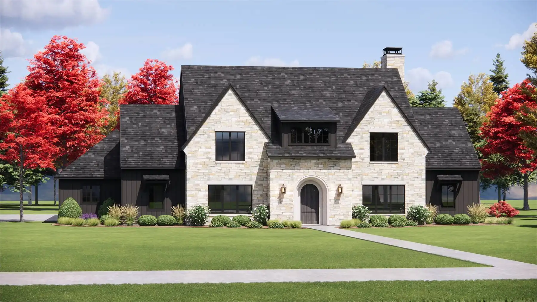 House Plan 12042 is a stunning 5,001 sq. ft. luxury European farmhouse designed with dramatic architectural details and elevated everyday comfort. A two-story foyer opens into a vaulted great room and a beautifully appointed kitchen with an oversized island and walk-in pantry. The dining room features a barrel ceiling, while the rear porch and outdoor kitchen extend the home’s entertainment potential. The main-level primary suite provides a private retreat with its vaulted ceiling, spa-inspired bath, and large closet. A guest suite, office, and mudroom add functionality for busy families. Upstairs, three bedrooms, a generous loft, and a full game/media room offer flexible living and recreation space. With a 4-car garage, wraparound porch, and premium finishes throughout, this plan defines luxury European farmhouse living.