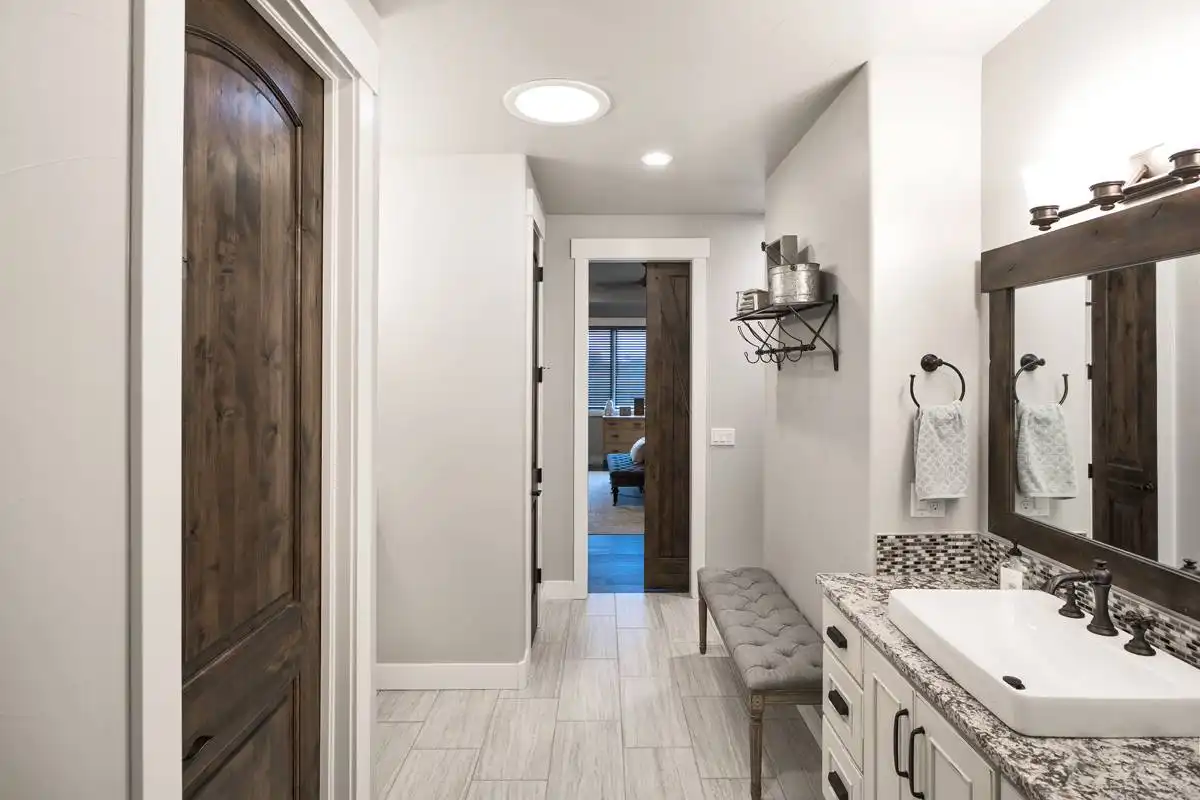This well-planned 2,422 square foot home features a spacious single-level layout paired with a finished lower level for added versatility. The main floor centers around an open kitchen with a generous island, L-shaped configuration, and walk-in pantry connected to a bright great room and dining area. The primary suite includes a walk-in closet, double vanity, and a separate tub and shower, while the split-bedroom design maintains privacy for every occupant. Thoughtful spaces such as the home office, exercise room, mud room, and main-floor laundry provide convenience for modern routines. The lower level adds extra living potential with additional square footage and unfinished space for future customization. Covered porches and a deck extend the living area outdoors, creating natural spaces for relaxing or hosting friends. Blending comfort with flexibility, this home is designed to grow with you and make everyday living feel enjoyable.