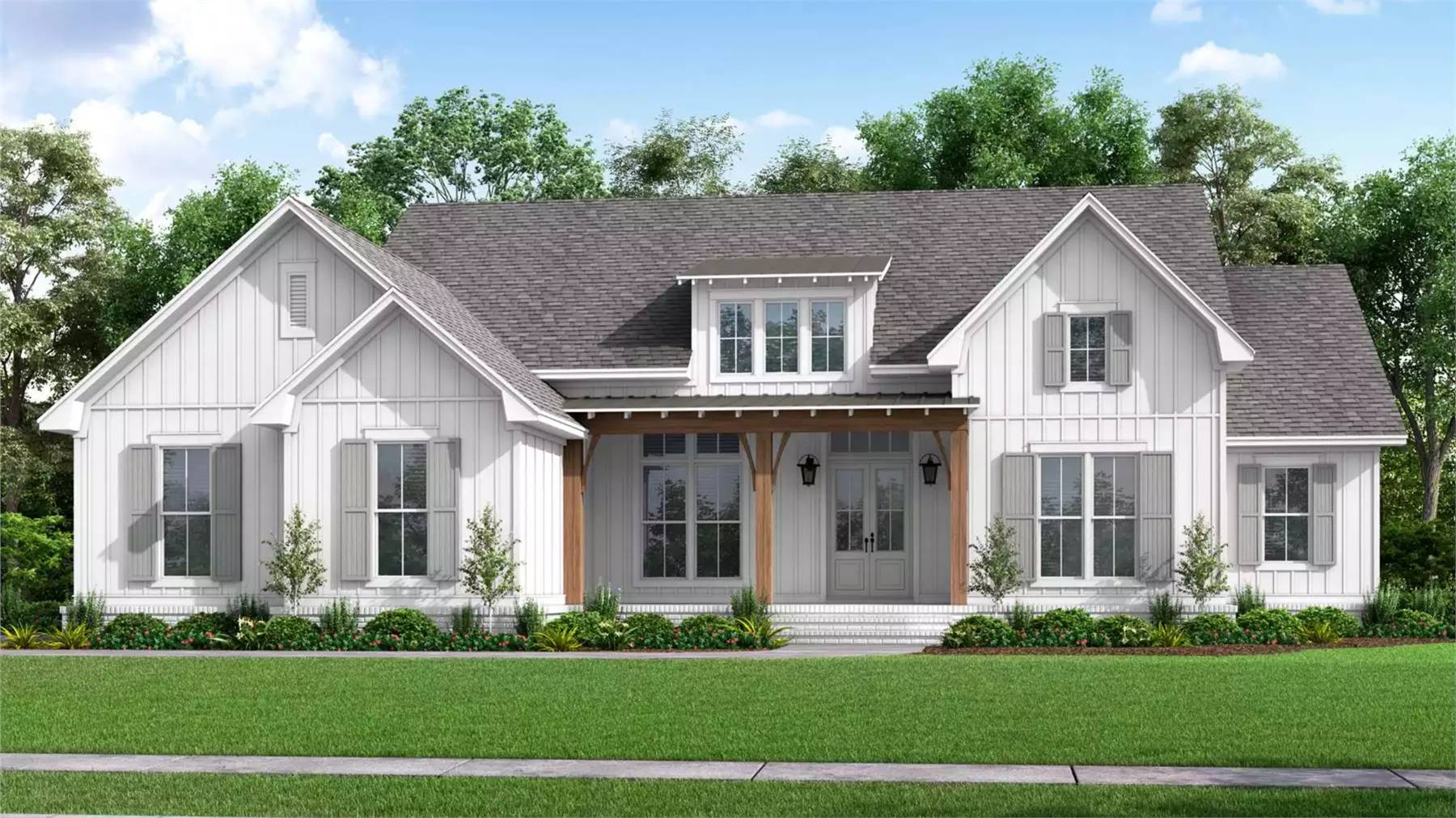 Designed with both space and flexibility in mind, this home includes 2,847 square feet of heated living space with 4 bedrooms and 2.5 baths. The open floor plan allows the great room to flow seamlessly into the dining area and kitchen, making the layout ideal for entertaining and everyday use. An L-shaped kitchen with an island, peninsula eating bar, and walk-in pantry supports everything from quick meals to larger gatherings. The main-floor primary suite provides a private retreat with double vanities, a walk-in closet, and a separate tub and shower. Split bedrooms enhance privacy for family or guests, while a home office adds convenience for remote work or study. Covered porches, a functional mud room, and ample storage complete a home that feels warm, livable, and well organized.