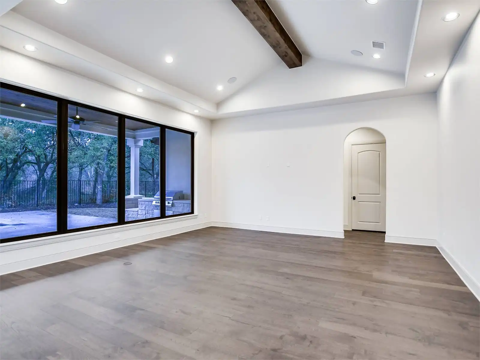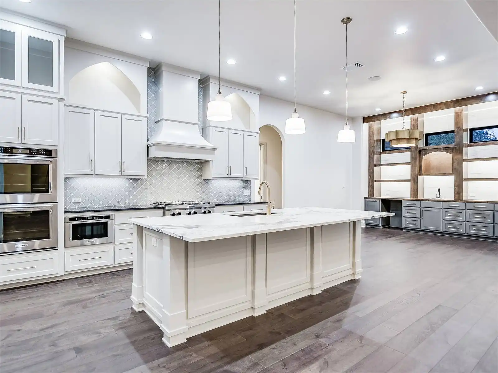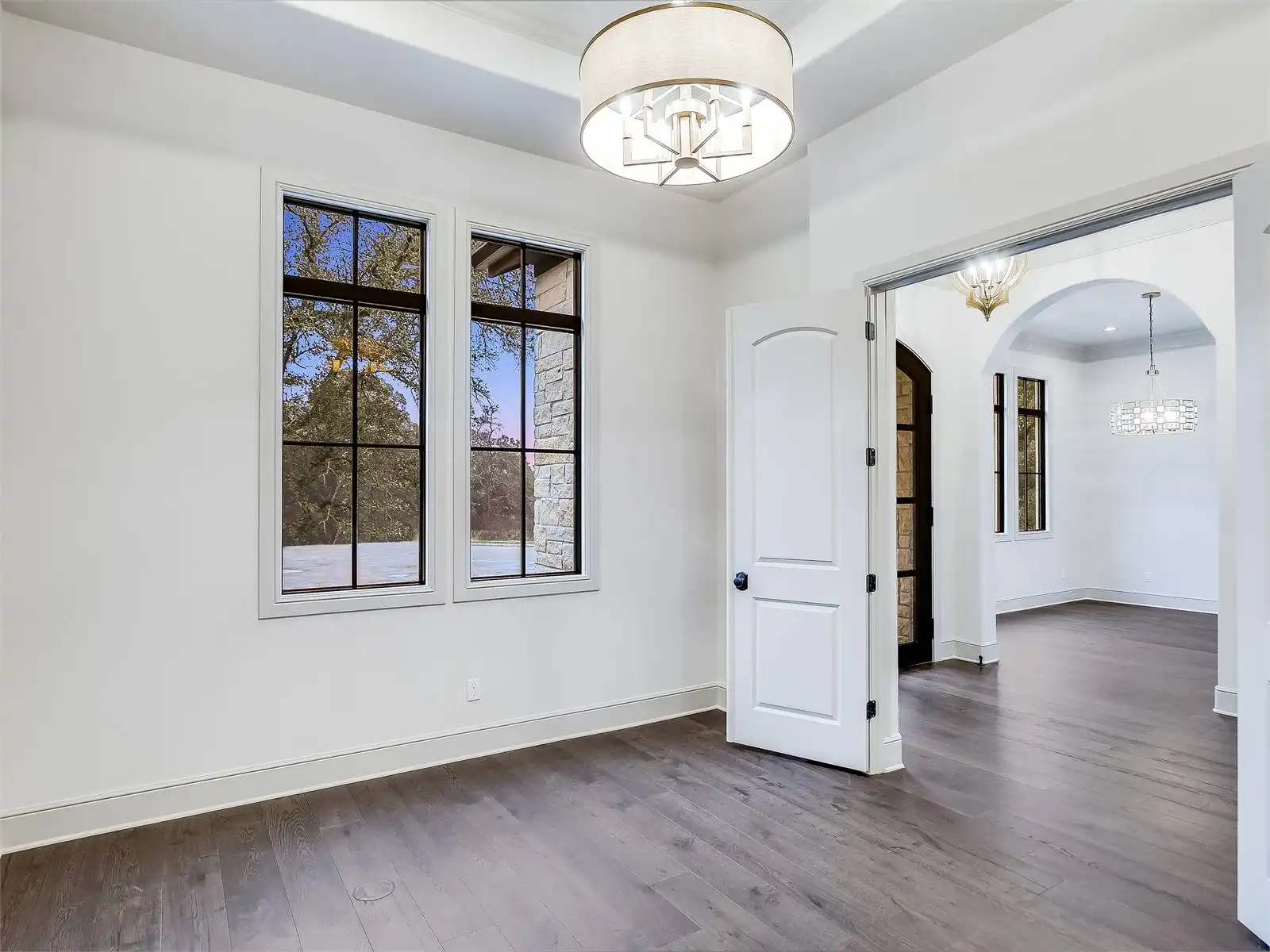 House Plan 12064 showcases classic Texas Ranch style with modern luxury touches, from its arched architectural details to its dramatic use of windows that flood the home with natural light. The open plan design is anchored by soaring volume ceilings and connected living spaces that flow naturally to a spacious rear porch, perfect for entertaining or relaxing outdoors. A dedicated keeping room with a wet bar creates an inviting secondary gathering space, while the kitchen is thoughtfully designed with a large walk in pantry and a butler’s pantry to support both daily life and special occasions. The primary suite is a true highlight, offering generous space, two walk in closets, and a private, retreat like feel. Two guest bedrooms are designed as private suites with their own bathrooms, ensuring comfort and privacy for visitors. A versatile study or flex room adapts easily to changing needs, and the laundry room includes a walk in closet for added convenience and storage. Completing the design is a separate third car garage that enhances functionality while preserving the home’s striking curb appeal. House Plan 12064 blends bold ranch character with refined details for a home that feels both impressive and livable.