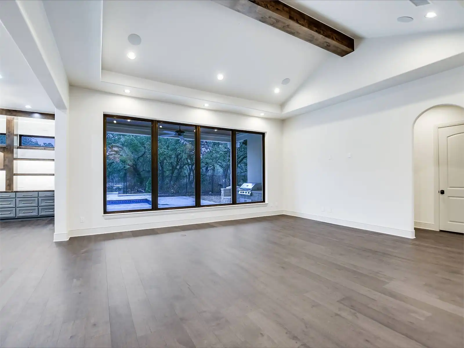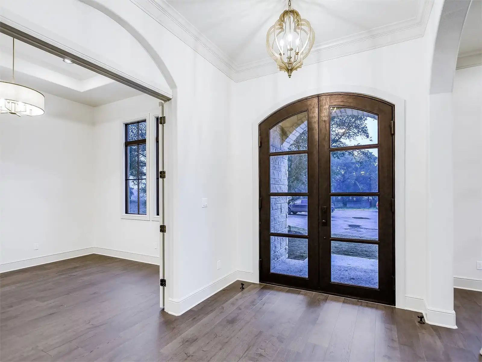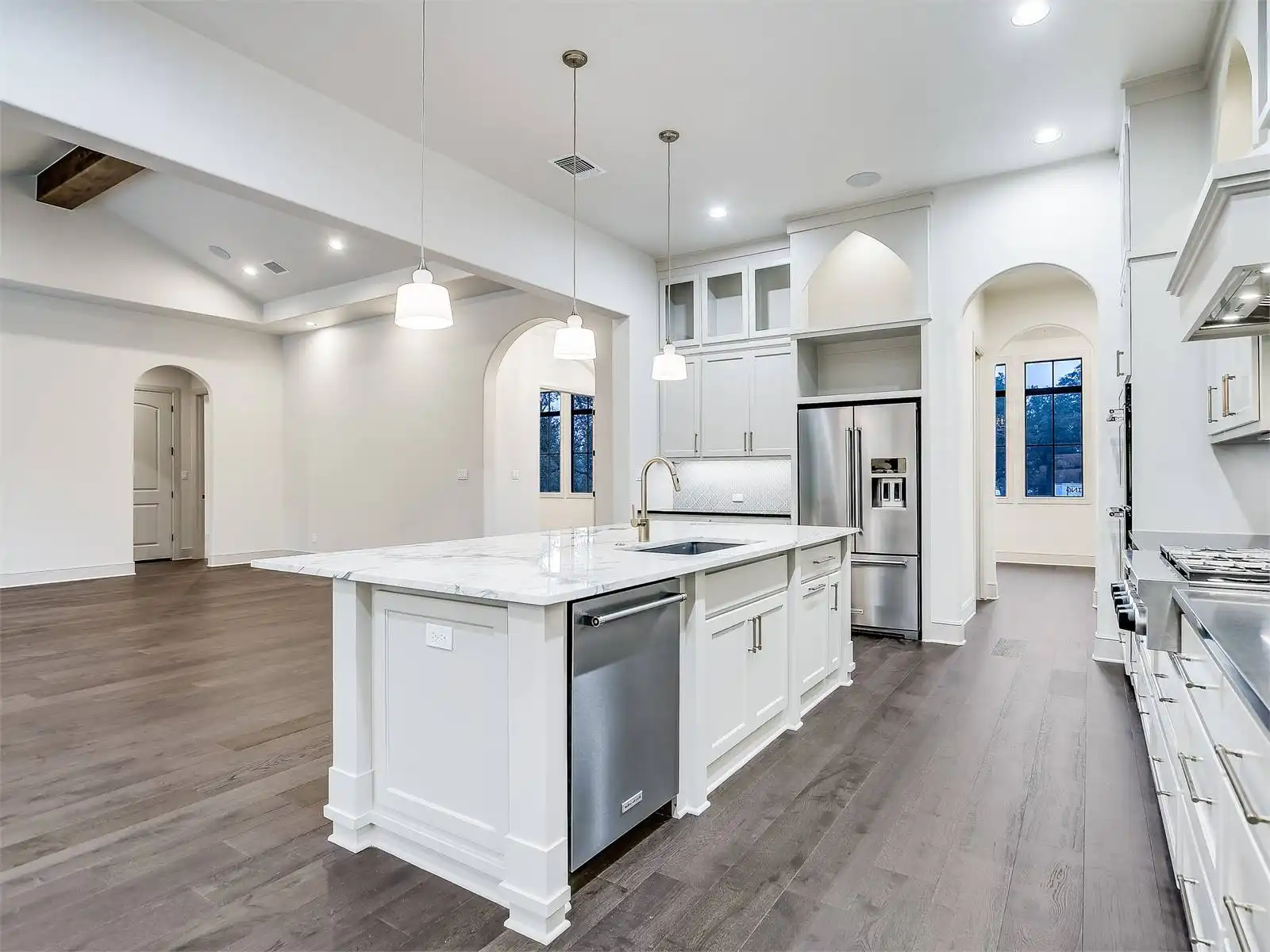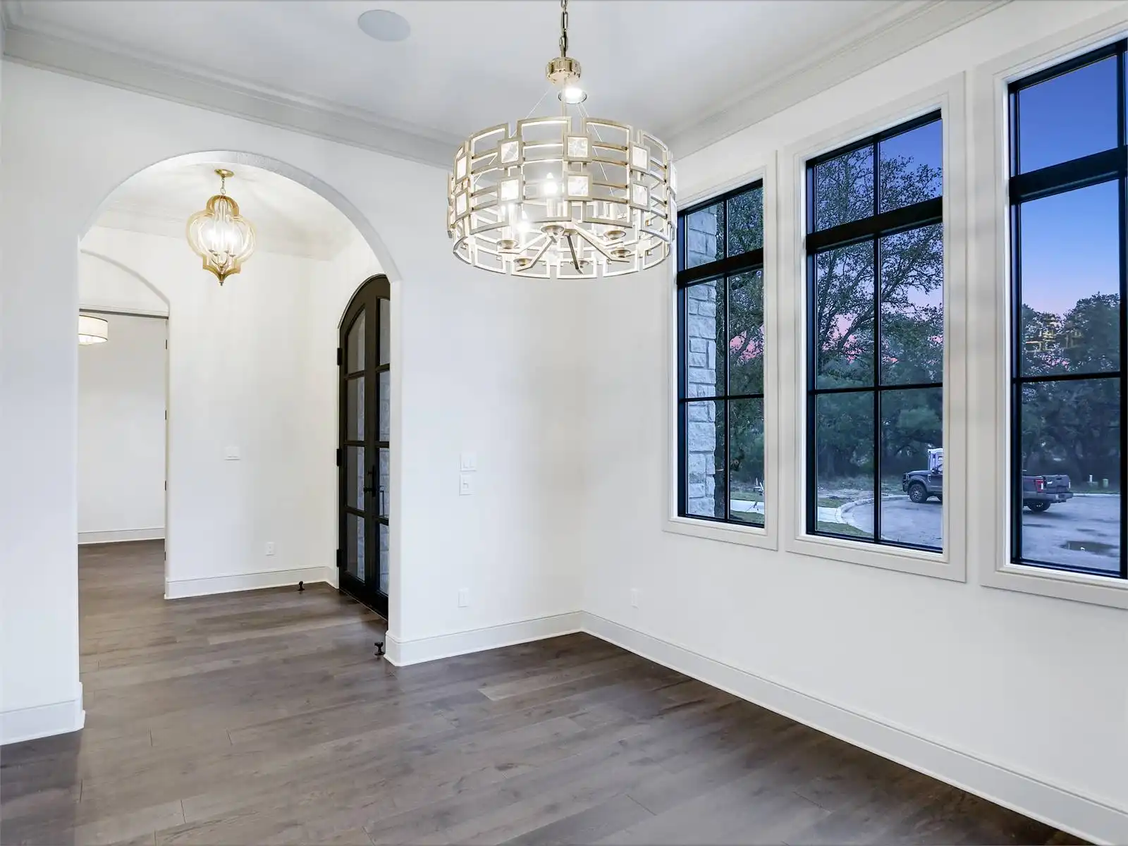 House Plan 12064 showcases classic Texas Ranch style with modern luxury touches, from its arched architectural details to its dramatic use of windows that flood the home with natural light. The open plan design is anchored by soaring volume ceilings and connected living spaces that flow naturally to a spacious rear porch, perfect for entertaining or relaxing outdoors. A dedicated keeping room with a wet bar creates an inviting secondary gathering space, while the kitchen is thoughtfully designed with a large walk in pantry and a butler’s pantry to support both daily life and special occasions. The primary suite is a true highlight, offering generous space, two walk in closets, and a private, retreat like feel. Two guest bedrooms are designed as private suites with their own bathrooms, ensuring comfort and privacy for visitors. A versatile study or flex room adapts easily to changing needs, and the laundry room includes a walk in closet for added convenience and storage. Completing the design is a separate third car garage that enhances functionality while preserving the home’s striking curb appeal. House Plan 12064 blends bold ranch character with refined details for a home that feels both impressive and livable.