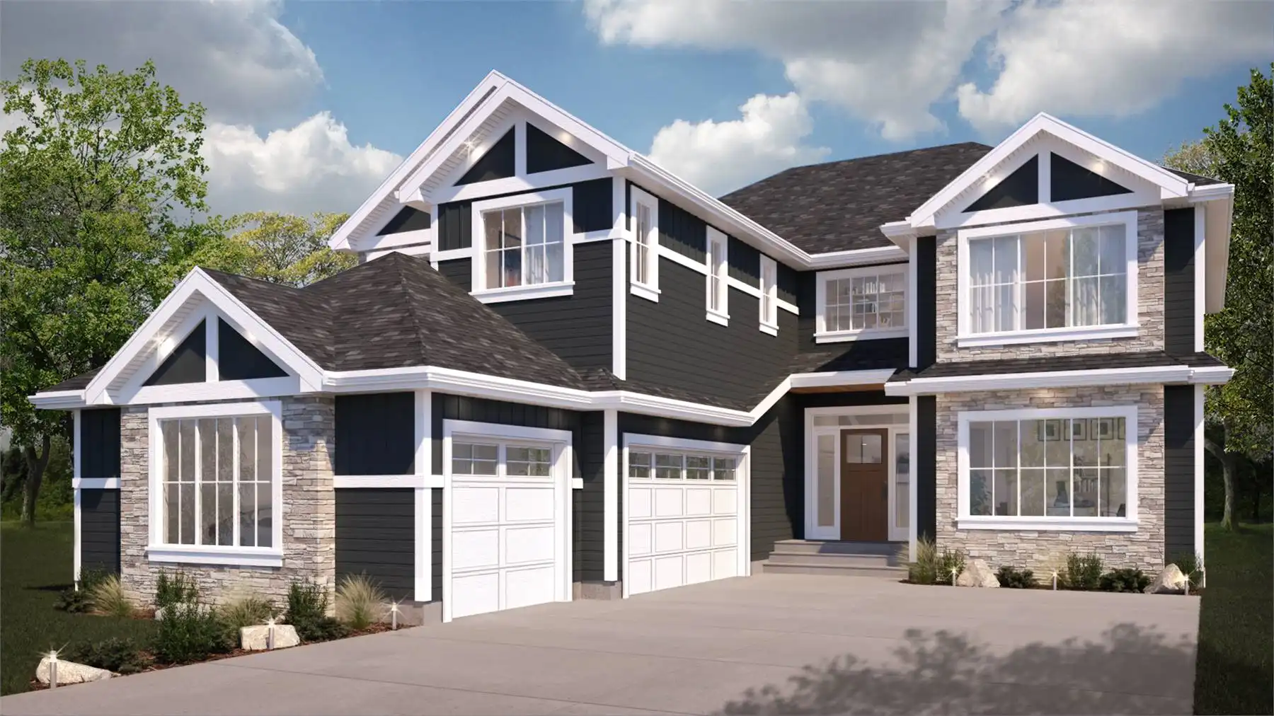 Designed with space and flexibility in mind, this home provides 3,885 square feet of heated living space across three levels with 5 bedrooms and 4.5 baths. The main living area features an open layout with vaulted ceilings, a fireplace-centered great room, and seamless connections to the dining space and kitchen. The kitchen is equipped with an island, peninsula eating bar, breakfast nook, walk-in pantry, and butler’s pantry, making it ideal for both casual meals and hosting. The upstairs primary suite serves as a private retreat with a walk-in closet and a bath offering a separate tub and shower and double vanity. A lower-level rec room and additional flex spaces create room for entertainment, fitness, or hobbies. Outdoor living is enhanced by covered porches, a deck, and an outdoor kitchen for year-round enjoyment. With a front-attached garage, second-floor laundry, and ample storage, this home balances function, comfort, and thoughtful design throughout.