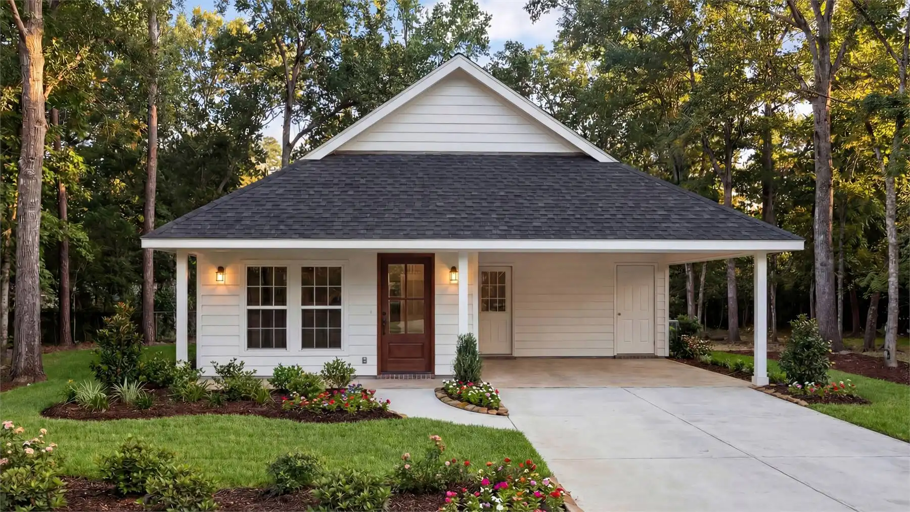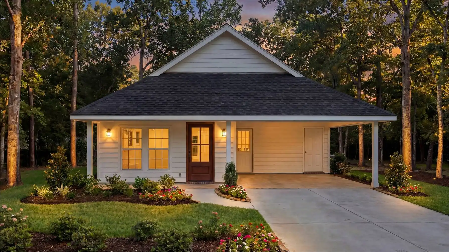 With 1200 heated square feet, this home provides a cozy and functional layout that supports family living. The open floor plan connects the main spaces, giving the interior a welcoming feel from the moment you enter. An L-shaped kitchen with a pantry keeps essentials organized and within easy reach. The primary bedroom on the main floor includes a walk-in closet, while the additional bedrooms offer flexibility for family, guests, or quiet work. First-floor laundry adds convenient everyday support, and extra storage areas help maintain a tidy home. Covered porches at the front and back extend the living space outdoors throughout the year. This charming layout offers a warm sense of comfort that fits naturally into daily routines.