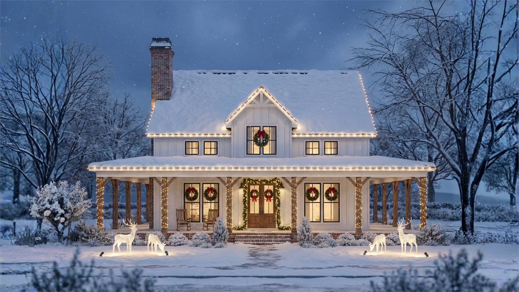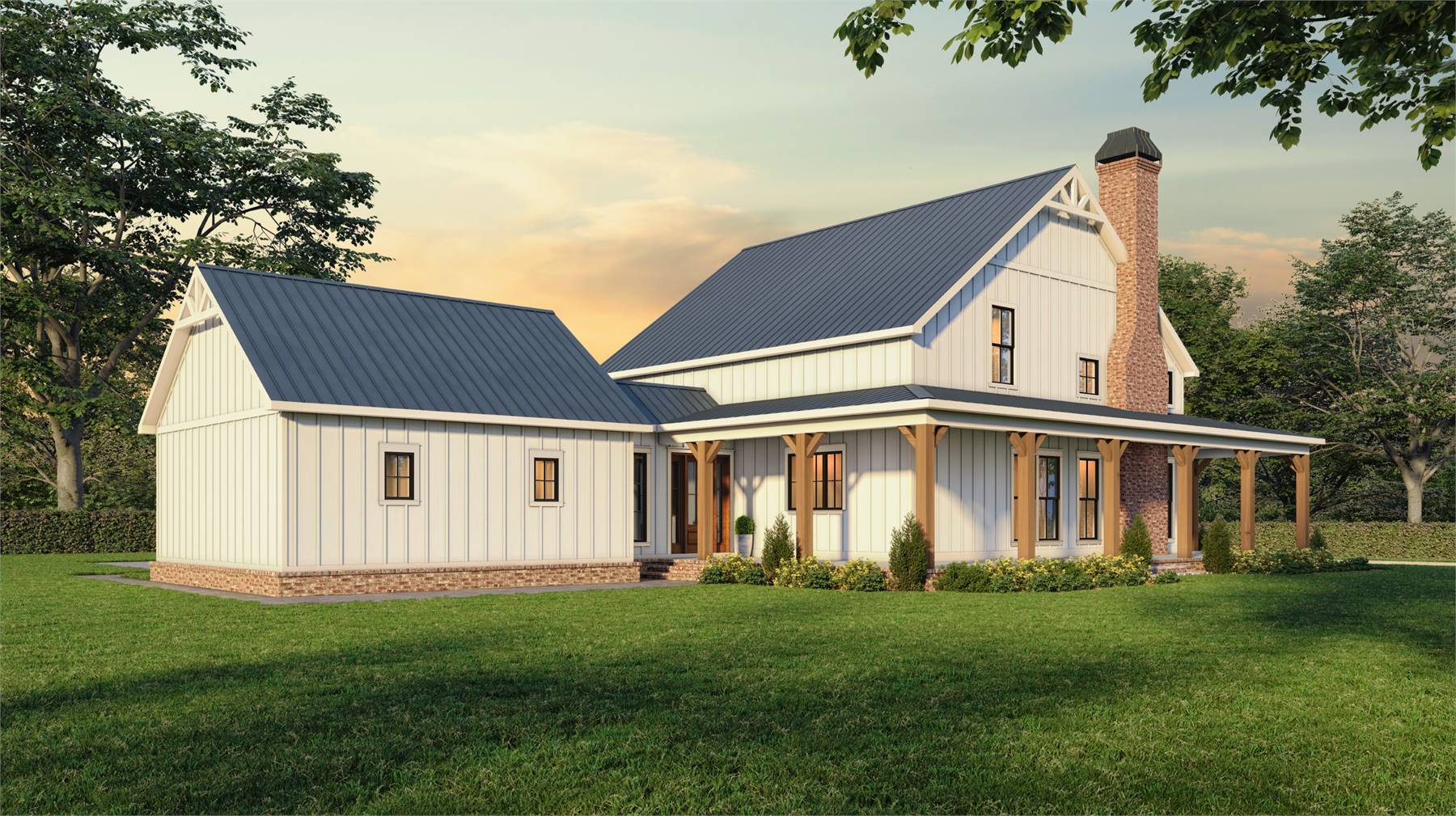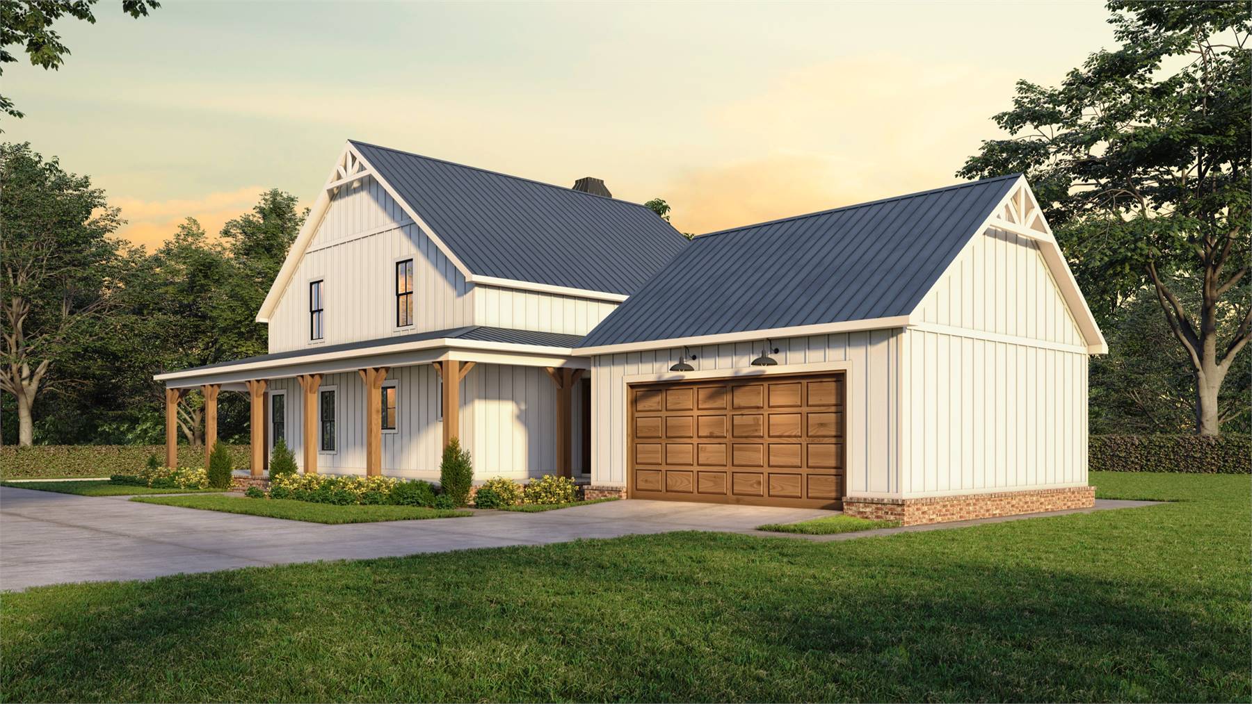 Designed for comfort and flexibility, this 2,585 square foot home blends open living with private retreats across two well-planned levels. The vaulted great room anchors the main floor, highlighted by a fireplace and seamless connection to the kitchen and dining areas. The kitchen is designed for both function and flow, offering an island, peninsula seating, and a butler’s pantry for added storage and prep space. The main-floor primary bedroom provides a peaceful escape with a spacious bath and walk-in closet. Upstairs bedrooms offer privacy and flexibility for family or guests while maintaining a natural connection to the main living spaces below. A wraparound porch and outdoor living area extend the home’s livability beyond the interior walls. With a rear, side-entry garage and an inviting layout, this plan balances everyday practicality with warm, welcoming design.