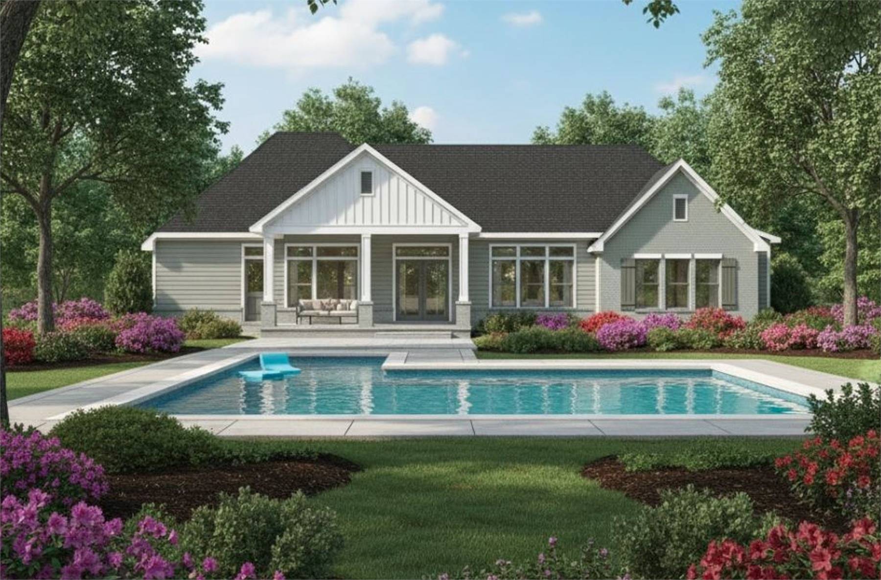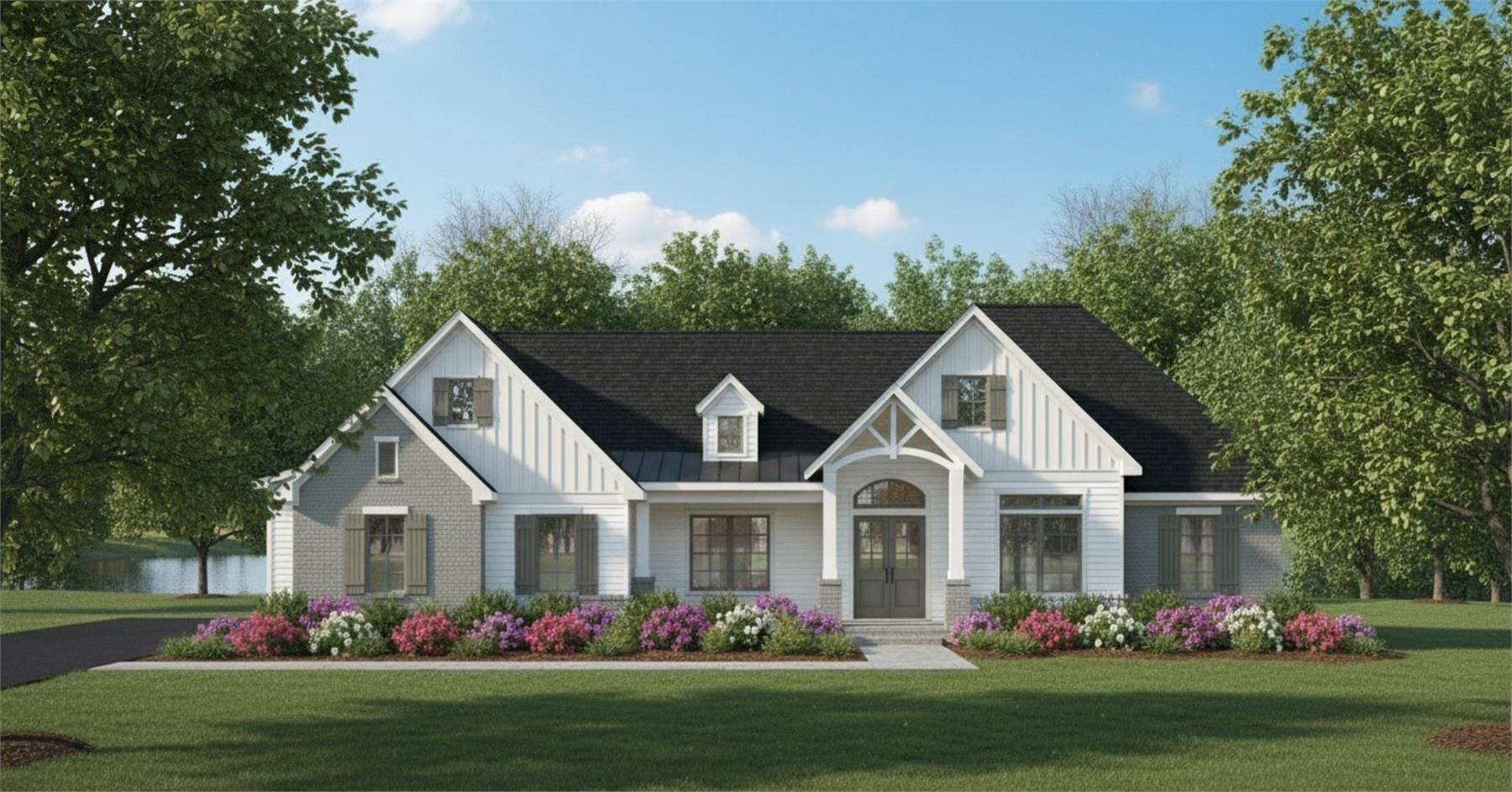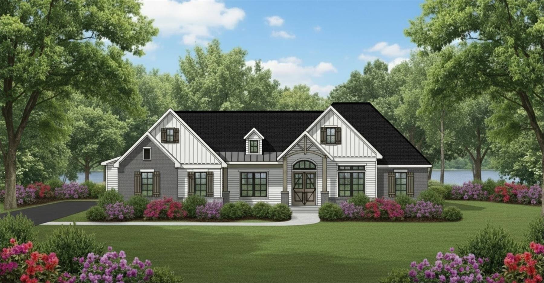 With 3,195 square feet of heated space, this thoughtfully designed home delivers generous room sizes and an inviting layout. The great room serves as the heart of the home, offering an open connection to the kitchen, dining area, and outdoor living spaces. The kitchen includes an L-shaped layout with an island, peninsula eating bar, walk-in pantry, and breakfast nook for casual meals. The main-floor primary suite provides a peaceful retreat with a spacious walk-in closet and a well-appointed bath featuring a separate tub and shower. Three additional bedrooms are arranged in a split layout to ensure comfort and privacy throughout the home. Practical features such as a home office, first-floor laundry, and an attached side-entry garage add everyday ease. Outdoor living is well-supported with covered porches, an outdoor kitchen, and plenty of space for entertaining or unwinding at home.