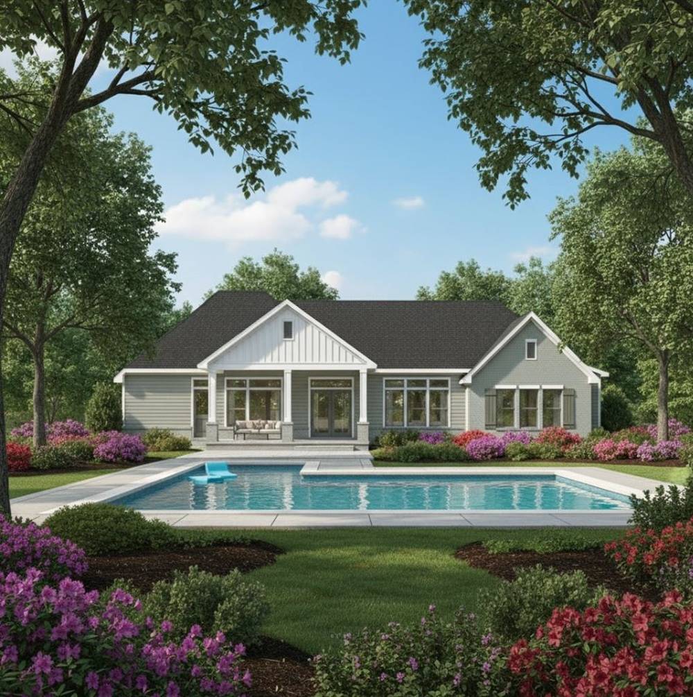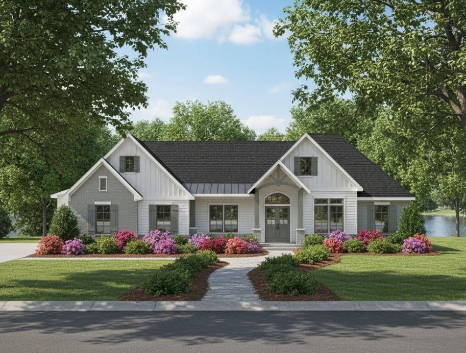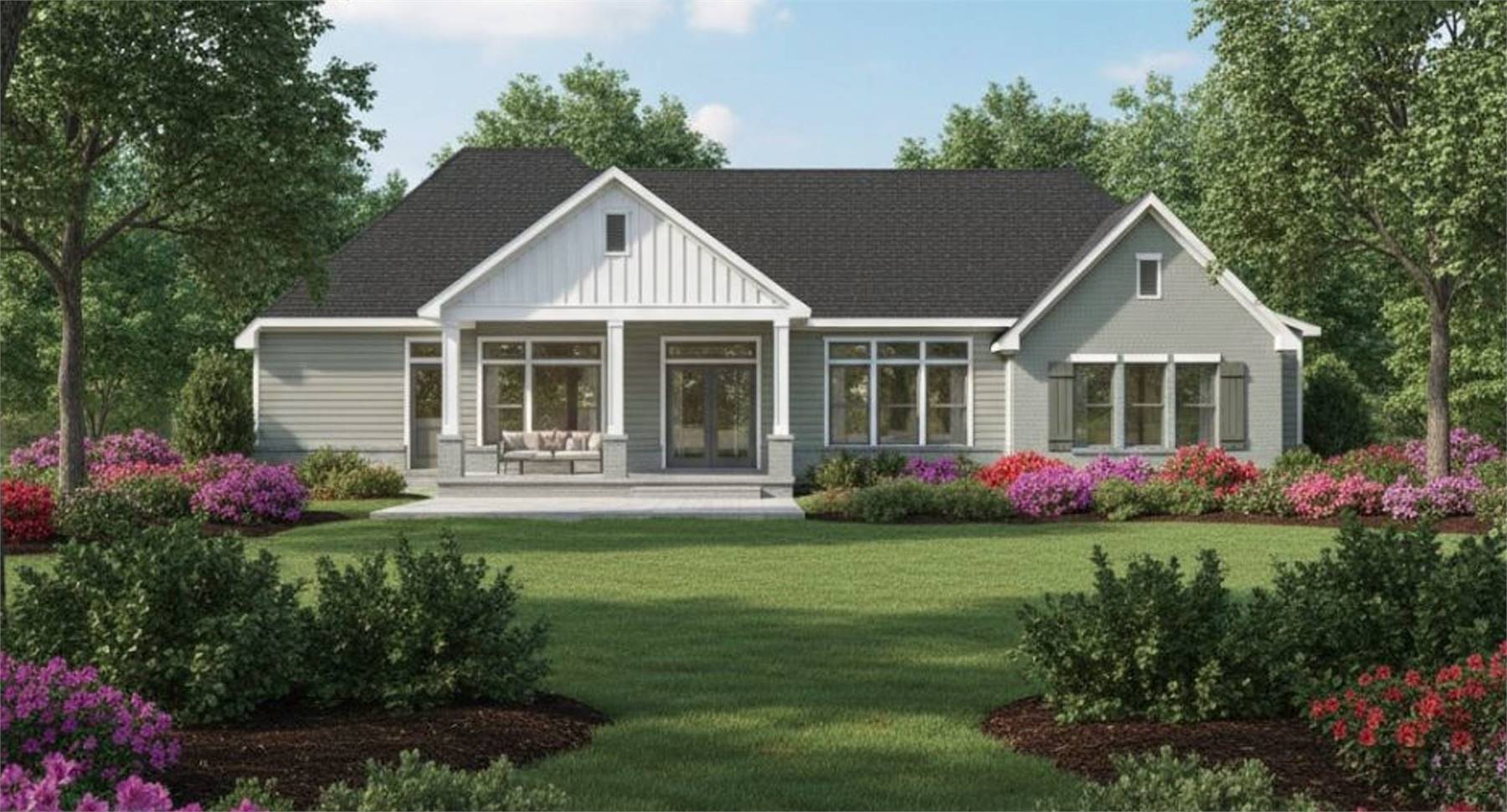 With 3,195 square feet of heated space, this thoughtfully designed home delivers generous room sizes and an inviting layout. The great room serves as the heart of the home, offering an open connection to the kitchen, dining area, and outdoor living spaces. The kitchen includes an L-shaped layout with an island, peninsula eating bar, walk-in pantry, and breakfast nook for casual meals. The main-floor primary suite provides a peaceful retreat with a spacious walk-in closet and a well-appointed bath featuring a separate tub and shower. Three additional bedrooms are arranged in a split layout to ensure comfort and privacy throughout the home. Practical features such as a home office, first-floor laundry, and an attached side-entry garage add everyday ease. Outdoor living is well-supported with covered porches, an outdoor kitchen, and plenty of space for entertaining or unwinding at home.
