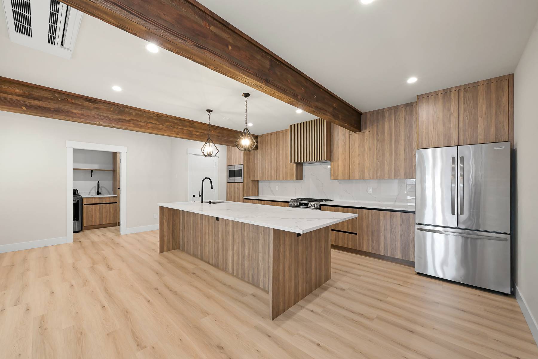 House Plan 12138 delivers classic modern farmhouse style with a smart layout built for comfort, flow, and flexibility. The welcoming stone and wood exterior opens to an inviting foyer with a front den that is ideal for working from home or creating a quiet sitting space. The vaulted great room anchors the main living area and connects naturally to the dining space and a U-shaped kitchen with a central island and walk-in pantry. The main floor primary suite is privately positioned on the left side of the home and features an ensuite bathroom and walk-in closet. On the second level, three bedrooms share a spacious full bathroom, while a bonus room and storage area provide room to grow, gather, and personalize. With 4,011 square feet and a three car garage, this two story design offers generous space wrapped in timeless farmhouse charm.