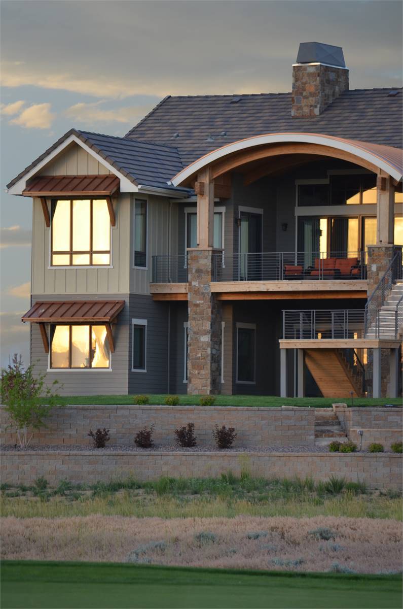 Designed for comfort and sophistication, this 5159 square feet home plan features 4 bedrooms and 3.5 baths arranged across a thoughtfully designed two story layout. The open floor plan connects the great room, dining room, and kitchen to create a bright and inviting central living space anchored by a fireplace. The well-appointed L-shaped kitchen includes a central island, peninsula eating bar, and walk-in pantry for added function and convenience. The main level primary suite serves as a private haven with a sitting area, spacious walk-in closet, double vanity sink, and separate tub and shower. Upstairs, secondary bedrooms and a loft offer privacy and flexibility for family living. A library or media room provides an ideal space for work or entertainment, while a wine cellar adds a refined touch. Unfinished areas and abundant storage allow for customization over time. With covered porches, a deck, and a generous courtyard entry 4 car garage, this home blends luxury details with everyday practicality.