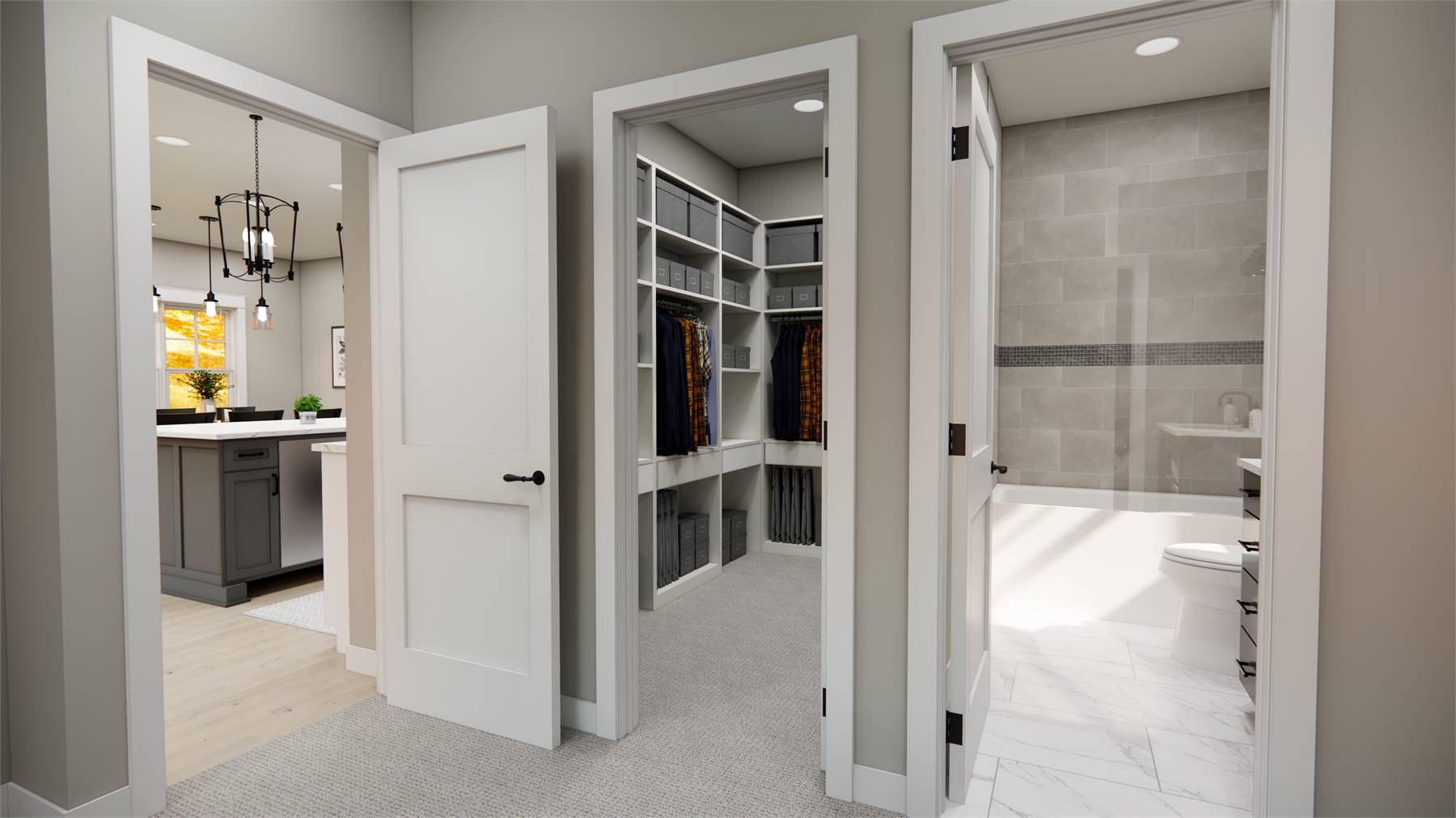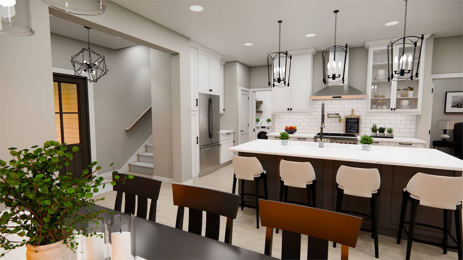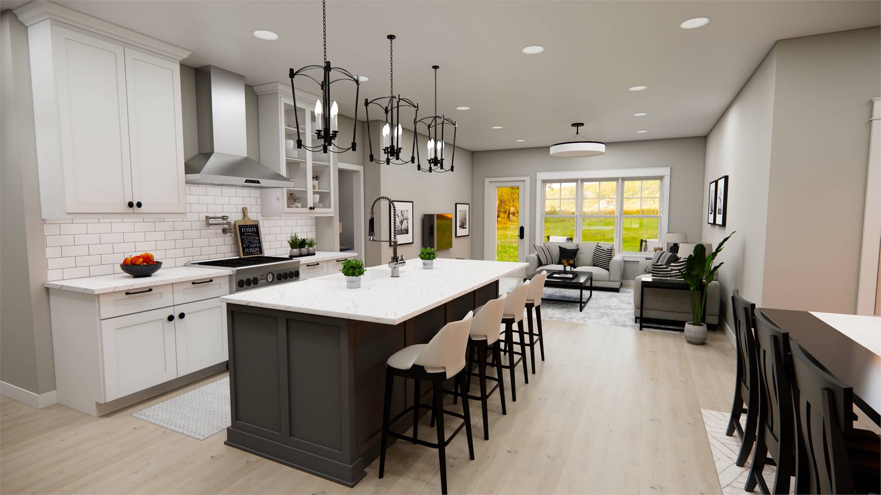 With 2,060 square feet of heated living space, this home delivers a comfortable layout suited for modern lifestyles. The main level centers around an open-concept family room, dining area, and kitchen, making everyday living feel connected and effortless. The kitchen includes an island and peninsula, providing ample workspace and casual seating options. A main-floor primary bedroom offers a quiet retreat with easy access to shared living areas. Upstairs, multiple bedrooms and a loft create adaptable spaces for family, guests, or hobbies. Vaulted ceilings add volume and architectural interest throughout the home. A front-entry attached two-car garage provides convenient access and additional storage without disrupting the flow of the interior.