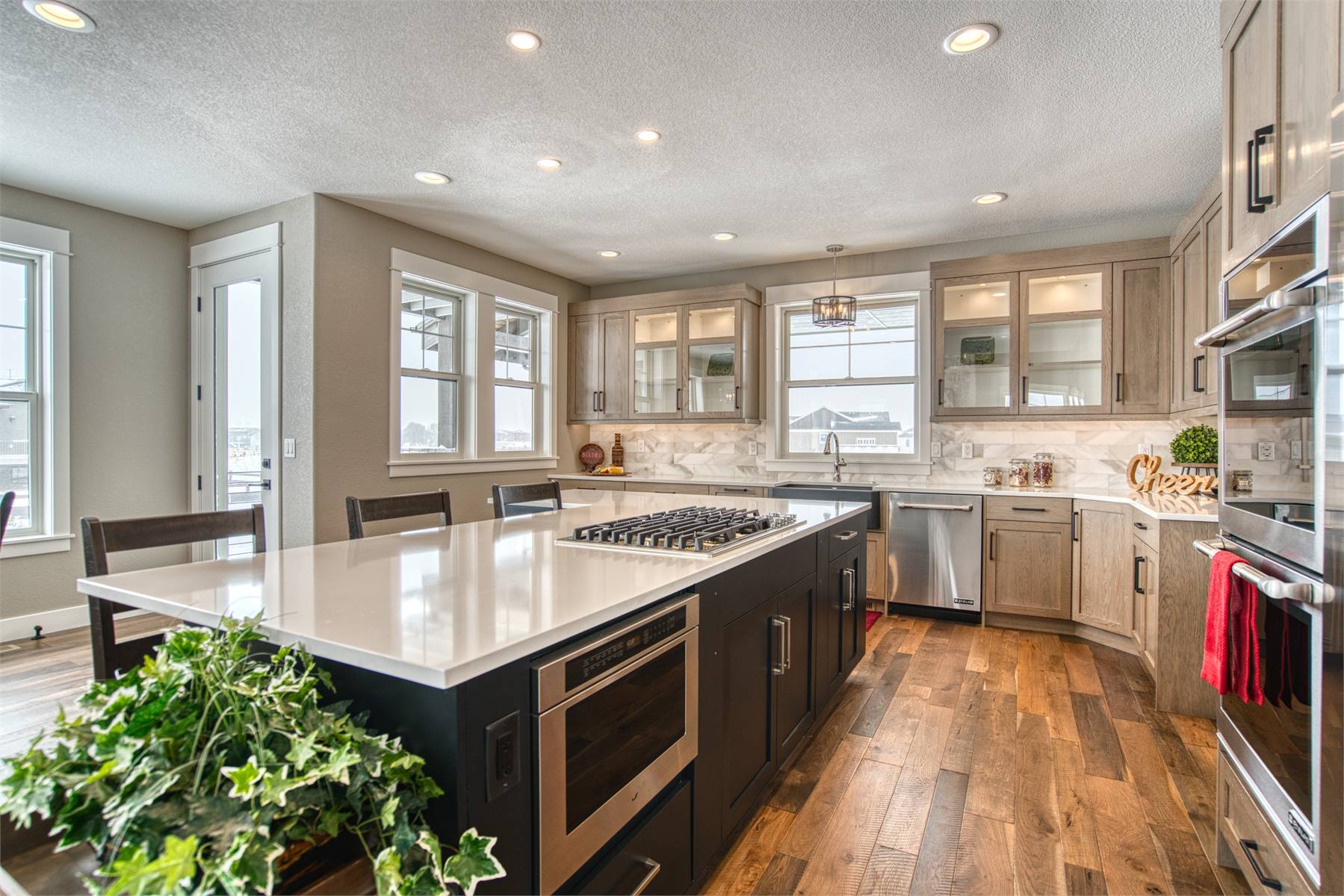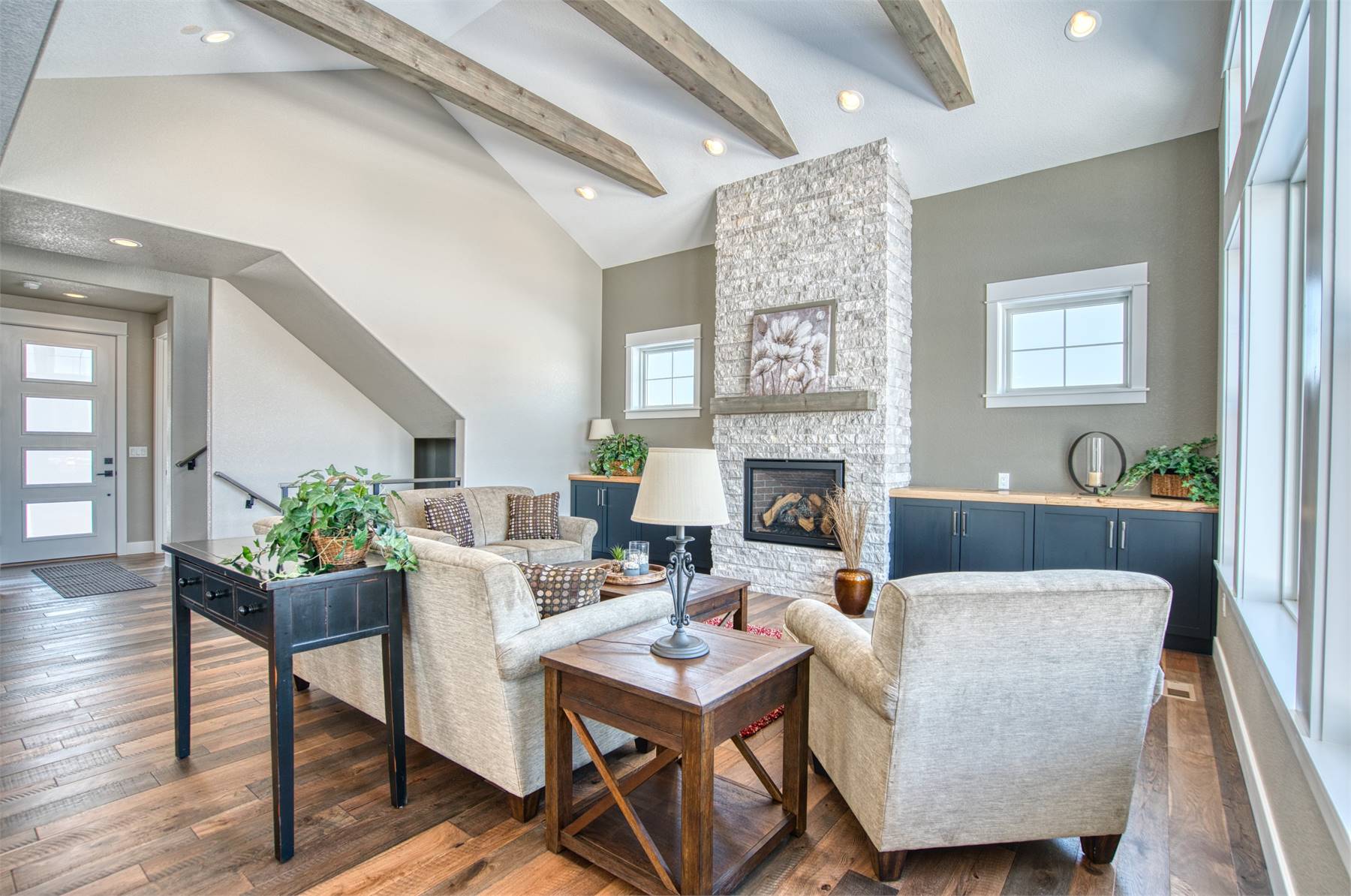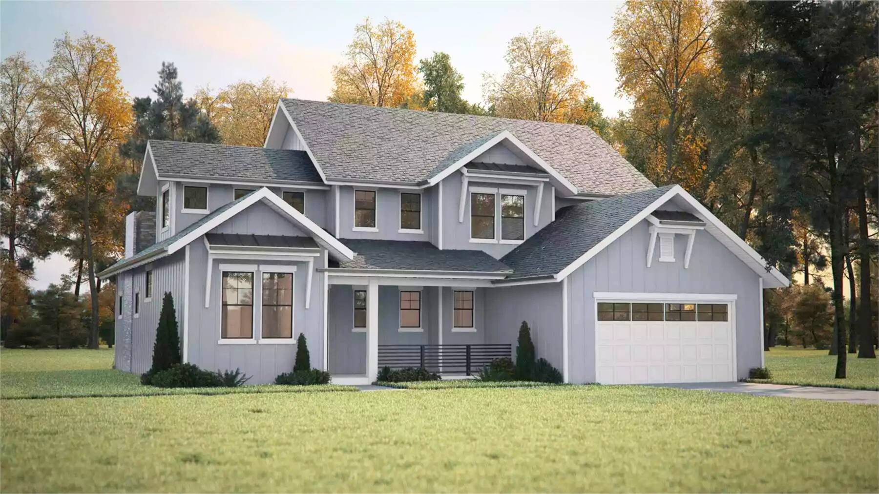 Designed with space and flexibility in mind, this 2726 square feet home plan features 4 bedrooms and 2.5 baths across 2 thoughtfully arranged levels. The main floor offers a bright open floor plan where the family room fireplace creates a warm focal point and connects naturally to the dining room and kitchen. A well-appointed U-shaped kitchen with a central island, peninsula eating bar, and walk-in pantry makes cooking and entertaining feel effortless. Just off the foyer, a formal living room adds versatility for hosting guests or creating a quiet sitting area. Upstairs, the primary suite provides privacy and comfort with a spacious walk-in closet, double vanity sink, and separate tub and shower. Three additional bedrooms and a generous loft offer flexible space for family living, study areas, or relaxation. The lower level rec room adds even more room to spread out, while the unfinished basement offers storage or future expansion opportunities. Complete with covered front and rear porches, inviting outdoor living space, first-floor laundry, mud room, and a 3 car attached front-entry garage, this home is built to grow with you and welcome you home every day.