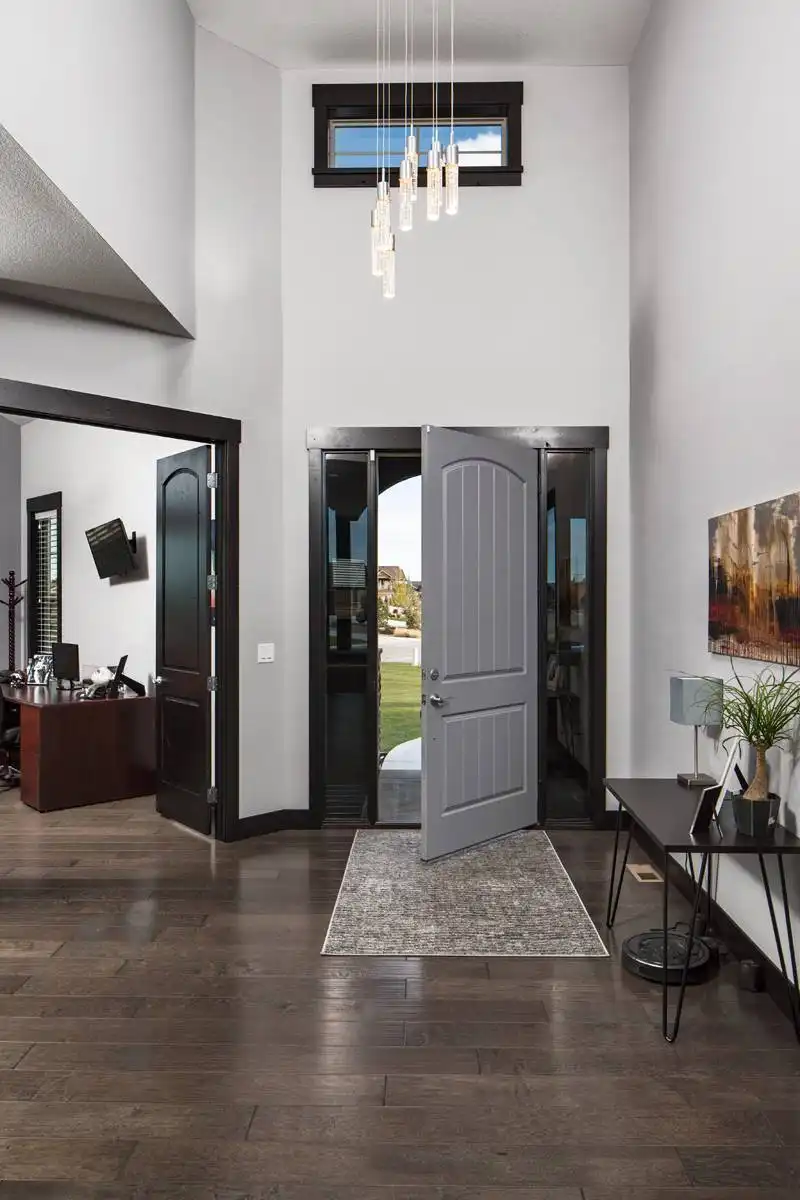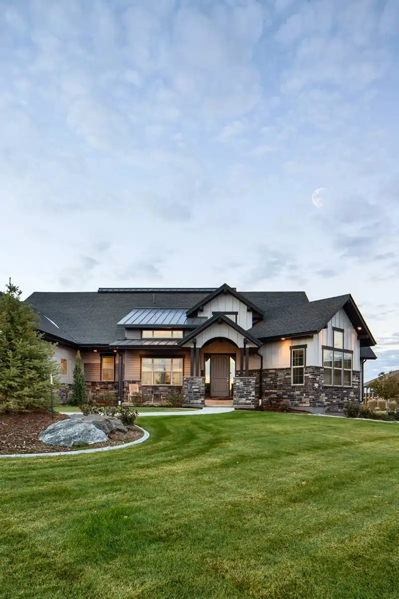 Designed for both entertaining and everyday ease, this 2767 square feet home plan features 2 bedrooms and 2.5 baths in a wide, open layout. The great room welcomes you with soaring ceilings and a cozy fireplace, connecting naturally to the dining room and well-appointed kitchen. A U-shaped kitchen with a central island and walk-in pantry keeps everything within reach while maintaining a clean, efficient workspace. The main level primary suite offers privacy and comfort with a walk-in closet and double vanity sink, positioned away from the secondary bedroom for a true split bedroom design. A private home office and convenient first-floor laundry make daily routines feel effortless. Downstairs, a rec room expands your living options, while a large unfinished basement area provides exceptional storage or future finishing potential. Step outside to enjoy the covered front porch, rear porch, and deck that extend your living space into the outdoors. With an attached 4 car front-entry garage and thoughtfully designed mud room, this home blends spacious living with everyday practicality in a way that feels both welcoming and refined.