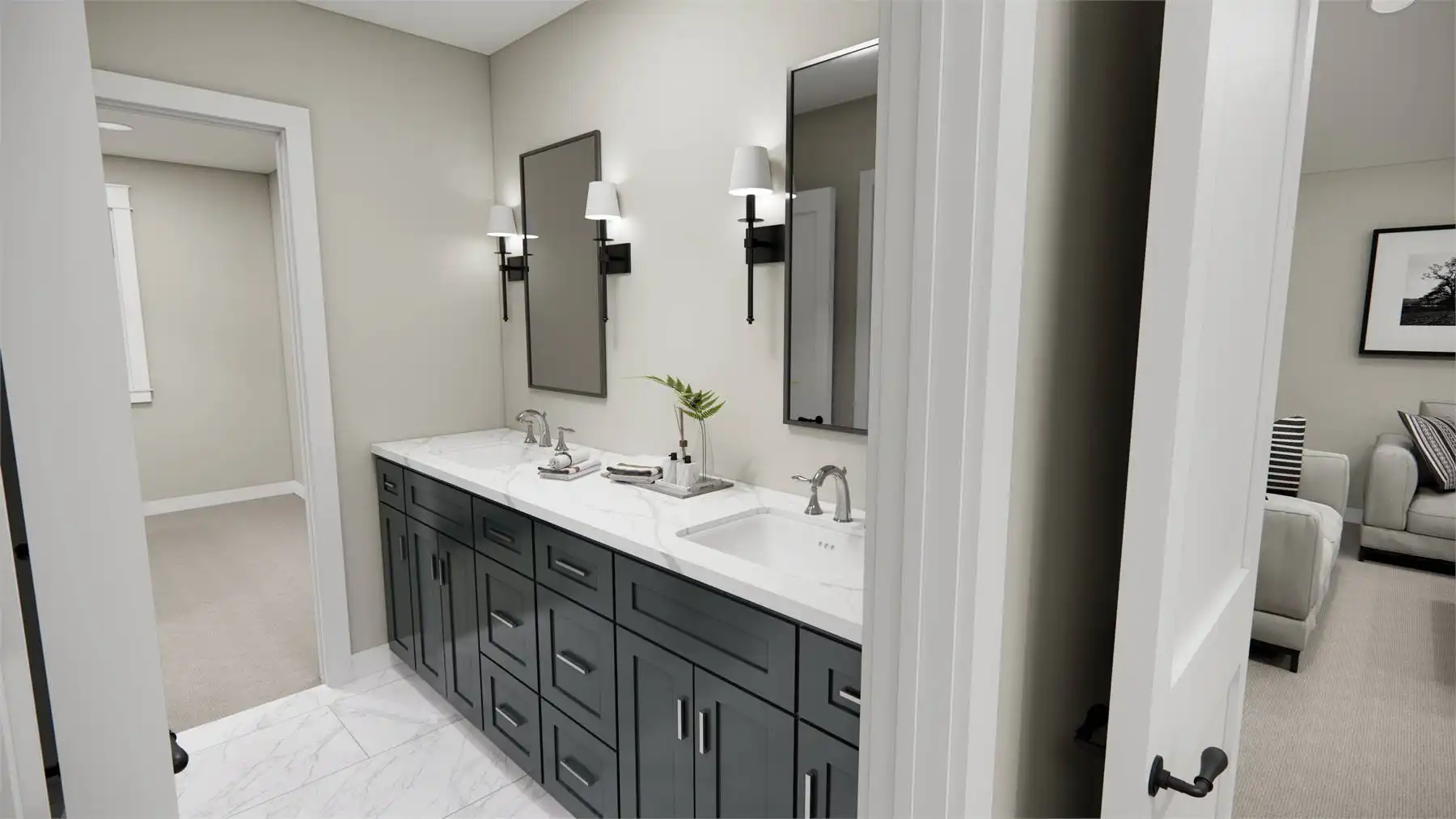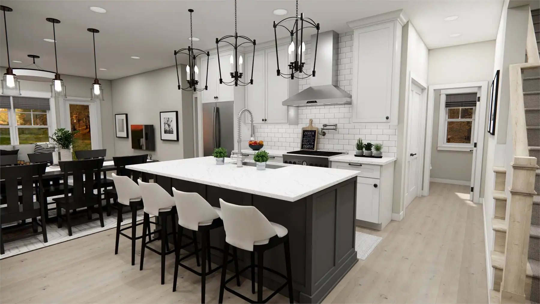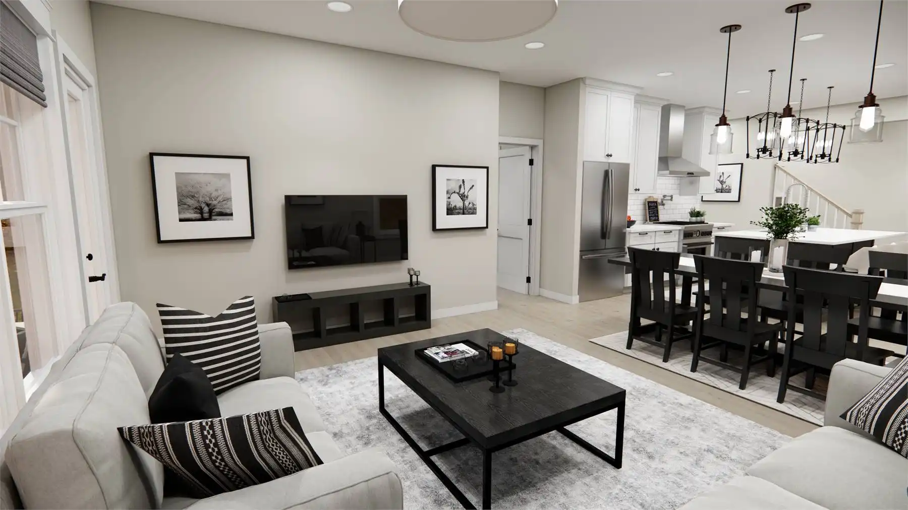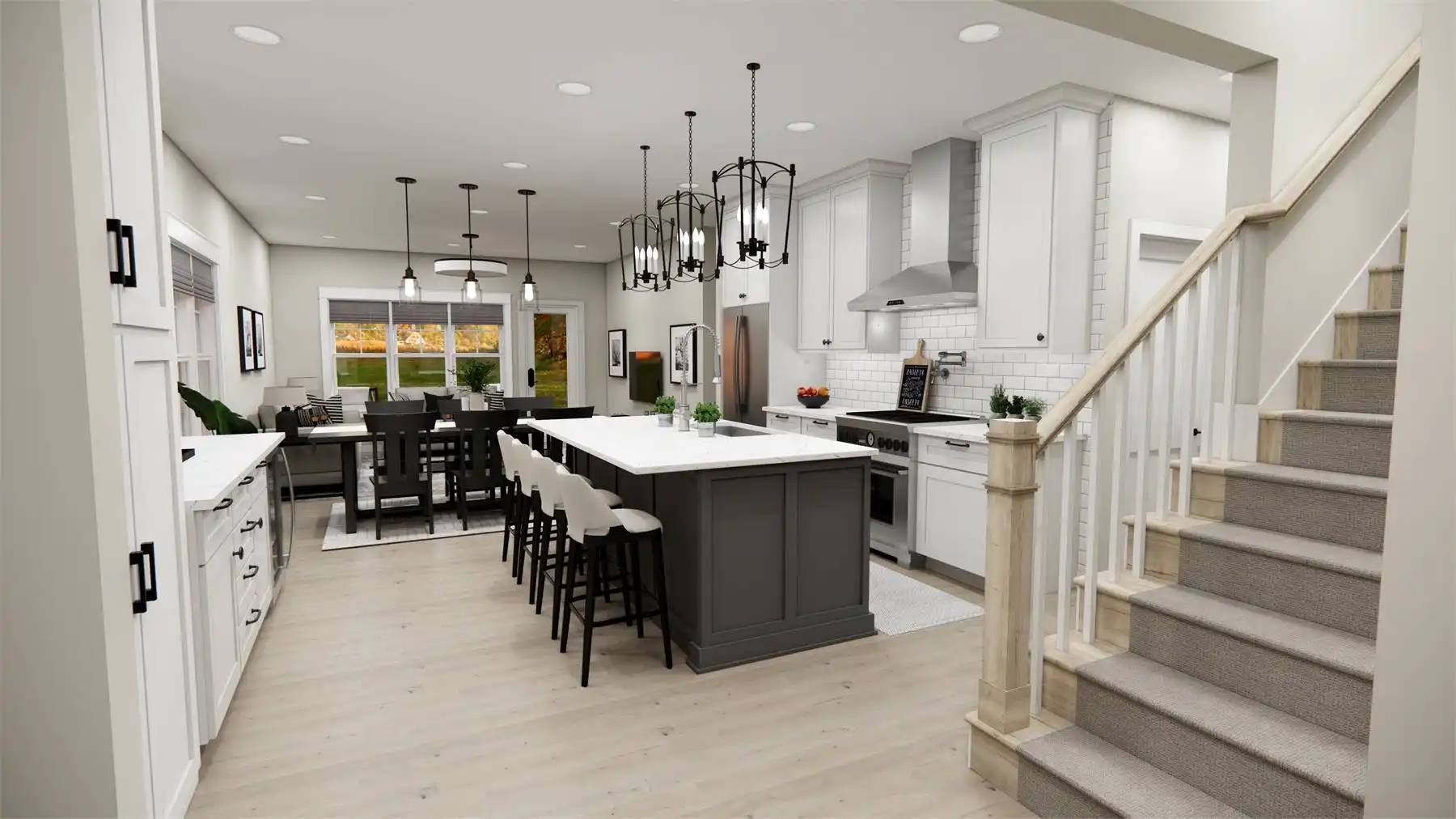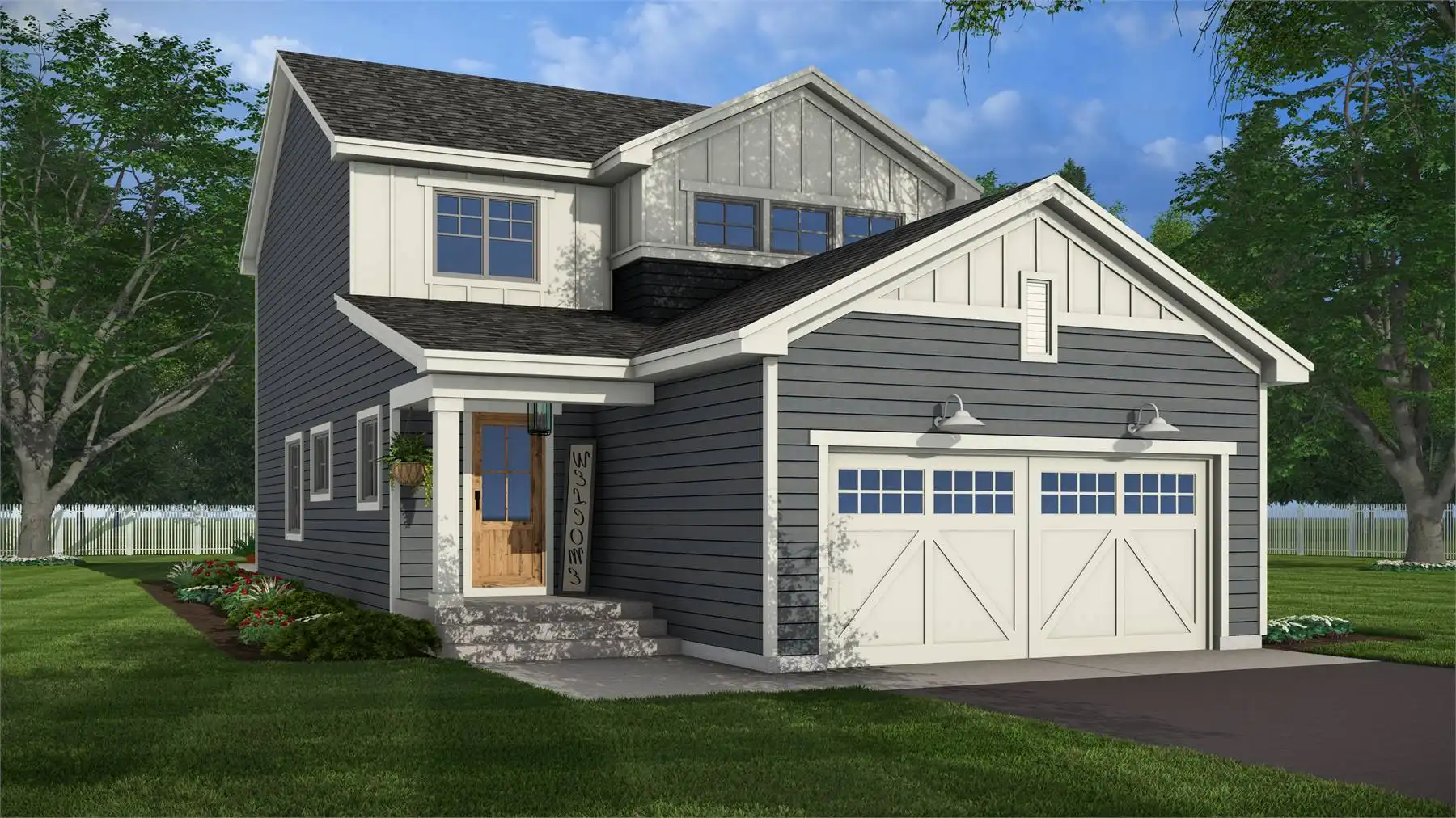 Designed with efficiency and comfort in mind, this 1,978 square foot home makes excellent use of its two-story layout. The main level centers around an open floor plan that blends the family room and kitchen for seamless daily living. The kitchen includes a peninsula and island, offering generous prep space and informal dining options. A main-floor primary bedroom provides privacy and ease of access to shared spaces. Upstairs, multiple bedrooms and a loft offer flexible living areas that can adapt to changing needs. Vaulted ceilings add architectural interest and help the home feel bright and spacious. An attached front-entry two-car garage ensures convenient access and additional storage.