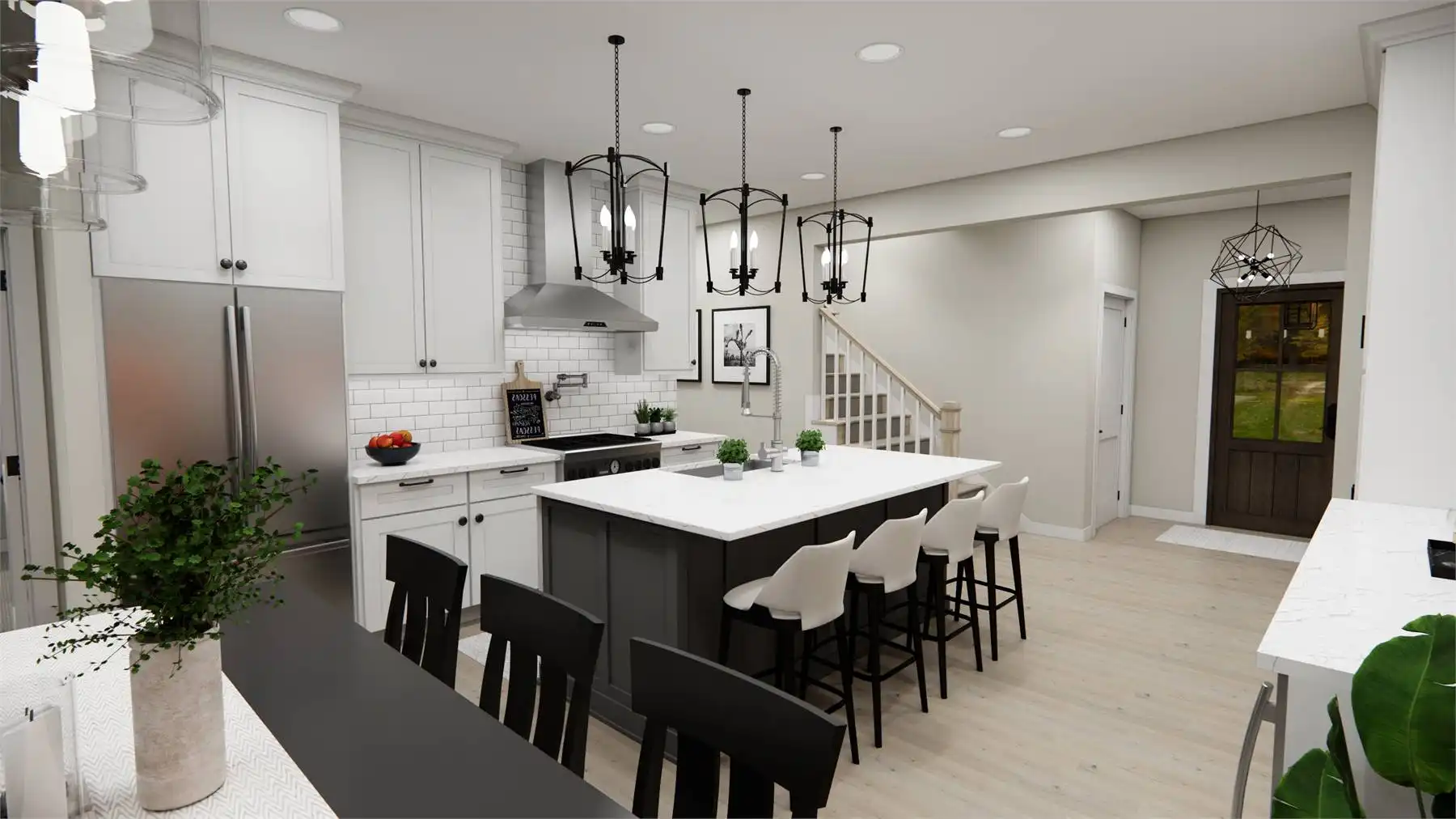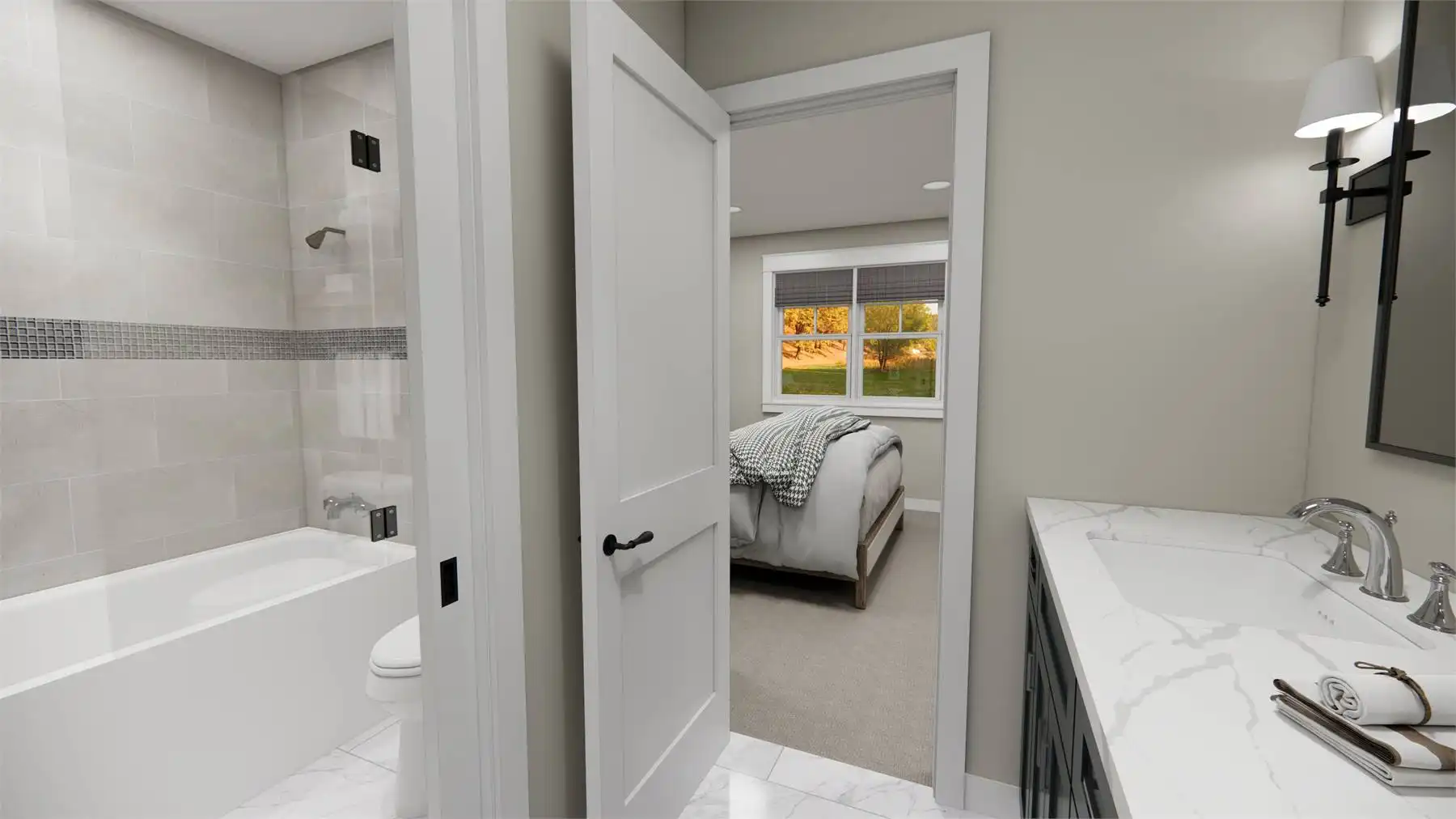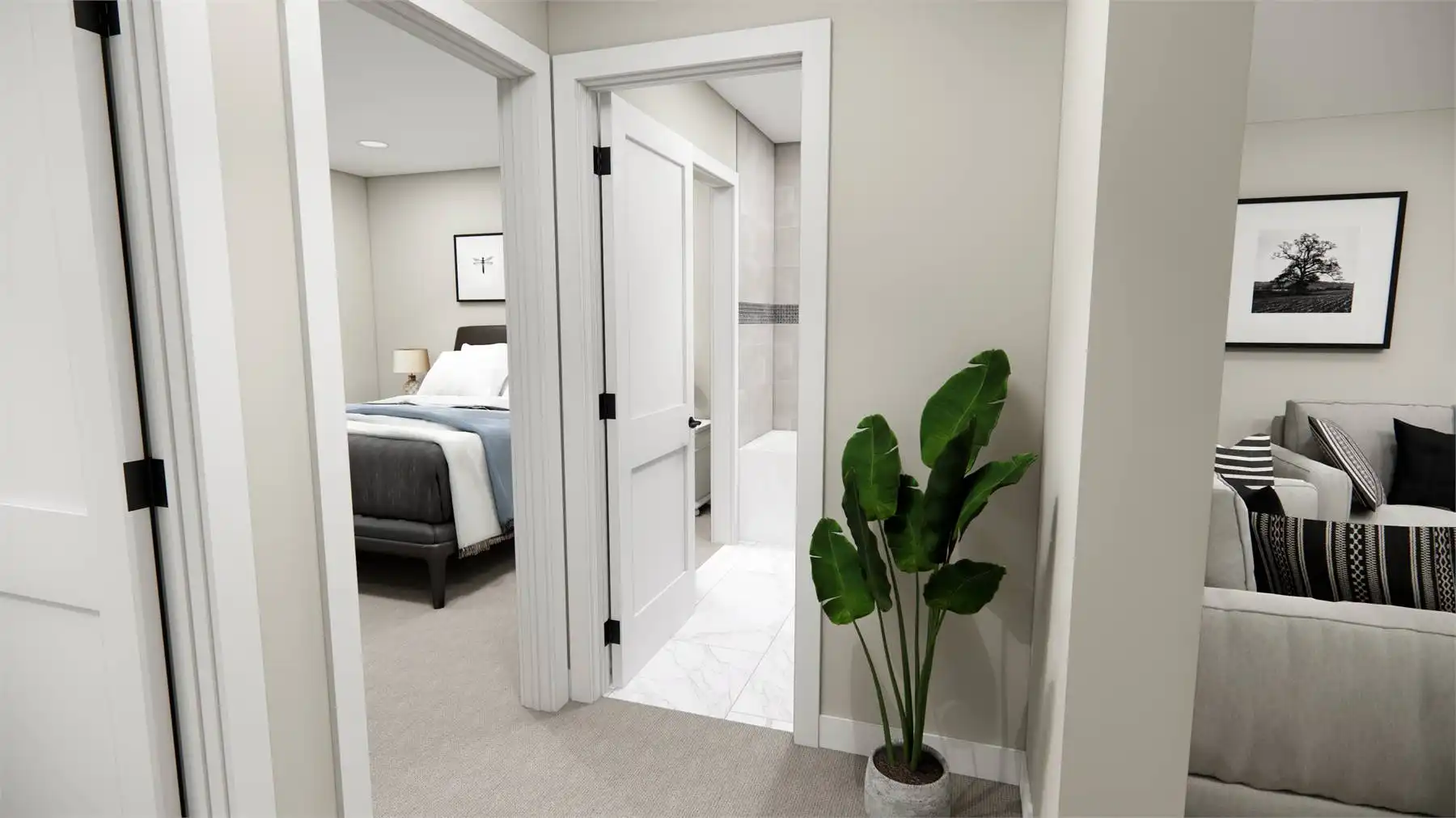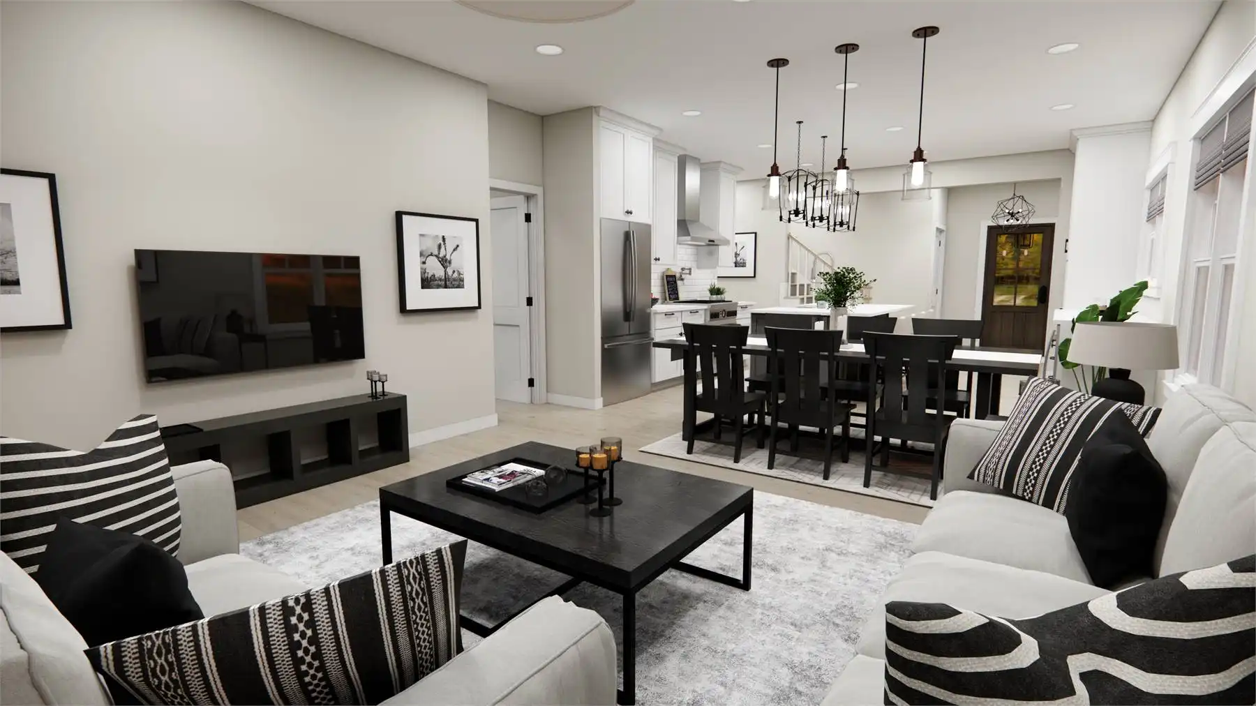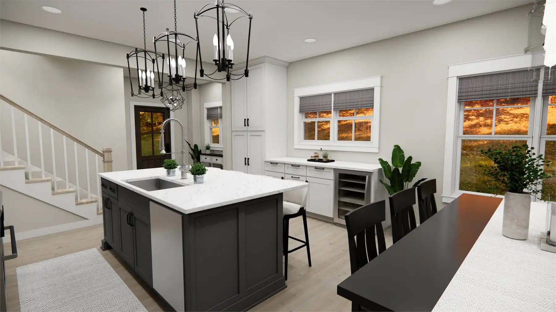 Designed with efficiency and comfort in mind, this 1,978 square foot home makes excellent use of its two-story layout. The main level centers around an open floor plan that blends the family room and kitchen for seamless daily living. The kitchen includes a peninsula and island, offering generous prep space and informal dining options. A main-floor primary bedroom provides privacy and ease of access to shared spaces. Upstairs, multiple bedrooms and a loft offer flexible living areas that can adapt to changing needs. Vaulted ceilings add architectural interest and help the home feel bright and spacious. An attached front-entry two-car garage ensures convenient access and additional storage.