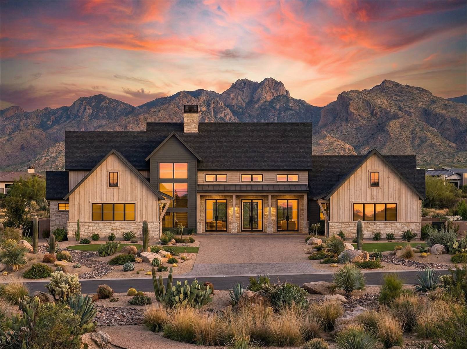 House Plan 12160 delivers a bold Contemporary Hill Country design with nearly 5,000 square feet of living space, four bedrooms, four full bathrooms, one half bath, and a spacious four-car courtyard garage that balances dramatic architecture with everyday livability. The vaulted main living area anchors the open layout, connecting the great room, dining space, and chef-inspired kitchen with built-in breakfast seating, a walk-in pantry, and an adjacent wet bar. A vaulted home office, game or rec room, and flexible loft provide spaces for work, play, and relaxation, while the private main-level primary suite and well-placed secondary bedrooms offer comfort and separation. Generous covered porches wrap the home in outdoor living opportunities, making this plan ideal for scenic settings and year-round entertaining.