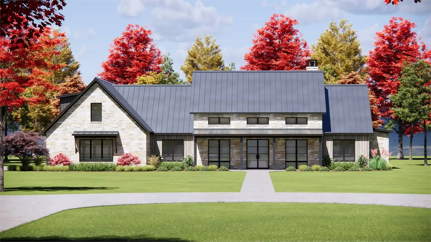 With 3,606 square feet of heated living space, this expansive home plan is designed for comfortable family living and effortless entertaining. The main level showcases an open layout with a welcoming family room, fireplace, and seamless flow into the kitchen and breakfast area. The kitchen is well equipped with a large island, eating nook, walk-in pantry, and butler’s pantry for added storage and prep space. A main-floor primary suite provides a private retreat with vaulted ceilings, a spa-inspired bath, and generous closet space. Additional bedrooms, a bonus room, and unfinished space allow room to grow and adapt over time. Front and rear covered porches complete the design, offering relaxing outdoor spaces that enhance the home’s warm and inviting appeal.