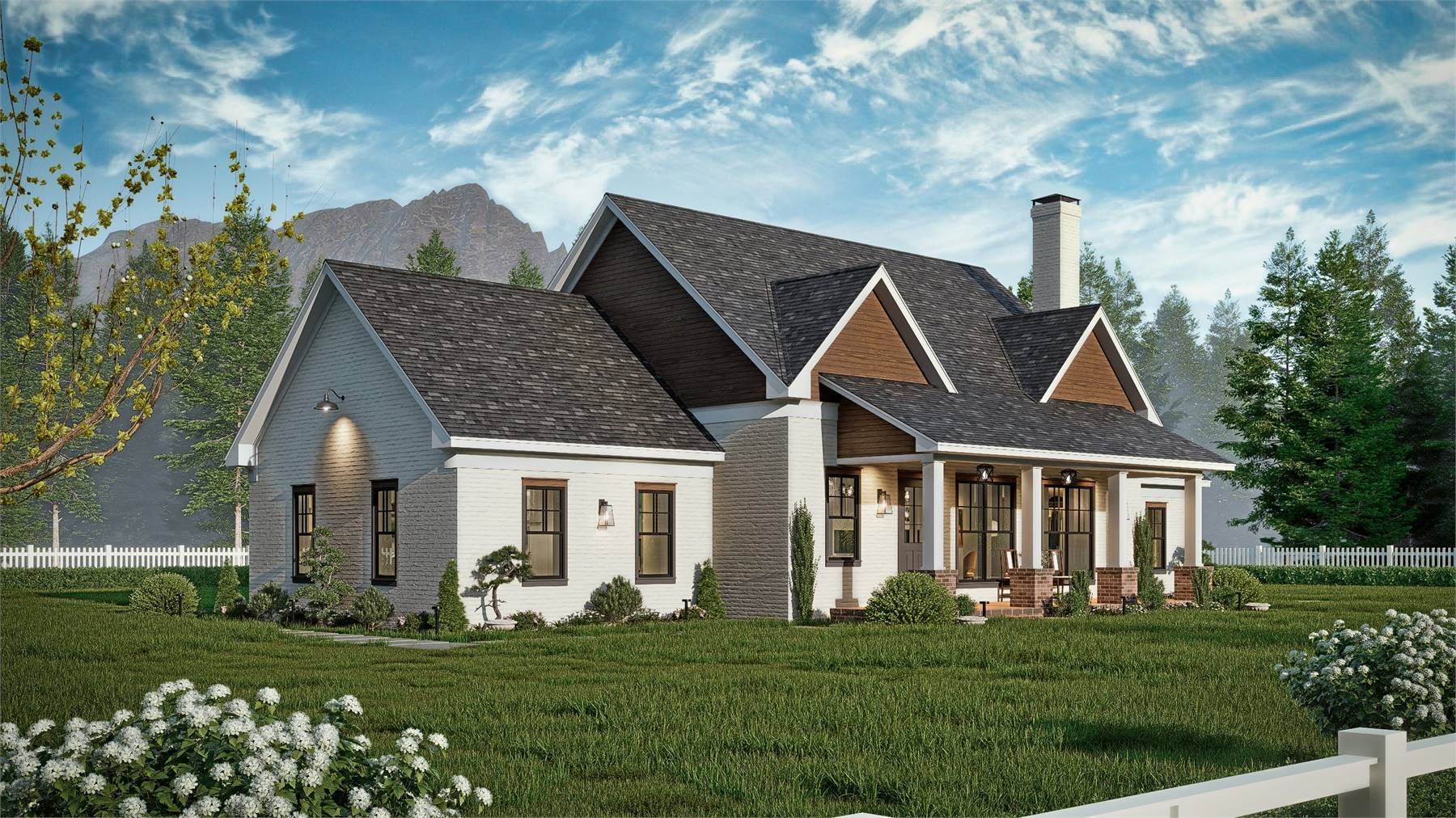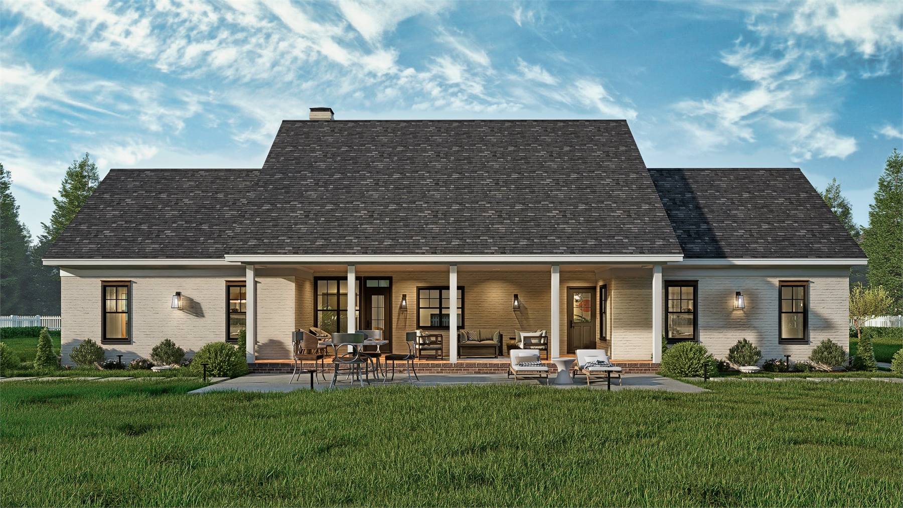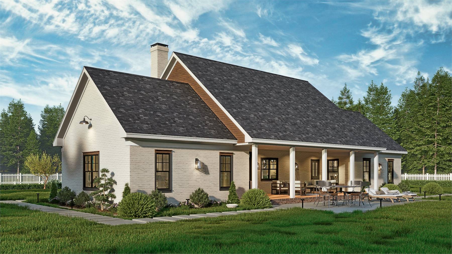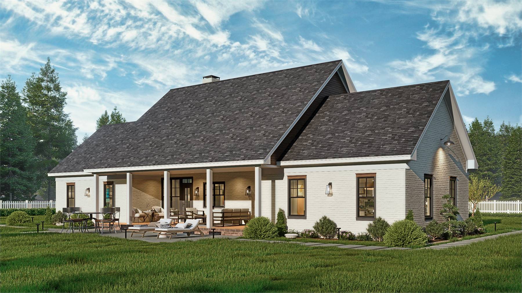 House Plan 12189 offers a well balanced one story layout designed for comfort, privacy, and easy flow throughout the home. A wide covered front porch welcomes you inside, where a foyer opens into a bright open concept living area with a fireplace at its heart. The living room connects effortlessly to the dining space and kitchen, making this plan ideal for both daily routines and entertaining. The kitchen is centered around a large island and includes a walk in pantry to keep everything organized and within reach. The primary suite is privately positioned and features a spacious bedroom, a large walk in closet, and a full ensuite bathroom. Two additional bedrooms are located on the opposite side of the home and each includes a walk in closet. They share a thoughtfully designed Jack and Jill bathroom with separate toilet rooms and a shared dual sink vanity and shower, adding both privacy and efficiency. A generous covered rear porch creates a natural extension of the living space and offers the perfect spot to unwind or host guests. With 1,682 square feet, three bedrooms, two and a half bathrooms, and a single level design without a garage, this plan delivers practical living with a relaxed, welcoming feel.