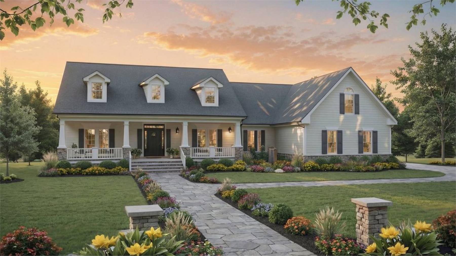 With 2,678 square feet of heated living space, this thoughtfully designed home blends spacious living with versatile rooms throughout. The vaulted great room creates an open and airy centerpiece, connecting seamlessly to the kitchen and breakfast area for easy entertaining. The kitchen is well planned with a peninsula eating bar, pantry, and walk-in pantry that support both daily use and larger gatherings. The primary bedroom is located on the main floor and features a vaulted ceiling, sitting area, and separate his and hers closets for added comfort. Additional bedrooms are split from the primary suite, offering privacy for family or guests. A bonus room, recreation room, and unfinished storage space allow the home to grow with your needs, while covered porches add warmth and everyday livability.