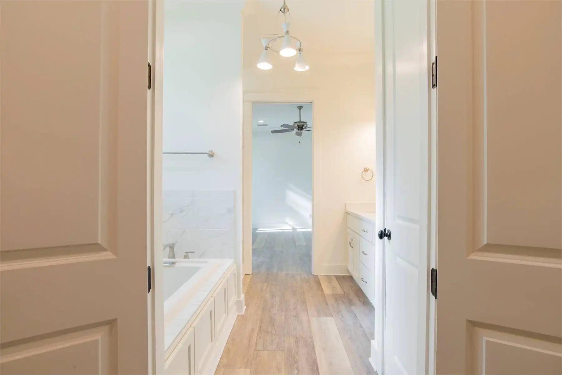 With 2184 square feet of heated space, this 4 bedroom, 2.5 bath home delivers a smart layout designed to maximize comfort and style. The main level features an open great room with fireplace that flows naturally into the dining room and kitchen for effortless gatherings. The kitchen is equipped with an island, peninsula seating, and a walk-in pantry, offering both efficiency and room to spread out. A main-level primary suite provides a private escape with a spacious walk-in closet and a well-appointed bath complete with separate tub and shower. Additional bedrooms are thoughtfully split to enhance flexibility for family or guests. The second-floor loft adds valuable bonus living space without sacrificing bedroom count. Covered porches and a rear-entry garage complete a home that feels welcoming, functional, and ready for everyday life.
