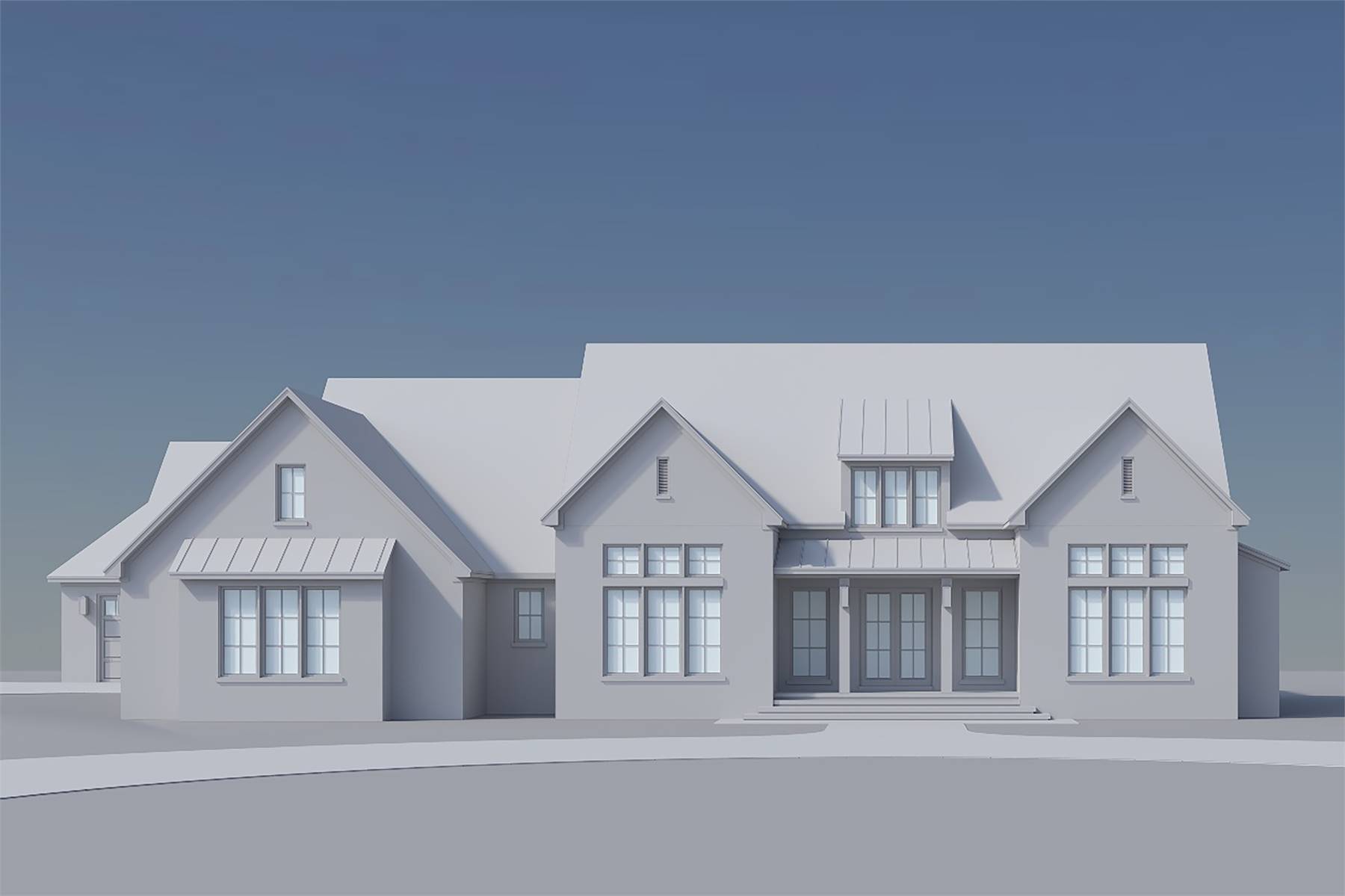 Designed to impress while remaining warm and functional, this 3250 square feet home plan features 4 bedrooms and 3.5 baths in a thoughtfully arranged single level layout. The foyer opens to a grand great room highlighted by a fireplace and soaring ceilings that create an airy, light-filled atmosphere. The open floor plan connects to a well-appointed U-shaped kitchen complete with a central island, peninsula eating bar, and generous walk-in pantry. The main level primary suite offers a vaulted ceiling, spacious walk-in closet, double vanity sink, and a separate tub and shower for added comfort. Three additional bedrooms are arranged in a split layout to provide privacy without sacrificing convenience. A dedicated dining room adds elegance for special occasions, while the mud room and first-floor laundry keep daily routines organized. Step outside to enjoy the covered front porch, expansive rear porch, and outdoor kitchen that extend your living space beautifully. With a 3 car attached garage and impressive ceiling details throughout, this home blends spacious design with everyday livability in a way that truly feels like home.