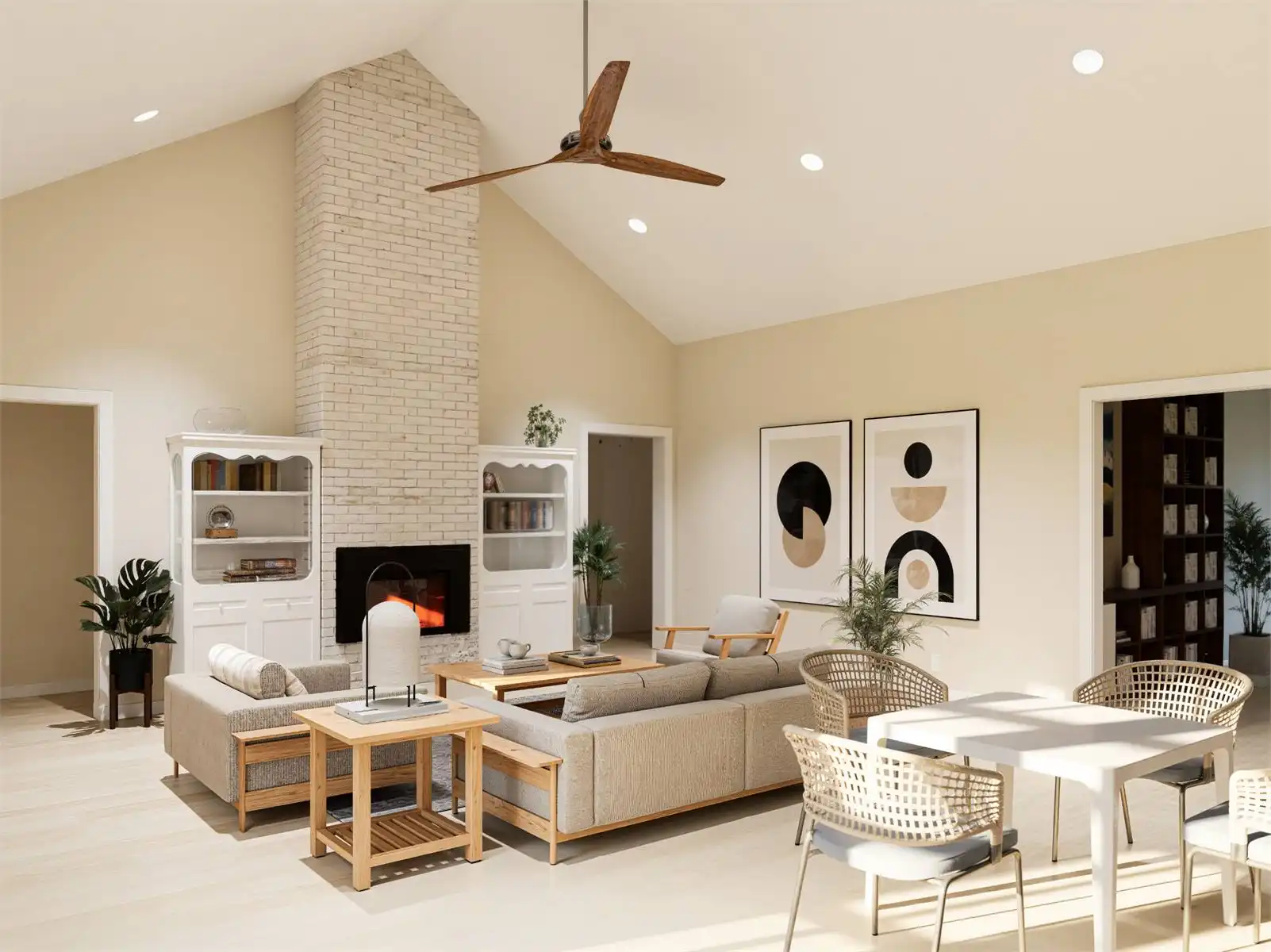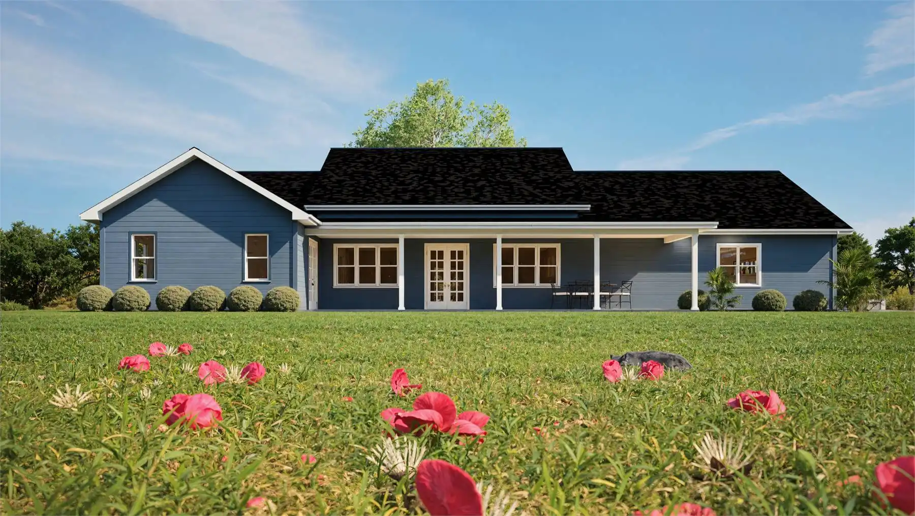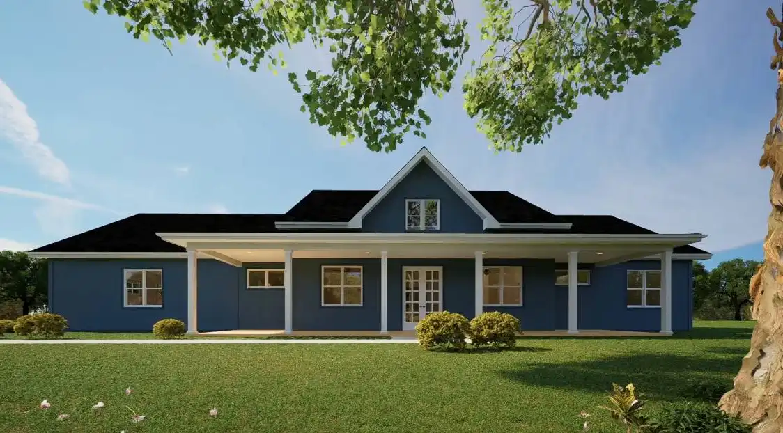 Designed for modern living, this 2385 square feet single story home plan includes 3 bedrooms and 3.5 baths arranged within an open and inviting layout. A soaring vaulted ceiling defines the great room, where a fireplace anchors the main gathering space and connects effortlessly to the dining room and kitchen. The U-shaped kitchen is equipped with a central island, peninsula eating bar, and butlers pantry to support both everyday meals and special occasions. The main level primary suite provides privacy and comfort with a spacious walk-in closet, dual vanities, and a separate tub and shower. Secondary bedrooms are well positioned for family or guests. A dedicated home office, mud room, and first-floor laundry add convenience and organization. Outdoor living is enhanced by covered front and rear porches, while the attached side-entry garage complements the homes architectural appeal.