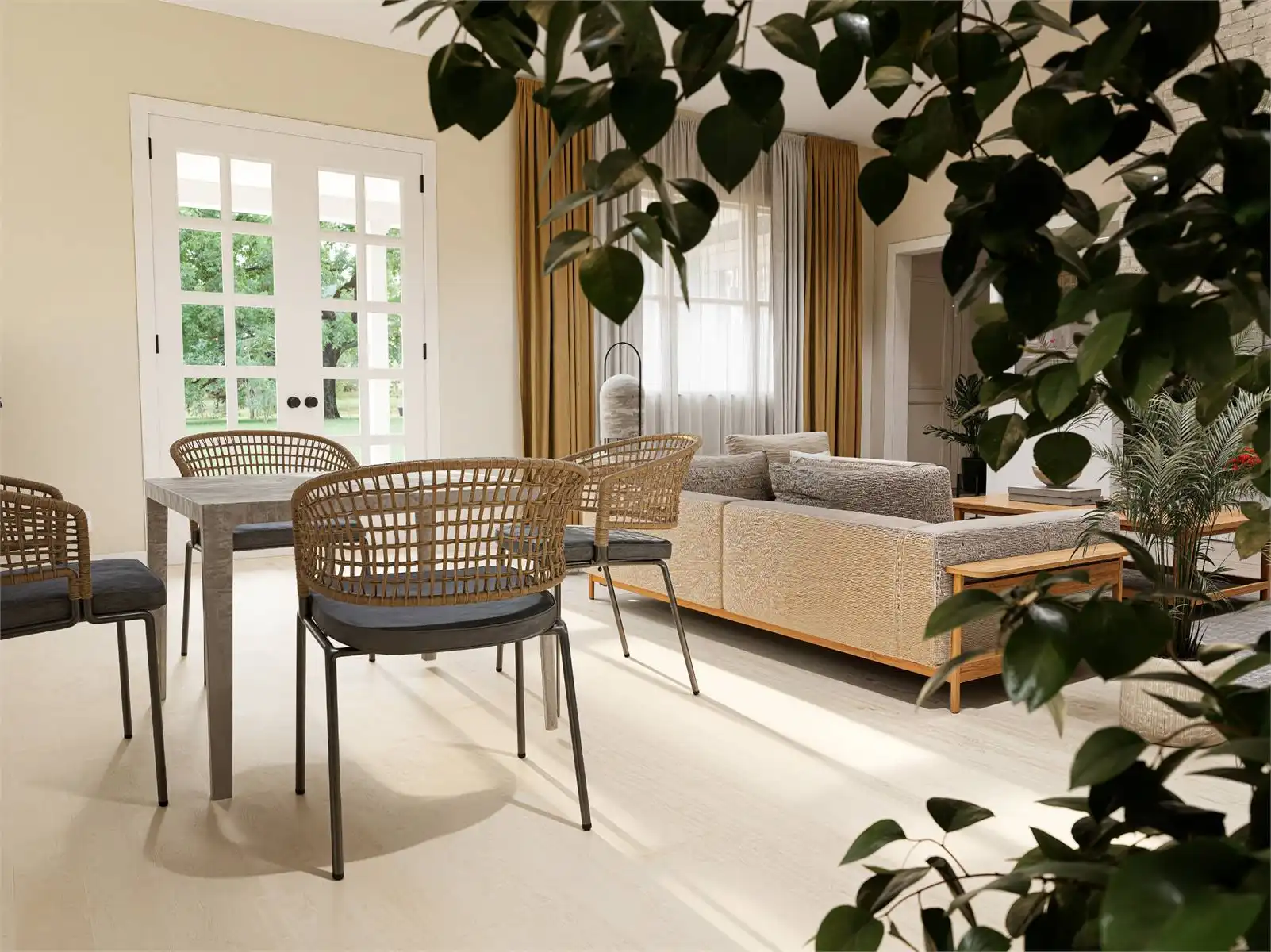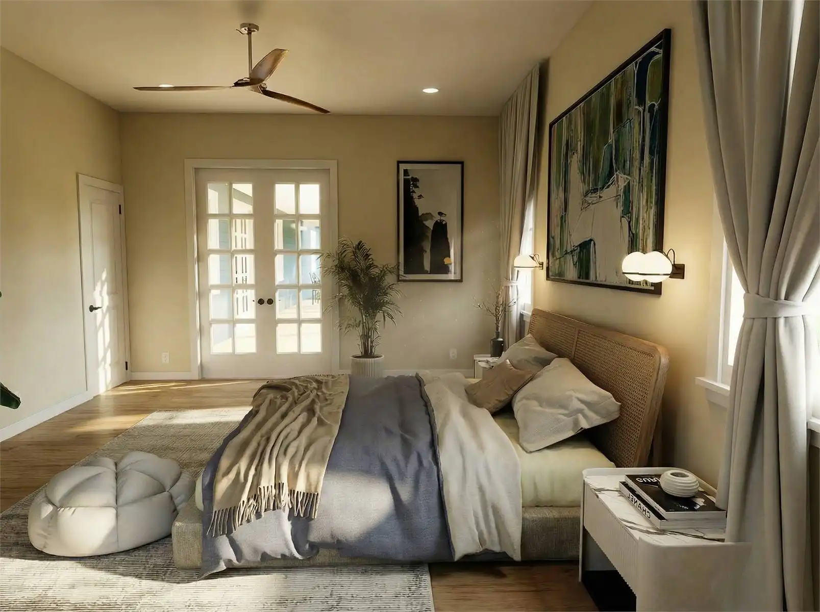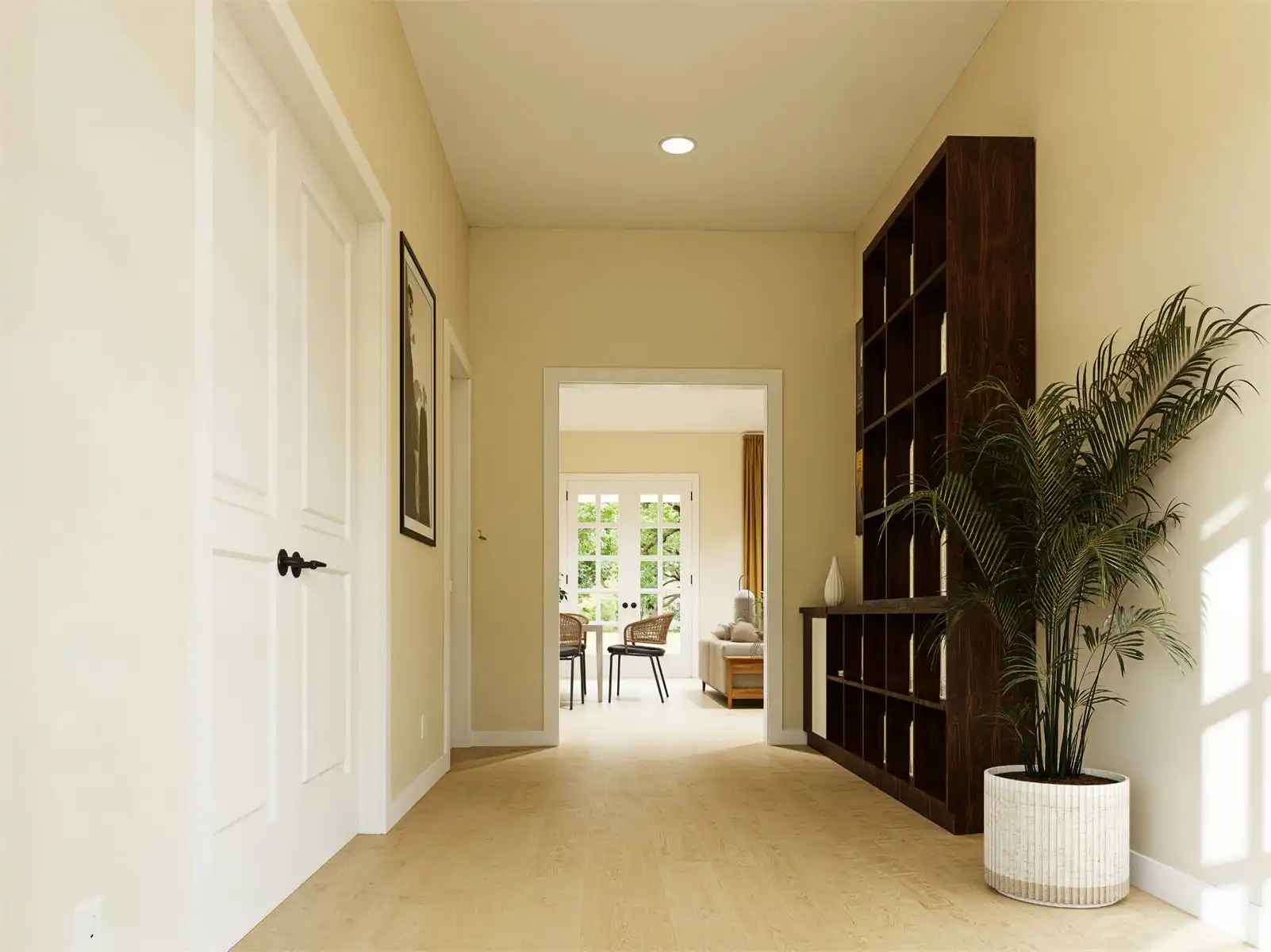 Designed for modern living, this 2385 square feet single story home plan includes 3 bedrooms and 3.5 baths arranged within an open and inviting layout. A soaring vaulted ceiling defines the great room, where a fireplace anchors the main gathering space and connects effortlessly to the dining room and kitchen. The U-shaped kitchen is equipped with a central island, peninsula eating bar, and butlers pantry to support both everyday meals and special occasions. The main level primary suite provides privacy and comfort with a spacious walk-in closet, dual vanities, and a separate tub and shower. Secondary bedrooms are well positioned for family or guests. A dedicated home office, mud room, and first-floor laundry add convenience and organization. Outdoor living is enhanced by covered front and rear porches, while the attached side-entry garage complements the homes architectural appeal.