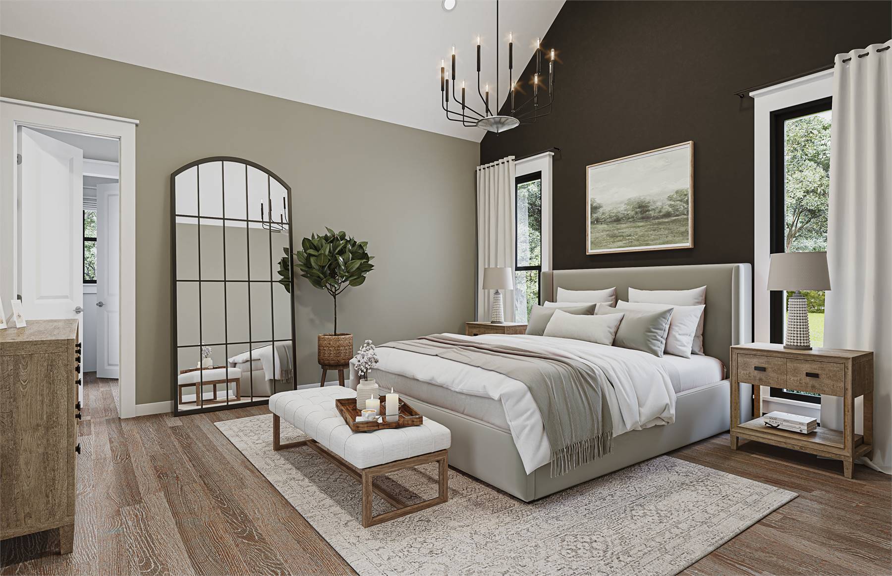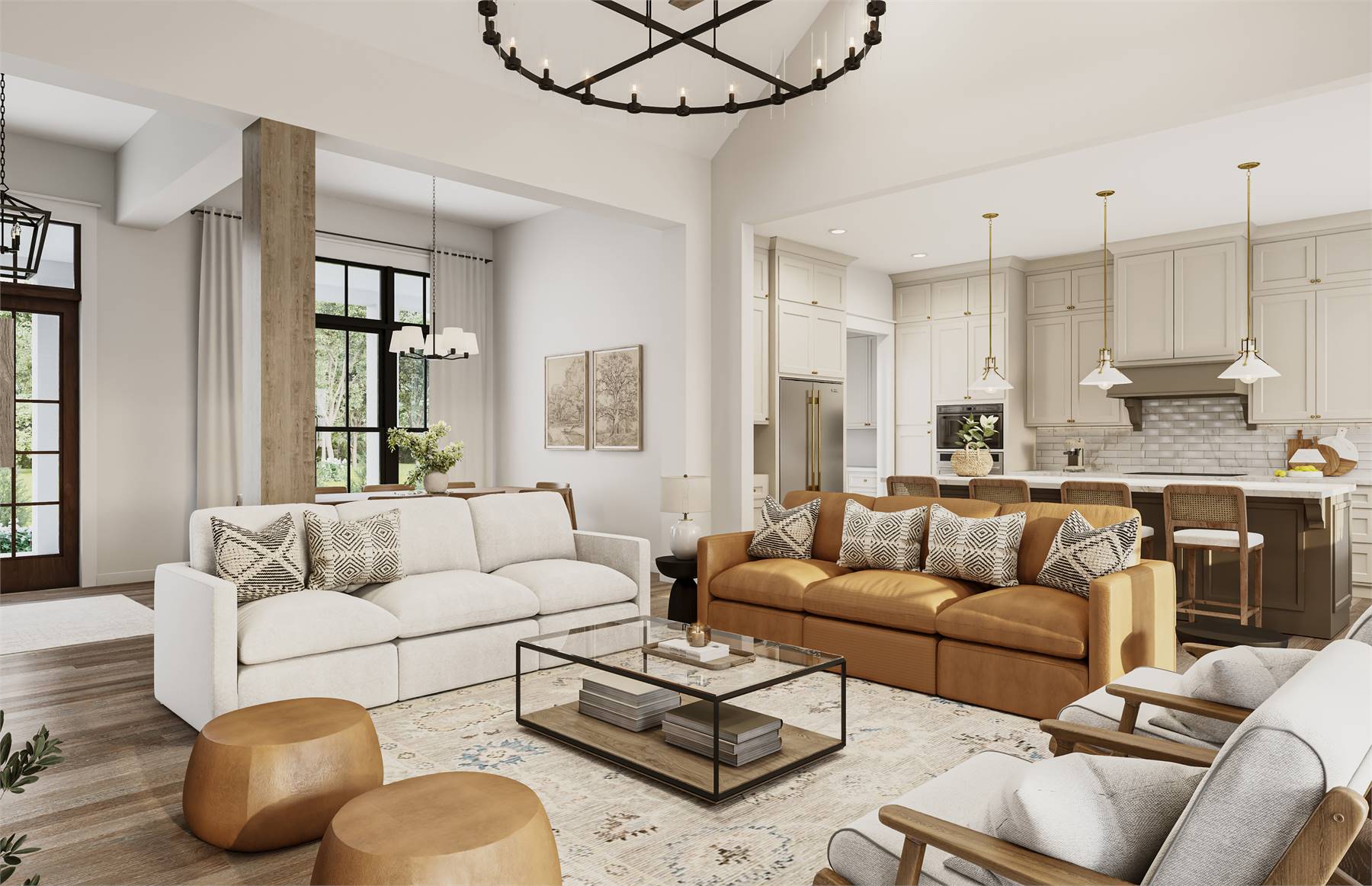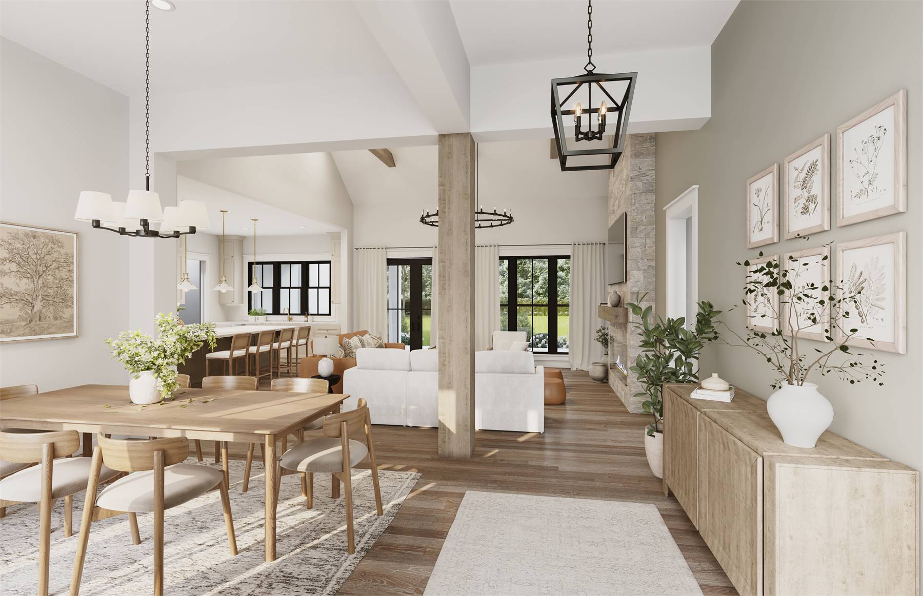 Offering 2,600 square feet of heated living space, this 4 bedroom, 3.5 bathroom home combines openness with thoughtful detail. The vaulted great room with fireplace serves as the heart of the home, connecting effortlessly to the dining space and kitchen. A well-appointed kitchen includes a U-shaped layout, center island, peninsula eating bar, and butler’s pantry for added function. The main floor primary suite features a vaulted ceiling, walk-in closet, double vanity sink, and separate tub and shower for a relaxing retreat. Secondary bedrooms are arranged in a split plan to enhance privacy and comfort. A bonus room and rec room add valuable extra living space to suit your needs. With covered front and rear porches, outdoor living space with an outdoor kitchen, and an attached side-entry 2-car garage, this home is designed to feel both spacious and welcoming.