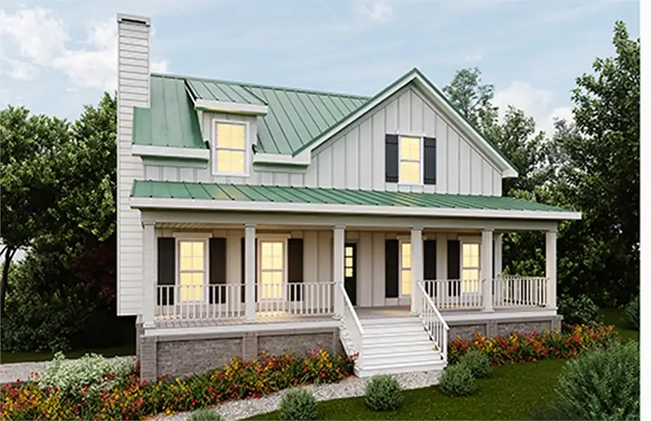 This classic 2-story farmhouse can take a wide range of forms. With the addition of a hidden drive-under garage and full basement space, the 2,079 square foot design is perfect for a sloping or recessed lot. With an impressive master on the main, a grand open kitchen with a fabulous island and a breakfast area, dormers open to the great room at the balcony level, and a 3 car garage, this home has plenty of space for now and the future. The plan packs a punch in its sensible and affordable layout, and its timeless design is sure to never go out of fashion!