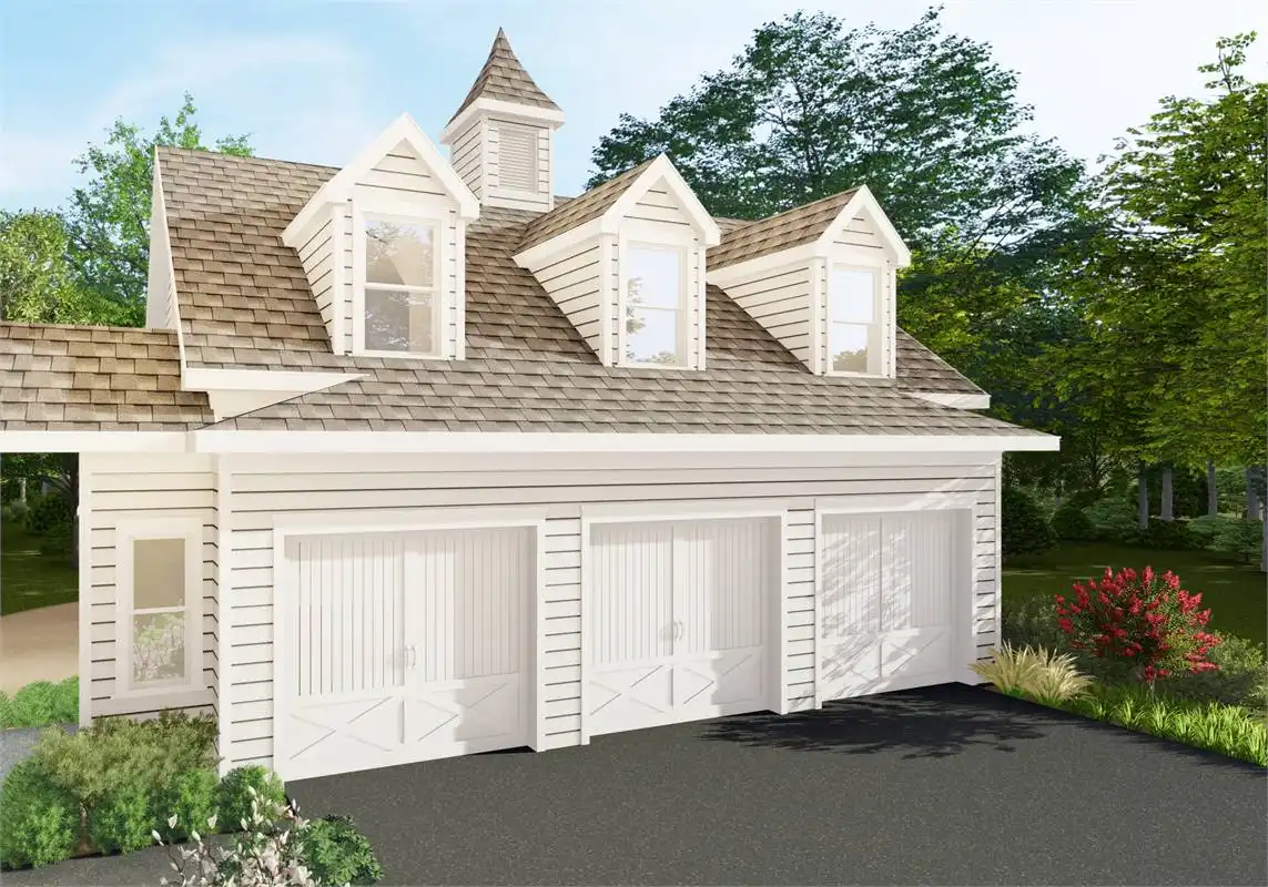 Welcome to 680 square feet of open storage. This 3 Car Garage is perfect for your vehicle and toy storage. The exterior design includes two dormers which will allow more natural light into the upstairs space and would fit in with the design of your traditional community. A side entry, tucked into the corner takes you right to the stairs leading to the second floor. The wide-open space will allow you to convert this plan into anything you'd like, or just leave it as extra storage.