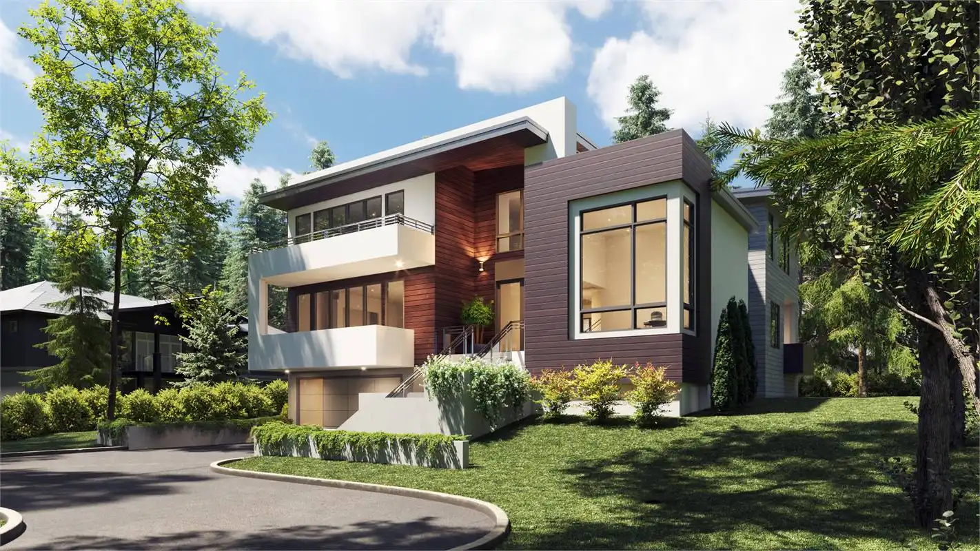 This three level 6,307 heated square foot contemporary home plan packs a punch with its emphasis on family fellowship as well as the need for privacy and respite.