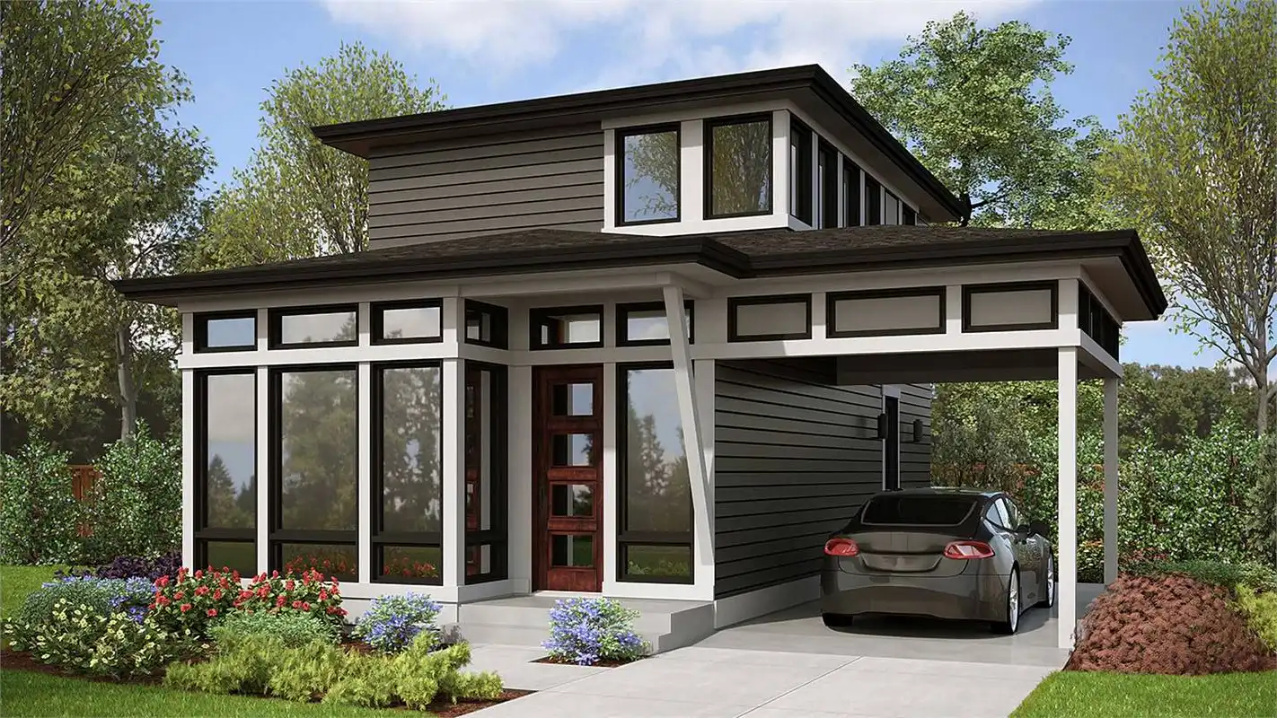 The perfect blend of cutting-edge designs and sensible spaces, this modern plan has it all. Featuring a comfortable and affordable 1,236 square foot layout, the 2 bed 2 bath home is perfect for a new or growing family. And with its narrow footprint, the home is great for the limited lots that most urban or city builds offer. The main floor is totally open and bright, finding the living room and kitchen joined perfectly together. There is also a full master suite and a carport nearby. The upper level houses another bedroom suite along with a multipurpose loft which can be used and outfitted for just about anything you can imagine. So convenient and flexible for any lifestyle need!