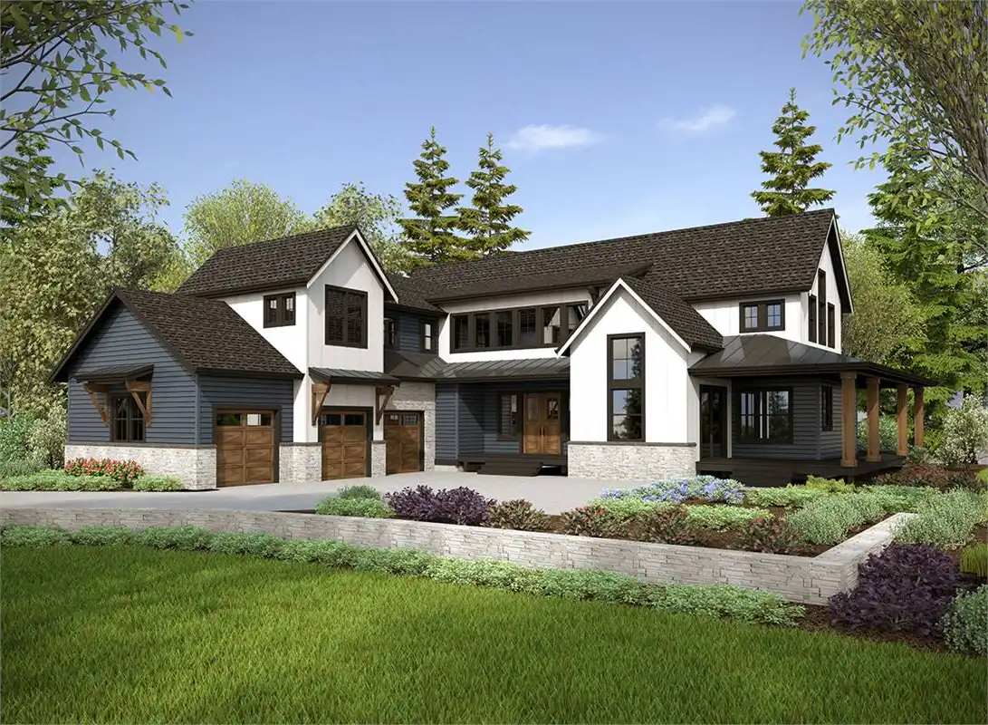 This luxury two-story rustic farmhouse offers 5,156 square feet of spacious living space designed for enjoying time with family and friends. The open layout makes it easy to connect with others at every meal or gathering. An expansive great room features a kitchen island as the focal point where everyone wants to gather around for fun. A mudroom leads right into your own private entrance from the 3 car garage so you can bring in all of your muddy outdoor gear while keeping your house spotless! A staircase off the dining room leads to the second floor where you'll find a large bonus space, perfect for an additional bedroom, office, or gym. The master bedroom is spacious and private with a walk-in closet and elegant en suite bathroom to give you the perfect place to relax at the end of the day.