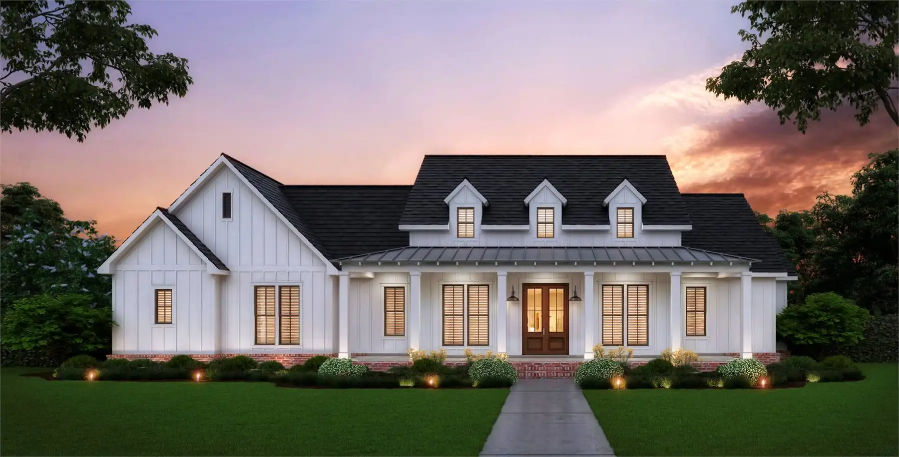 A spacious ranch-style layout enhances the comfort and accessibility of this 2,216 square foot modern farmhouse plan. An inclusive and welcoming design both inside and out will make coming home every day a treat that you always look forward to. A focus on togetherness is found throughout this home, including in the 17' vaulted family room which joins with the island kitchen, as well as the massive outdoor entertainment area. A highlight of this home includes the feature that every bedroom has its own walk-in closet, including the master which has a stunningly large wardrobe! For extra space and customization, this plan even offers a full bonus room and bathroom, located directly above the carport.