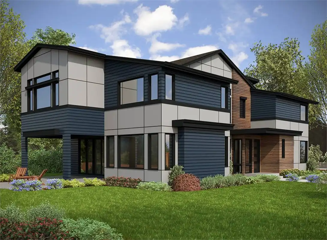 This amazing home is perfect for a large family with four bedrooms, and four full bathrooms! House Plan 1378 has 3,375 square feet of living space and features an open floor plan kitchen, dining, and great room – perfect for entertaining family and friends! Unwind and socialize with guests outside on one of the many relaxing outdoor living spaces. The kitchen is perfect for cooking and entertaining, with open views of the dining room as well as the great room. The many windows in this home provide natural lighting and a beautiful view of the backyard! There’s also a bonus room perfect for hosting game nights or family movie nights. The master bedroom is ideal for those looking to unwind and relax at home after a long day. The master bedroom features a large walk-in closet, as well as an en-suite bathroom with dual basins, a separate shower stall, and a soaking tub. This modern house plan is a perfect choice for a large family looking to entertain, relax and unwind at home after a long day.